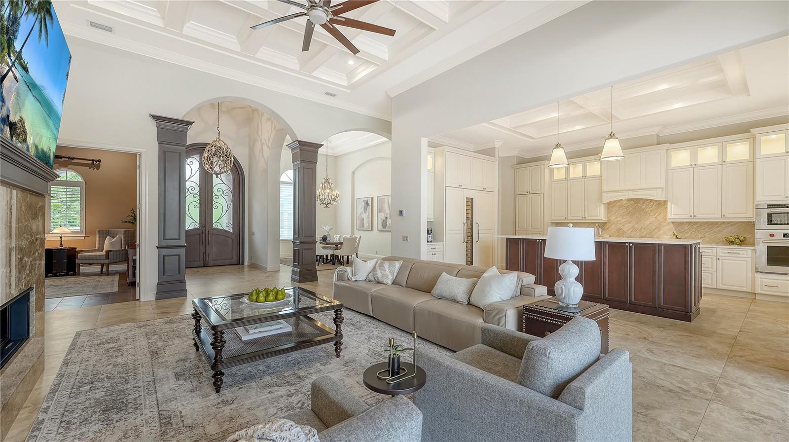 WHEN YOU SEE IT, YOU KNOW... From the moment you arrive, the grand entry sets the tone for this beautifully designed John Cannon residence, where elegance and intentional design create an immediate sense of arrival. Set on nearly two-thirds of an acre within the guard gated community of The Founders Club, the home captures sweeping golf and water views, creating a private and picturesque setting. The generous homesite provides a sense of space and privacy that is increasingly rare, adding to the overall experience of the home.Step inside and the home unfolds with refined architectural details, spacious living areas, and an atmosphere that feels both elegant and welcoming. Recent updates elevate both the interior and exterior, including fresh interior and exterior paint, newly installed quartz countertops in the kitchen and butler's pantry, and a fully renovated outdoor kitchen designed for effortless entertaining. The kitchen showcases premium appliances, including a Sub-Zero refrigerator and Wolf range.A versatile guest suite offers generous proportions, ideal as a second primary suite, private office, or media retreat, with integrated audio enhancing the space. The floor plan flows naturally to the outdoor terrace, where indoor and outdoor living come together with ease. With its northeast exposure, the terrace offers a comfortable setting throughout the day while capturing the home's sweeping views.Remote-controlled blinds in the main living areas provide both convenience and comfort while framing the scenery beyond. Interior and exterior lighting have been updated with recessed trim can lighting, creating a clean and cohesive ambiance throughout the home. Here, the experience comes together, with golf and water views providing a beautiful backdrop for relaxing evenings or entertaining.The home features a centralized multi-zone audio system, with surround sound in the great room and built-in speakers in the dining room, kitchen, guest suite, and outdoor terrace, creating a seamless sound experience throughout key living areas. A private entry casita offers a refined and versatile retreat, positioned to provide both separation and connection, ideal for visiting guests, extended family, or a secluded home office.Located within The Founders Club, a private golf community known for its natural beauty and championship course, this home offers convenient access to Sarasota's dining, cultural venues, shopping, and Gulf Coast beaches.This is a rare opportunity to experience luxury living in one of Sarasota's most sought-after communities. It is a home that reveals itself over time, where design, setting, and experience come together in a way that feels both immediate and lasting.