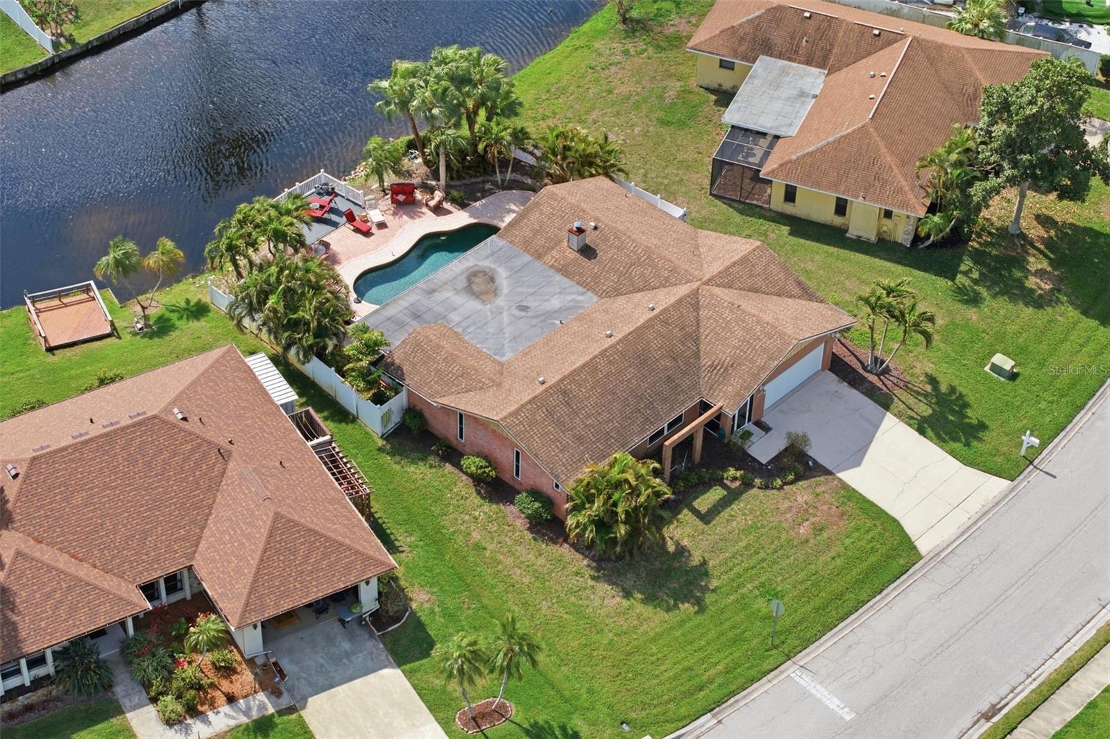 Welcome to your own private tropical retreat in Northwest Bradenton. This 3-bedroom, 2-bath pool home offers a relaxed Florida lifestyle with peaceful pond views and inviting indoor-outdoor living spaces. From the moment you arrive, lush tropical landscaping and a welcoming presence set the tone. Inside, the home features an updated kitchen with granite countertops and high-grade cabinetry, providing a functional and stylish gathering space for everyday living and entertaining. Expansive newer windows and doors (2020) allow natural light to fill the home while framing serene views of the pool and water beyond. Step outside to an oversized screened porch overlooking the resort-style pool and tranquil pond, creating the perfect setting for morning coffee, afternoon swims, or quiet evenings enjoying nature. The paver pool deck and private dock enhance the feeling of having your own backyard getaway. Important updates include HVAC replacement in 2022 and roof in 2011, offering added peace of mind. While the home has been thoughtfully improved, there remains opportunity for a new owner to add personal touches and further enhance the space. Ideally located just minutes from Robinson Preserve and De Soto National Memorial, and a short drive to Gulf beaches, local restaurants, shopping, and highly regarded schools, this property combines lifestyle, location, and potential in one appealing package.