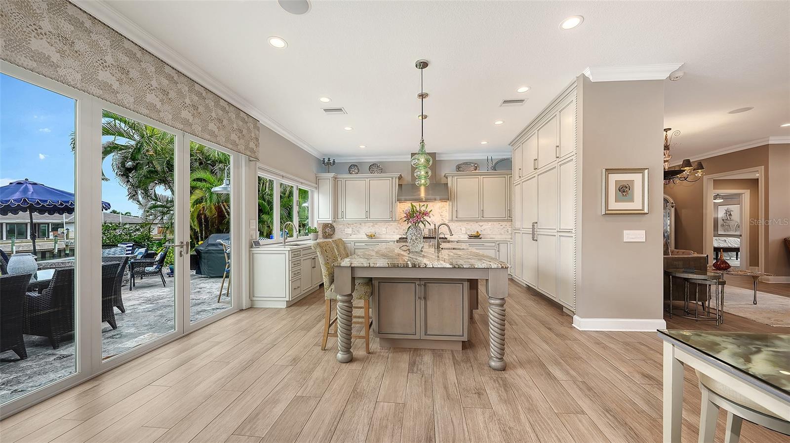Welcome to an extraordinary south Longboat Key canal front estate in Country Club Shores, located 2 in from Sarasota Bay on a lushly landscaped 1/3 acre lot, where luxury and tranquility come together in perfect harmony. This residence is the ultimate sanctuary, blending refined modern design and extraordinary finishings with the serenity of its picturesque surroundings. Untouched by recent hurricanes, this home features impact windows and high-quality craftsmanship and is built to withstand the demands of south Florida's climate. The completely renovated ~3,000 sq ft, 3-bedroom, 3-bathroom property is outfitted with premium finishings and an open plan that sets new standards for convenience and today's modern lifestyle. From the cozy media room with wet bar and separate office, to the pro-outfitted chef's kitchen and owner's suite that is a truly an inspiring spa-like retreat, every inch of this home exudes luxury and comfort. The home has been thoughtfully renovated, featuring large plank porcelain floors and 10' ceilings adorned with custom millwork details throughout. Plan to be impressed by the formal foyer that delivers your guests to the spectacular "Art Salon" and spacious gathering area. The gourmet kitchen is a chef's dream, featuring a stunning 9' Dolomite Island with a vegetable sink and a 30" Fisher-Paykel dishwasher drawer adjacent to custom dual pantries. The custom built-in Thermador refrigerator/freezer columns, warming drawer, and microwave provide everything needed to prepare any culinary creation with ease. The Carrera marble backsplash complements the quartz countertops that house the commercial grade Thermador 6-burner gas range and griddle with 2 convection ovens. The kitchen area features 12-foot bifold impact door panels and 8-foot bifold impact windows, which can be fully opened to seamlessly connect the kitchen with the patio area and stunning Bay views. The owner's retreat offers a relaxing Zen atmosphere with soft tones that complement the water views. Escape to the spa inspired bathroom to indulge in a two-person freestanding hydrojet bath or relax in the spacious aroma steam shower featuring dual rain showerheads and hand showers. The blue calcite custom vanities illuminate the ethereal experience, complemented by a Toto Neorest water closet and a custom walk-in closet. The media room is perfect for movie night, featuring surround sound and wet bar with a wine captain. The two spacious guest suites feature spacious bathrooms with floor to ceiling large format porcelain tile, Hansgrohe/Gessi fixtures, marble and Cambria quartz countertops, and mosaic marble backsplashes. The baths also feature Restoration Hardware towel curios with matching pulls, oversized rain showerheads with custom finishes. Outside is a 110-foot seawall and versatile dock system, that includes an entertaining area, mooring station with shore power pedestal/water, and a floating dock perfect for launching kayaks or boarding a boat. The spacious greenhouse offers a sanctuary for relaxing and all your planting needs delivering that boujee-chic retreat embellished with orchids and herbs to further elevate the experience. Located on the highly desired south end of Longboat Key, adjacent to the Resort at Longboat Key Club and nearby St Armands Circle, this property includes deeded beach access and unrivaled convenience to Sarasota. Call now for a private tour of this bespoke property.