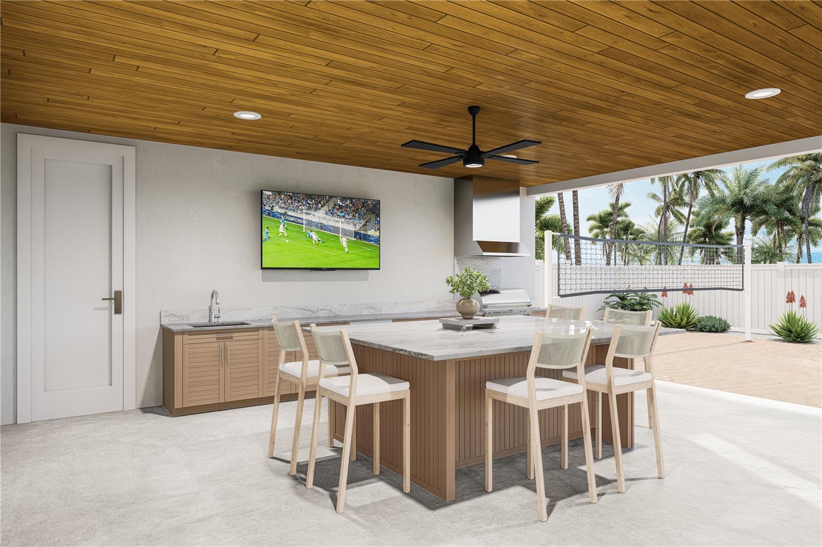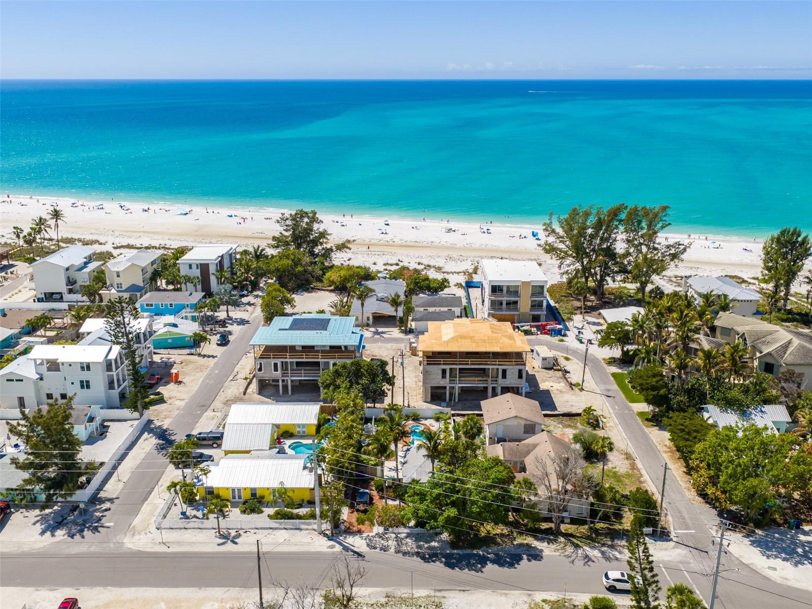 Under Construction. Blending modern coastal construction with Old Florida charm, 107 Tuna Street offers a level of design, scale, and positioning that is seldom found on Anna Maria. Just 50 feet from sugar-white sand and set on an oversized corner lot along the coveted North End, this residence enjoys a peaceful setting away from the activity of the public beaches, offering a more private, "locals' luxury" experience just steps from the Gulf's iconic turquoise waters. The residence's Key West-inspired architecture sets the tone with deep balconies, porch brackets, generous openings, and a layout that favors natural light and easy indoor-outdoor living. Built with full concrete block construction and engineered to 2026 Florida hurricane standards, the residence offers exceptional durability and peace of mind inherent to premier coastal living. Upper floors are thoughtfully oriented to catch optimal light and frame coastal views, so the home feels bright and connected to its setting throughout the day, even before you step onto the balconies to watch sunsets that stop everything. Inside, vaulted and cathedral ceilings create volume throughout the open-concept living spaces. The main-level primary suite offers both convenience and privacy, complemented by accessible design features including wider doorways, a full bath, and thoughtful flow for long-term livability. A three-stop elevator connects all levels with ease. The kitchen, with its custom wood cabinetry, is designed as both a showpiece and a workspace, anchored by a full Thermador appliance suite, including a 7-burner range, integrated refrigeration, and dishwasher. Adjacent living and dining areas extend effortlessly outdoors, where 3,000+ square feet of covered and open-air living space transforms the home into a true coastal retreat. Here, the outdoor environment is an extension of your everyday living space. A fully integrated alfresco kitchen anchors the space, complemented by three distinct dining areas designed for everything from casual mornings to large-scale entertaining. The expansive 48' x 25' free-form pool and spa create a resort-style centerpiece, surrounded by three lounging areas near a private volleyball court. Positioned just a 120-second stroll from one of Anna Maria Island's most serene stretches of powdery white sand, the home offers immediate access to the Gulf without sacrificing privacy. Just moments from the charm of Pine Avenue with boutique shopping, cafs, and local favorites like Dips and The Donut Experiment, plus local or even waterfront dining at the Sandbar, The Porch, and The Waterfront, all just blocks away, making everyday living feel like a vacation. With projected strong rental income potential, a six-car garage, and a delivery timeline of Summer 2026, 107 Tuna Street represents a compelling opportunity to secure a newly built, design-forward residence in one of Anna Maria Island's most desirable and tightly held enclaves. Nearby marinas, boating access, and waterfront parks enhance the island lifestyle, while the cultural amenities of downtown Sarasota, St. Armands Circle, and Longboat Key are all within easy reach. SRQ International Airport is approximately 40 minutes away, offering convenient access. This is a setting that balances seclusion and accessibility, where everyday feels like a vacation, and everything you need is effortlessly within reach. Live on Anna Maria Island, ranked by U.S. News & World Report as the #2 Best Family Beach Vacation in the U.S.