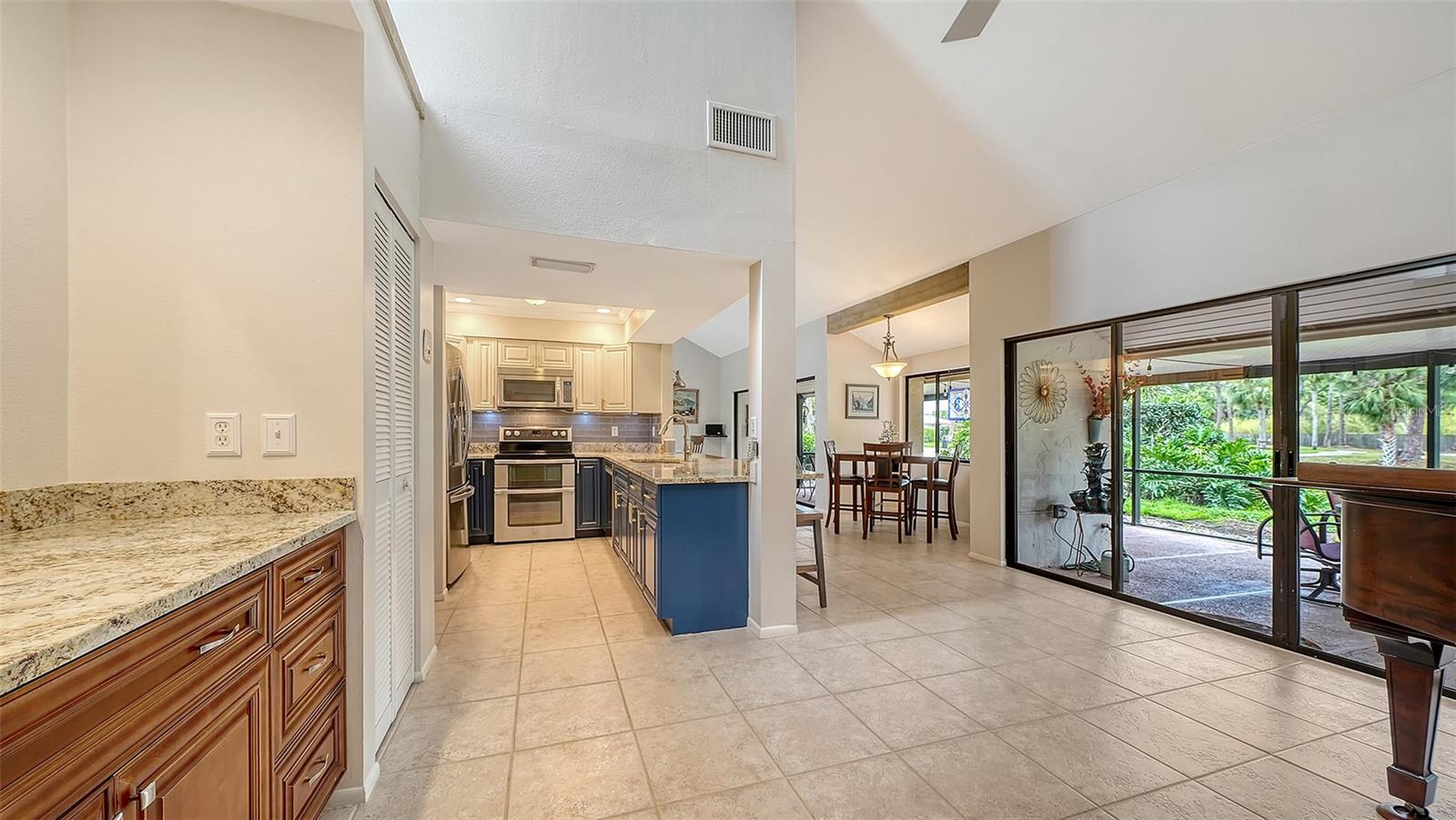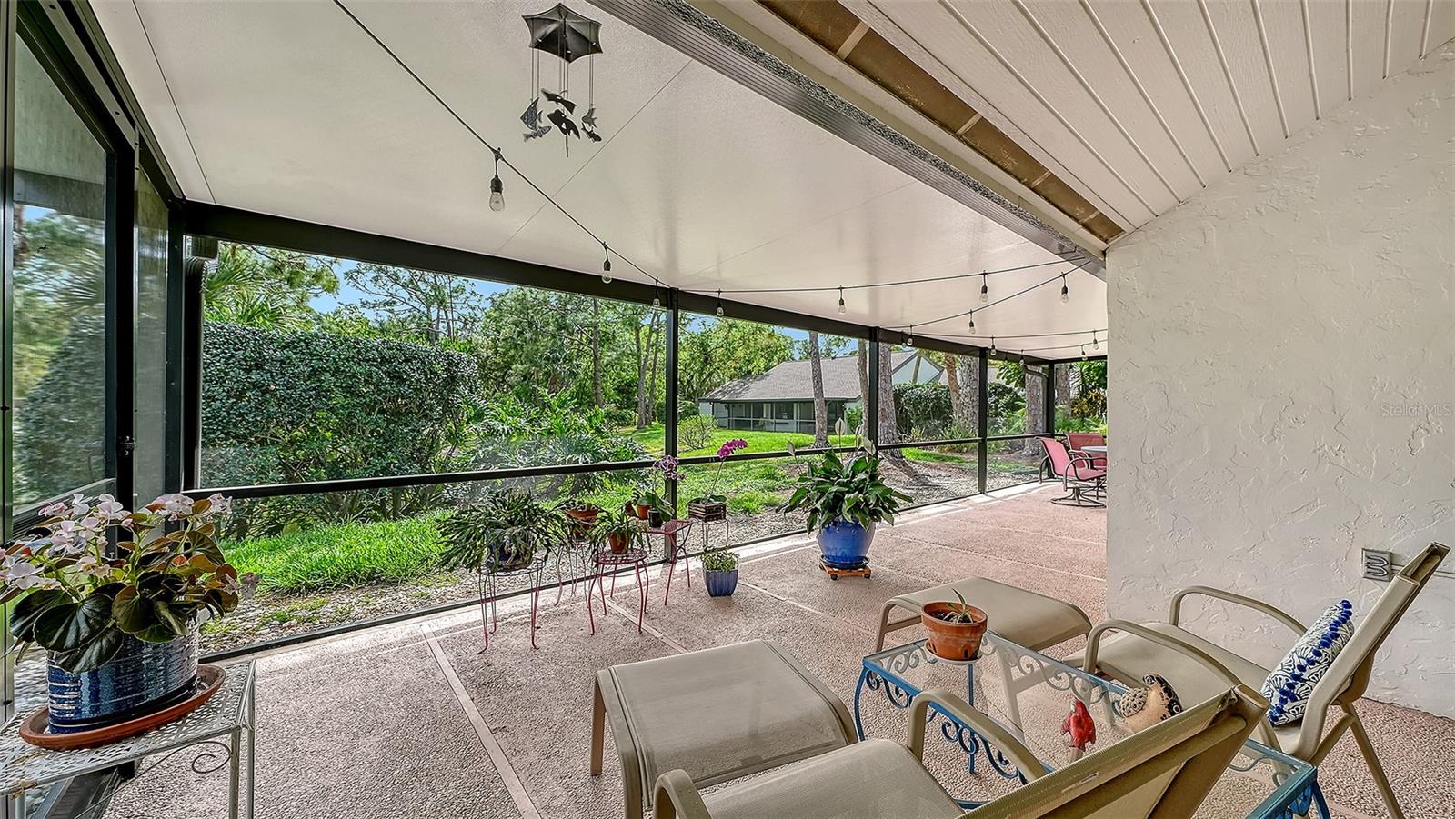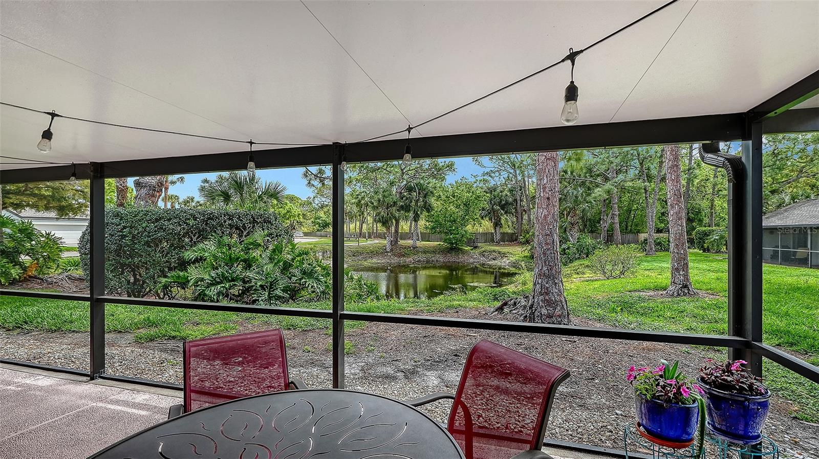 Move right in! This updated, light-filled end-unit villa with no shared walls offers peace of mind and easy living, with 2025 exterior paint, a 2024 roof, 2022 A/C and water heater, and a 2020 screened lanai. The monthly condo fee includes exterior insurance and maintenance (roof, paint, roads, etc), reserve funds, landscaping and tree trimming, pest control, cable, two pools (one heated), tennis court, and property manager.Inside, you'll love the open floor plan with cathedral ceilings, transom windows, stone-look tile flooring, and a beautifully updated kitchen with solid-wood cabinetry, Santa Cecilia granite countertops, and stainless-steel appliances. Plus, no popcorn ceilings. The oversized screened lanai overlooks a tranquil pond, perfect for relaxing, entertaining, or birdwatching.Additional highlights include abundant storage in the stand-up attic and oversized two-car garage, and the peace of mind of block construction above the flood plain in Flood Zone X.On 1,600 park-like acres, The Meadows is a resort-style community just 15 minutes from downtown. Enjoy 14 miles of scenic trails and, for a low fee, access to a fitness center, Junior Olympic pool, pickleball, golf and Har-Tru tennis. You'll be minutes to award-winning beaches, vibrant arts and culture, Whole Foods, Trader Joe's, Nathan Benderson Park, Mote SEA Aquarium, the future Sarasota Orchestra Music Center and University Town Center - a favorite shopping and dining destination.