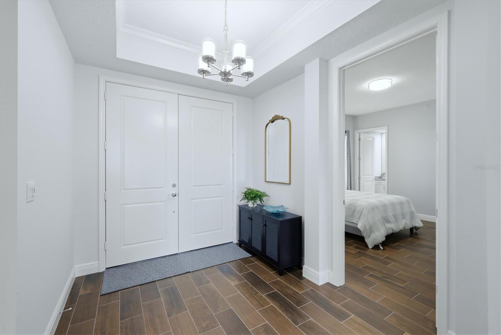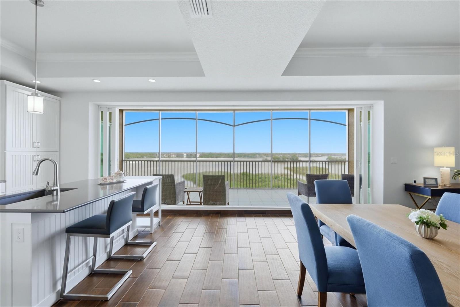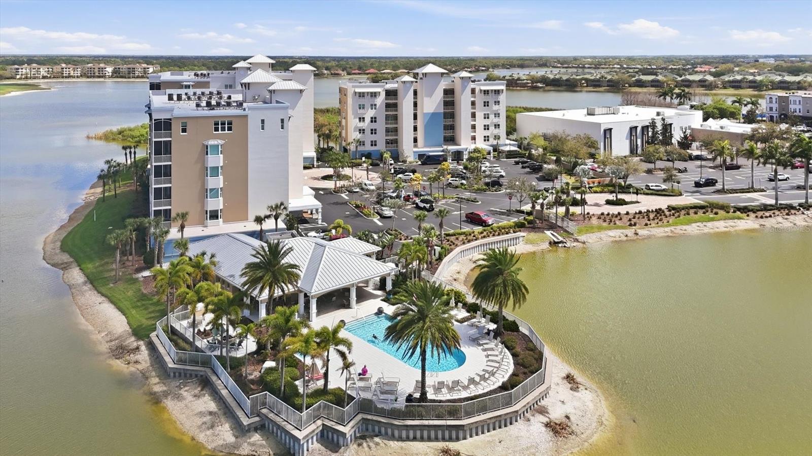 Rare penthouse opportunity at Waterfront at Main in Lakewood Ranch. This stunning 3-bedroom, 3.5-bath + den residence offers elevated luxury living with expansive water views and an exceptional location just steps from Lakewood Ranch Main Street.Designed with an open, light-filled floor plan, the home features high ceilings, designer finishes, and floor-to-ceiling sliding glass doors that open to a spacious screened balcony overlooking Lake Uihlein; perfect for enjoying breathtaking sunrises and tranquil waterfront scenery. The gourmet kitchen is beautifully appointed with quartz countertops, custom cabinetry, premium stainless steel Monogram appliances, and a large center island ideal for entertaining.The spacious primary suite serves as a private retreat with balcony access, walk-in closets, and a luxurious spa-inspired bath with dual vanities and a walk-in shower. Each additional bedroom includes its own en-suite bath, providing comfort and privacy for family or guests, while a convenient powder bath serves the main living area.Additional highlights include a separate den/study area, storage locker, and secure under-building parking. Residents enjoy resort-style amenities including a lakefront pool and spa, fitness center, clubhouse, outdoor fire pit, and gated entry.Ideally located just steps from restaurants, shopping, entertainment, and community events on Main Street, this penthouse offers the perfect blend of luxury, convenience, and vibrant Lakewood Ranch living.