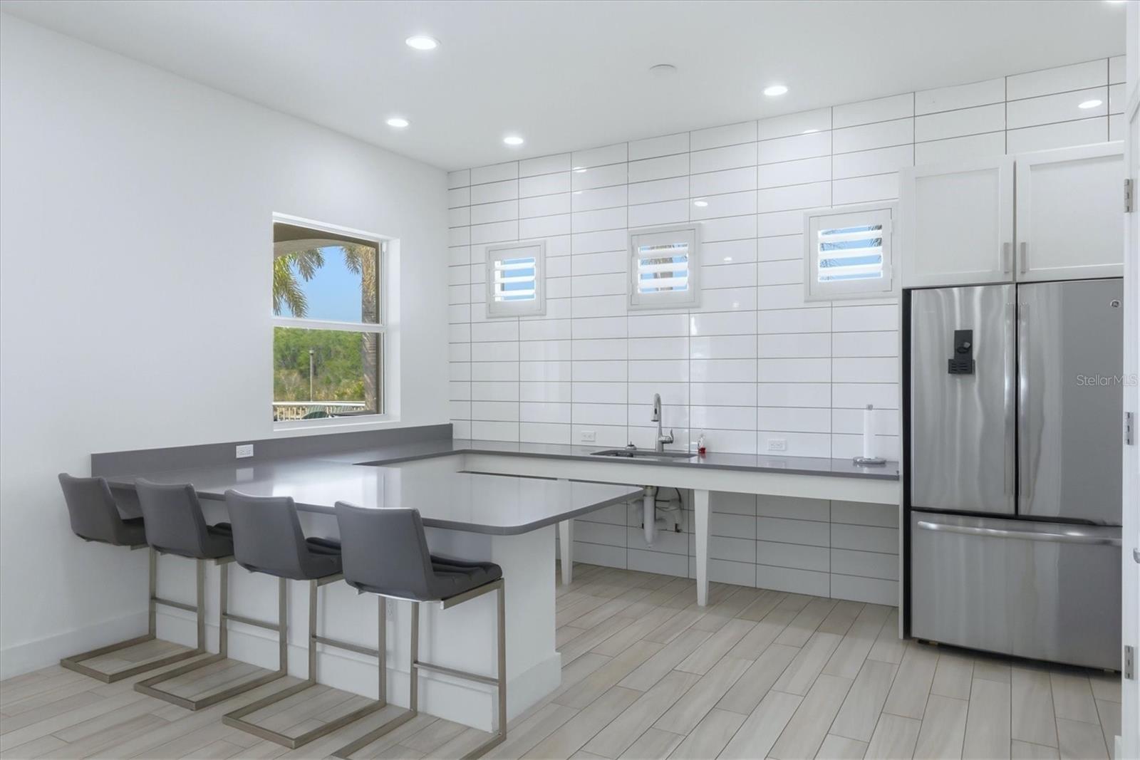 Exterior: Balcony, Fire Pit, Lighting, Outdoor Grill, Sidewalk, Sliding Doors, Storage