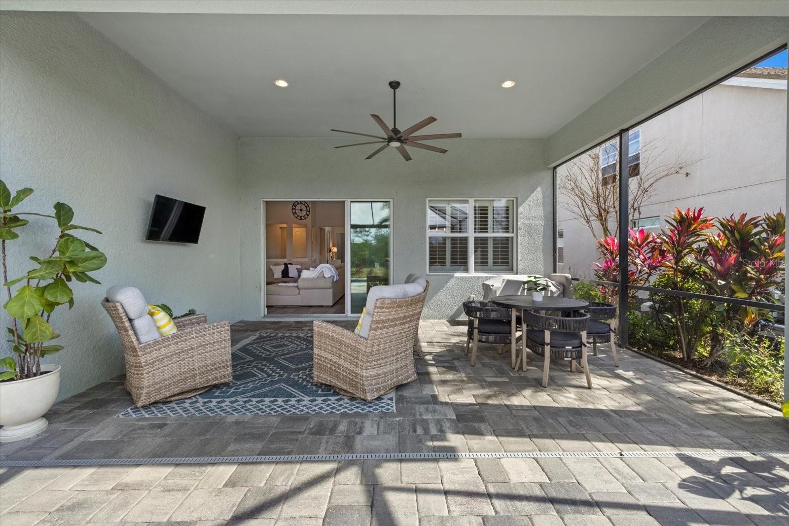 Exterior: Hurricane Shutters, Rain Gutters, Sidewalk, Sliding Doors