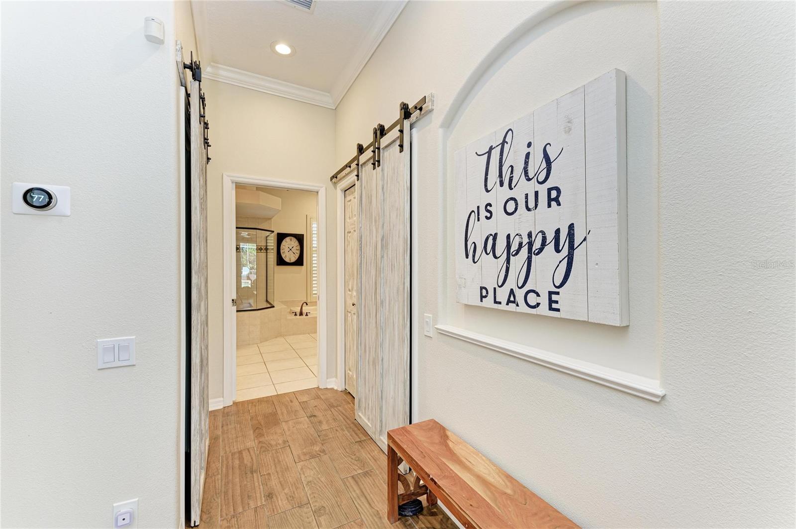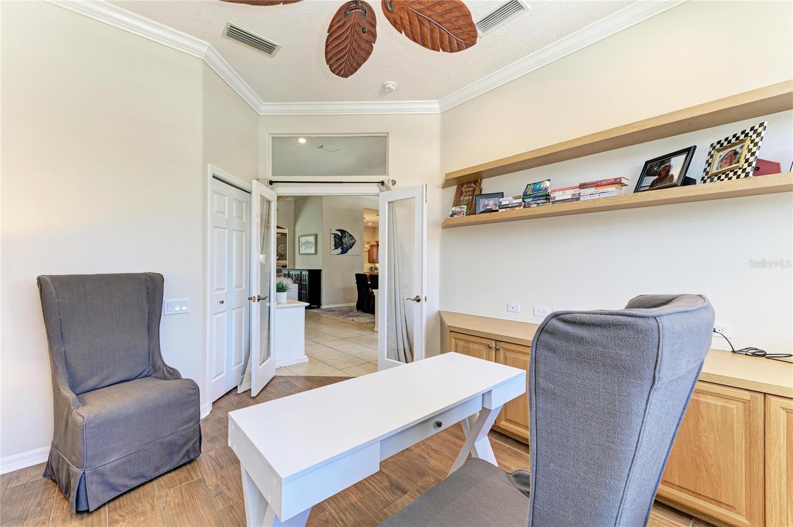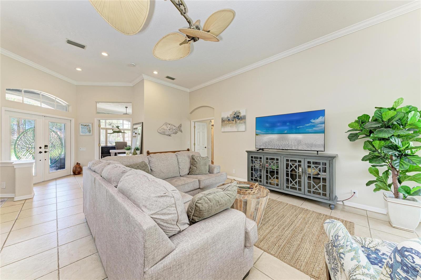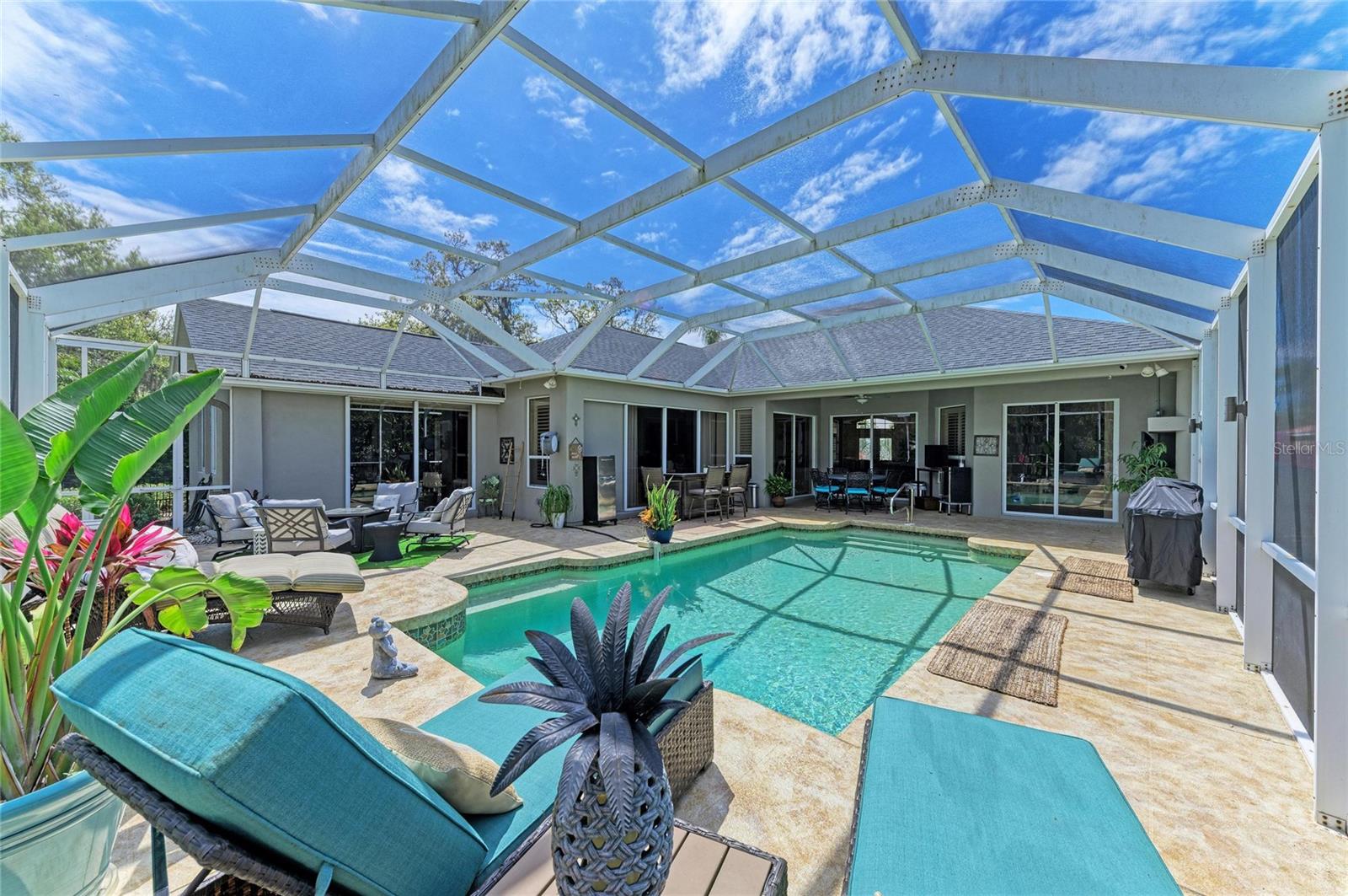 Nestled within a private oasis overlooking a tranquil preserve, this stunning Arthur Rutenberg home offers the perfect blend of elegance, comfort, and Florida lifestyle living--just steps from the club, golf course, fitness center, and community pool. From the moment you enter through the front doors, you are greeted by breathtaking panoramic views that are showcased from nearly every room, enhanced by a newly fenced backyard for added privacy. Designed for seamless indoor-outdoor living, the spacious great room features soaring ceilings, custom ceiling beams, and stacking glass doors that open effortlessly to the lanai, creating the perfect space for entertaining or relaxing. The outdoor living area is truly exceptional, featuring a sparkling saltwater pool, newly painted pool deck, updated pool lighting and pool pump, and a covered lanai ideal for dining and lounging year-round. The chef's kitchen is beautifully appointed with raised-panel cherry cabinetry, stainless steel appliances, pendant lighting, and elegant finishes, all complemented by crown molding in LR, DR, primary suite and den. Retreat to the luxurious owner's suite, offering a peaceful and spacious escape with dual walk-in closets enhanced with barn doors and a spa-like bath featuring dual vanities, a garden tub, and an expansive Roman shower. A private office/den with built-ins and a Murphy bed offers flexibility as a potential fifth bedroom. The fourth bedroom/flex space showcases wood-plank tile flooring, custom bench seating with storage, ceiling beams and direct pool access, making it perfect as a game room, guest suite, or bonus space. This thoughtfully designed home also features separate guest wing with private hallway and bathroom, which can be closed off with pocket doors for ultimate privacy. Additional upgrades and highlights include: 2025 Roof, 2025 HVAC (1 unit), Circular driveway for added convenience and curb appeal, Electric screen enclosure on front porch, some plantation shutters added, Front gutters installed, Enhanced landscaping in front yard and lighting to pool, and backyard, Ring system and security cameras, Extensive garage upgrades with storage, workbench, and remote-access opener. Located within River Wilderness Golf & Country Club, residents enjoy optional membership with access to golf, tennis, pickleball, bocce, fitness center, and social events, along with an Olympic-size pool, boat & RV storage, scenic trails, and abundant wildlife. The community also features two 24-hour manned gates and a private boat ramp with direct access to the Manatee River. Perfectly situated between St. Pete and Sarasota, with convenient access to airports, top-rated hospitals, and the vibrant dining and shopping of Lakewood Ranch. Nearby Fort Hamer Park and Bridge provide even greater accessibility and outdoor recreation opportunities. This is more than a home--it's a lifestyle.