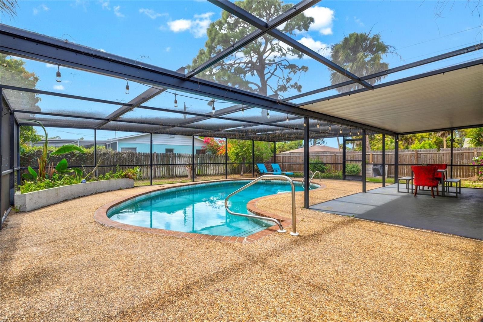 Welcome to this stunning fully furnished and completely renovated 3 bedroom, 2 bathroom POOL home with a 2 car garage, ideally situated on a spacious 0.27 acre corner lot. Stepping inside, luxury vinyl plank flooring flows throughout this split bedroom floorplan home, creating a seamless and modern feel. The living room features a stylish accent wall that serves as a striking focal point, adding character and warmth to the space. The updated kitchen offers a clean, modern design with ample cabinetry and functionality, perfectly suited for both everyday living and entertaining. Step outside to a fully fenced backyard designed for enjoying the Florida lifestyle. The in-ground pool with a screened enclosure creates the perfect private retreat for relaxing or hosting guests year-round. Located in South Venice with no HOA or CDD restrictions, this home offers both flexibility and convenience. Just minutes away, you'll find Venice Beach, Sharky's on the Pier, historic downtown Venice, shopping, dining, medical facilities, and top-rated schools. South Venice is known for its laid-back coastal lifestyle and outdoor amenities. Optional membership provides access to the South Venice Ferry, offering a private ride across the Intracoastal to a quieter stretch of Gulf beach. Nearby Shamrock Park & Nature Center, the Legacy Trail, and the Venetian Waterway offer miles of scenic trails for biking, walking, and running, while nearby boat ramps and kayak launches make it easy to enjoy life on the water. This home truly delivers the perfect blend of comfort, style, and location, schedule your showing today!