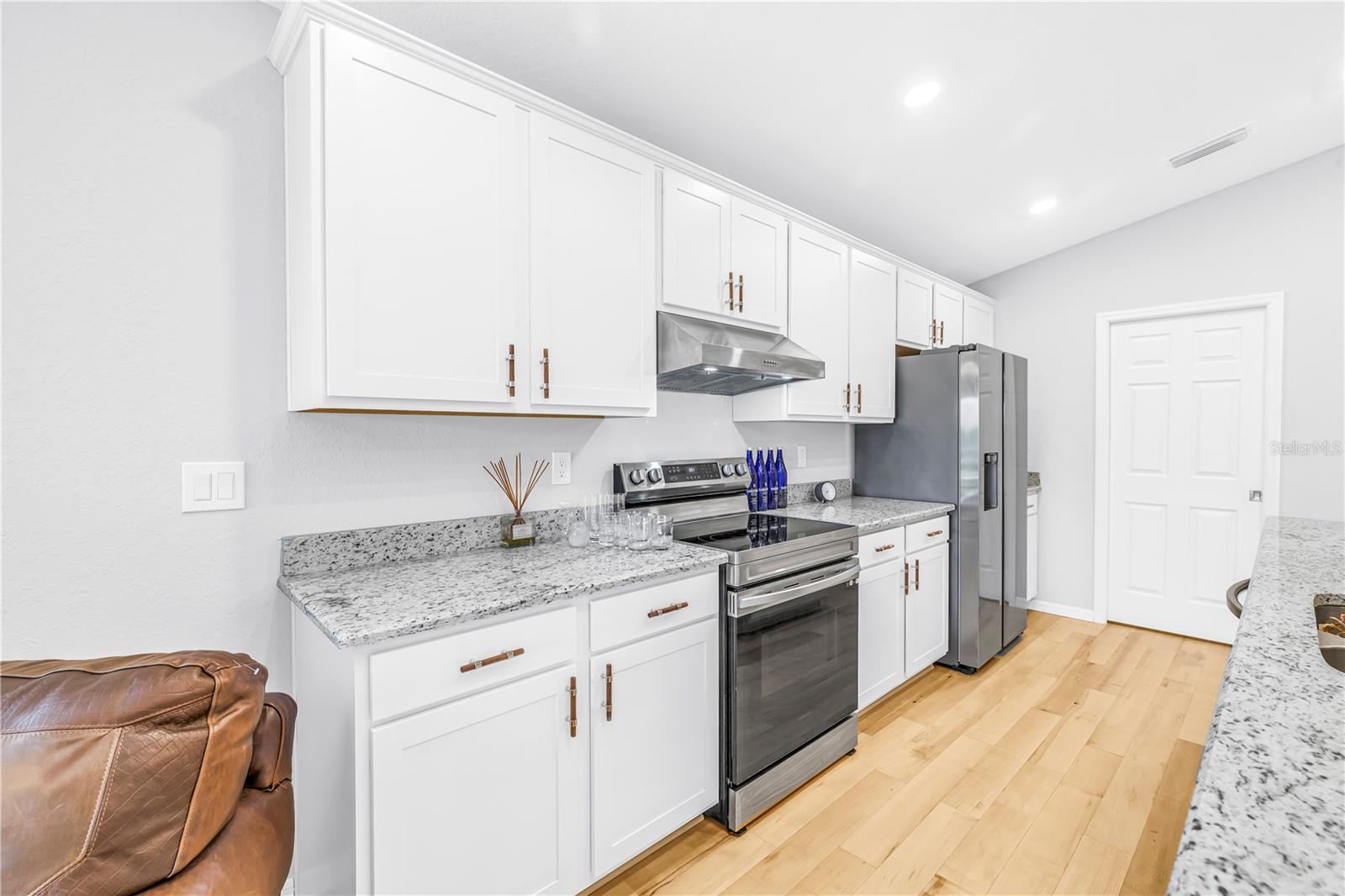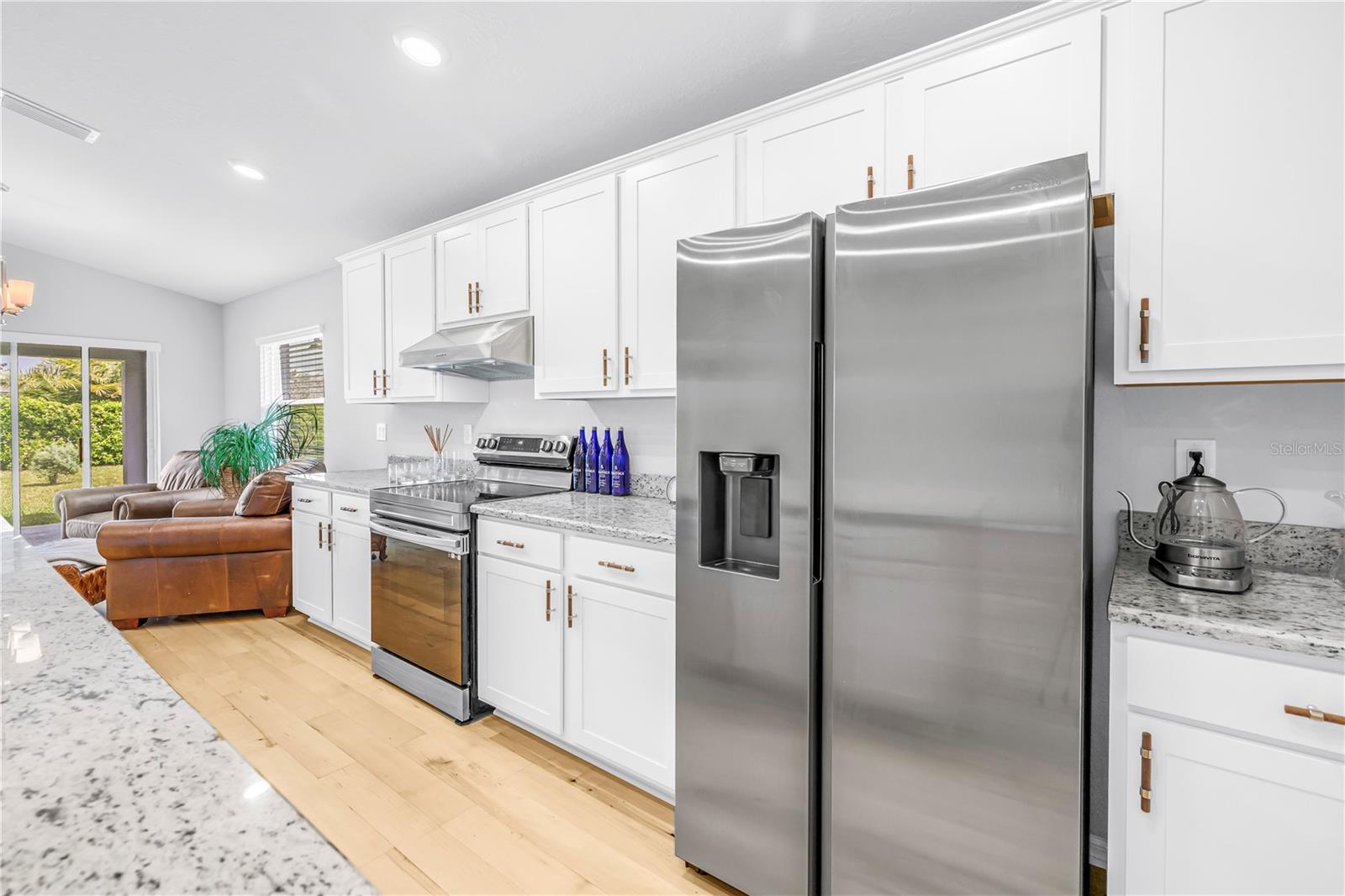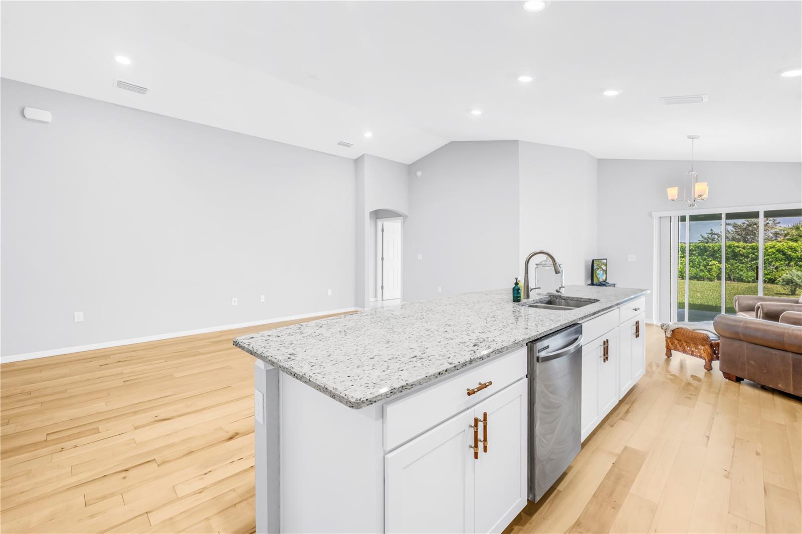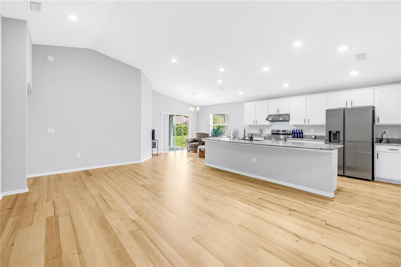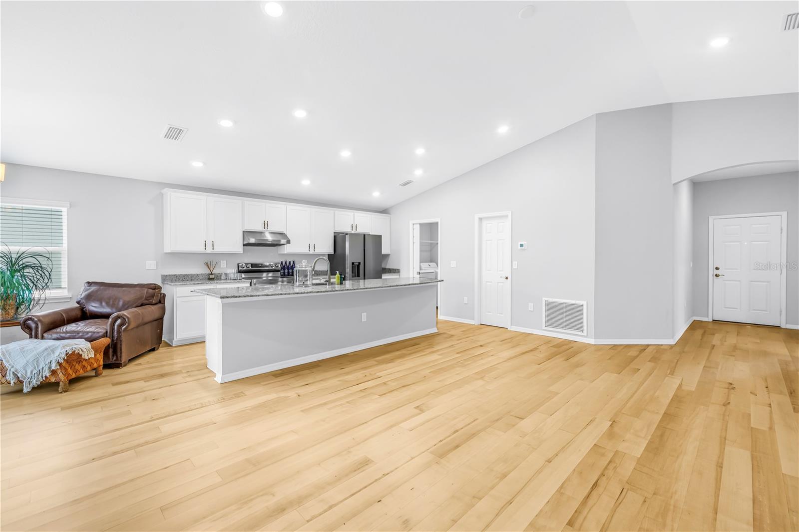 Barely lived in and thoughtfully upgraded, this 4-bedroom, 2-bath Highland Homes Parker Model offers 1,715 square feet of well-designed living space with a bright, open-concept layout. The expansive living and kitchen area creates an inviting setting ideal for both everyday living and entertaining. Enhanced well beyond builder grade, the home features beautiful granite countertops in place of the original formica, complemented by upgraded non-toxic maple flooring throughout the main living areas. The bathrooms are finished with elegant marble flooring, adding a clean and refined touch, along with sleek solid glass shower doors for a modern feel. Outside, refreshed landscaping enhances the home's curb appeal. Additional improvements include a vented microwave for improved functionality and a brand-new washer and dryer for added convenience. Meticulously maintained and truly move-in ready, this home combines comfort, quality, and style in every detail.