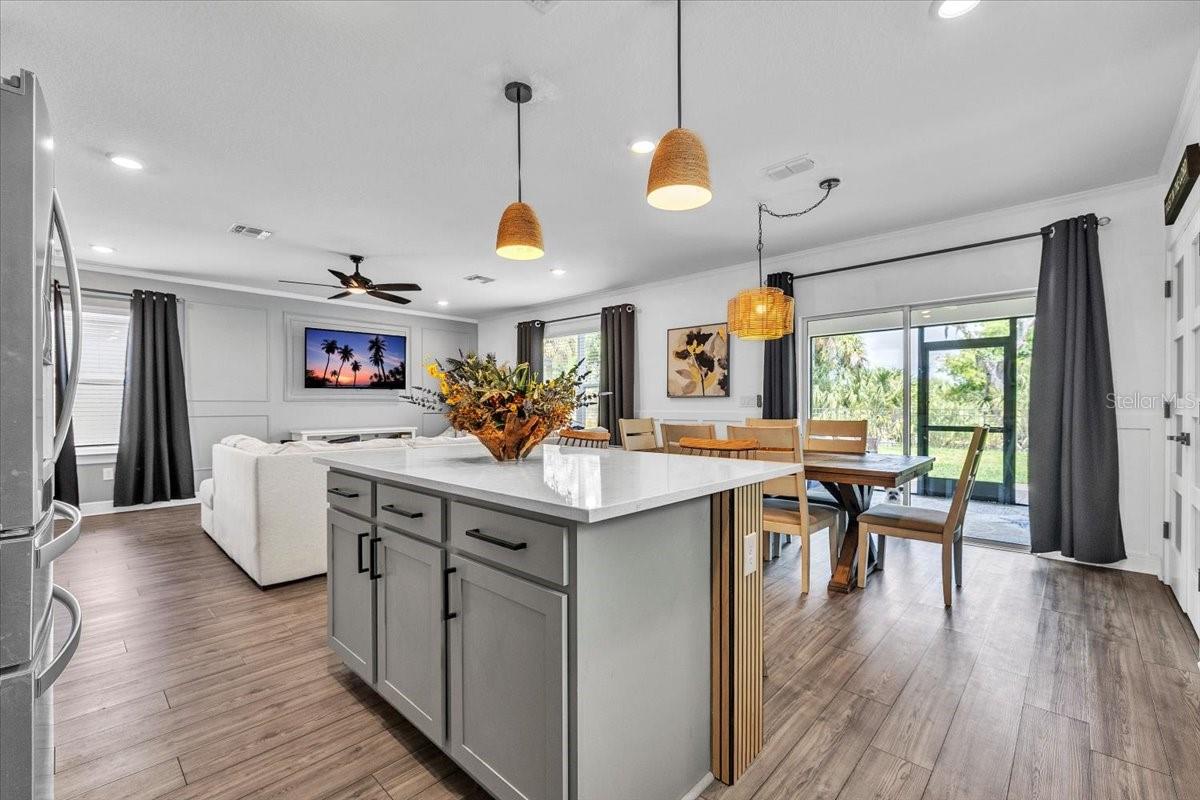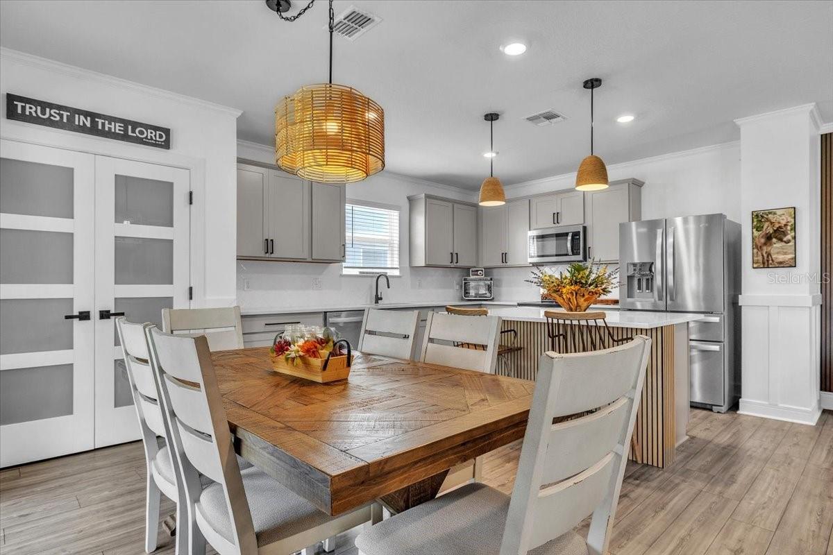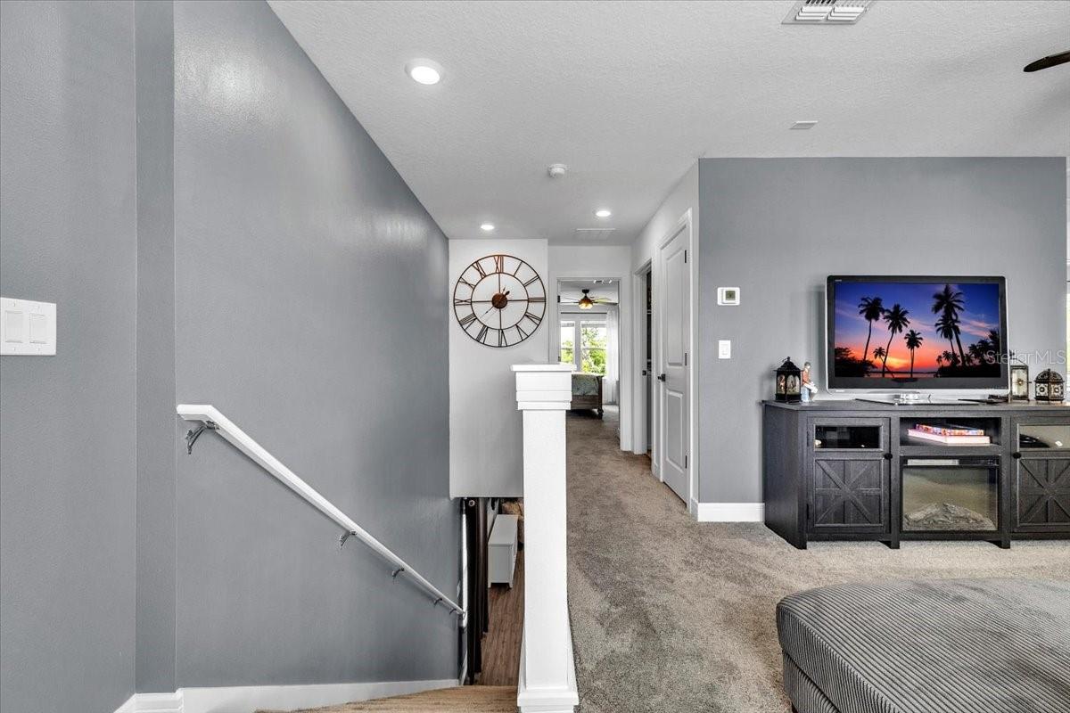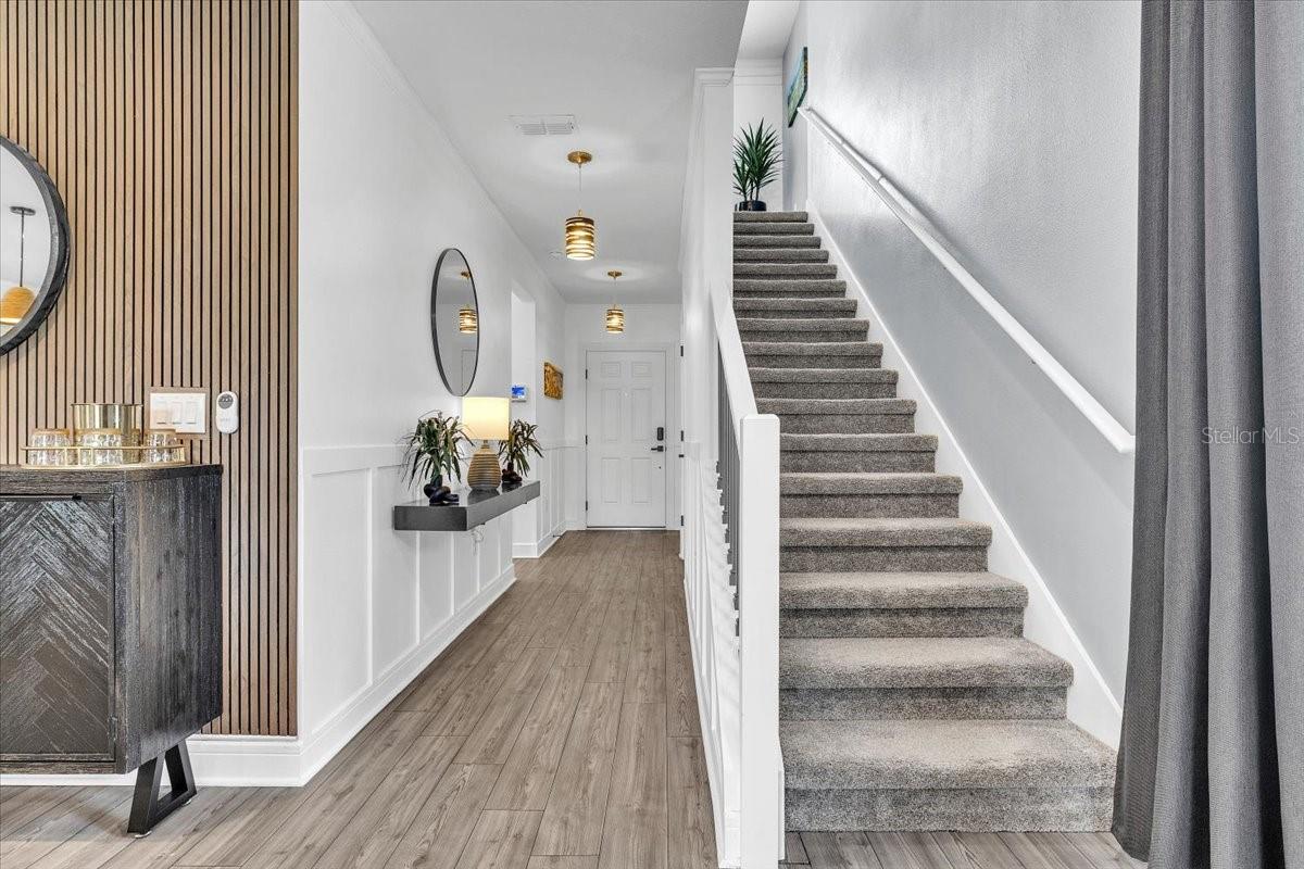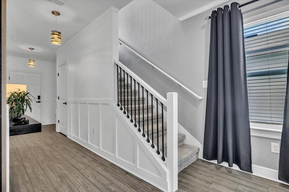 Welcome to this stunning, nearly new home in the highly desirable Isles at Bayview community in Parrish. Perfectly positioned on a premium lot with serene private preserve views, this impressive 4-bedroom, 3-bath residence with a 2-car garage offers modern elegance, 1 of the bedrooms and full bathroom is located on the 1st floor making a perfect retreat or space for in-laws. 2nd floor offers a gorgeous loft area an ideal as private living room, game room or a space for the children to play. Upstairs also features 2 additional bedrooms as well as the Master bedroom suite, Laundry room as well as an additional full bathroom. this home features thoughtful elegant upgrades, and exceptional indoor-outdoor living. Only two years old, this home shows like a model and is truly move-in ready.From the moment you enter, you'll appreciate the bright, open-concept layout designed for both comfortable everyday living and effortless entertaining. The freshly painted interior is enhanced by crown molding, picture frame molding, and chair rail detailing throughout the entire first floor, creating a refined and stylish atmosphere. A beautifully remodeled staircase with the wall removed opens the main level to the loft, delivering a contemporary, airy feel. Glass French doors highlight the pantry and bar area, while a custom feature wall adds character and visual interest to the loft space.The kitchen has been thoughtfully upgraded with new hardware, drawer pulls, and handles, complemented by updated faucets in the kitchen and all bathrooms. Newly installed designer lighting and ceiling fans elevate every room, and upgraded door handles and knobs throughout provide a cohesive, polished finish. A blend of luxury vinyl plank flooring and plush carpet adds both durability and comfort.Step outside to your private outdoor retreat featuring an extended patio, added screening on the lanai, and expanded paver area--perfect for entertaining, relaxing, or enjoying peaceful preserve views. The home's curb appeal is enhanced with upgraded landscaping and white decorative rock around the perimeter for a clean, modern look.Residents of Isles at Bayview enjoy fantastic amenities including a clubhouse, resort-style pool, dog park, and playground. Ideally located off Moccasin Wallow Road with quick access to I-75, approximately 30 minutes to St. Pete, and just minutes from a brand-new hospital, shopping, dining, golf, and beautiful Gulf beaches. This home offers the perfect combination of tranquility, convenience, and modern Florida living. Don't miss your opportunity to own this exceptional property.