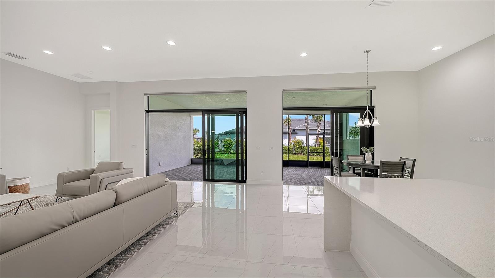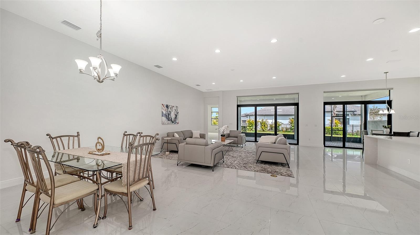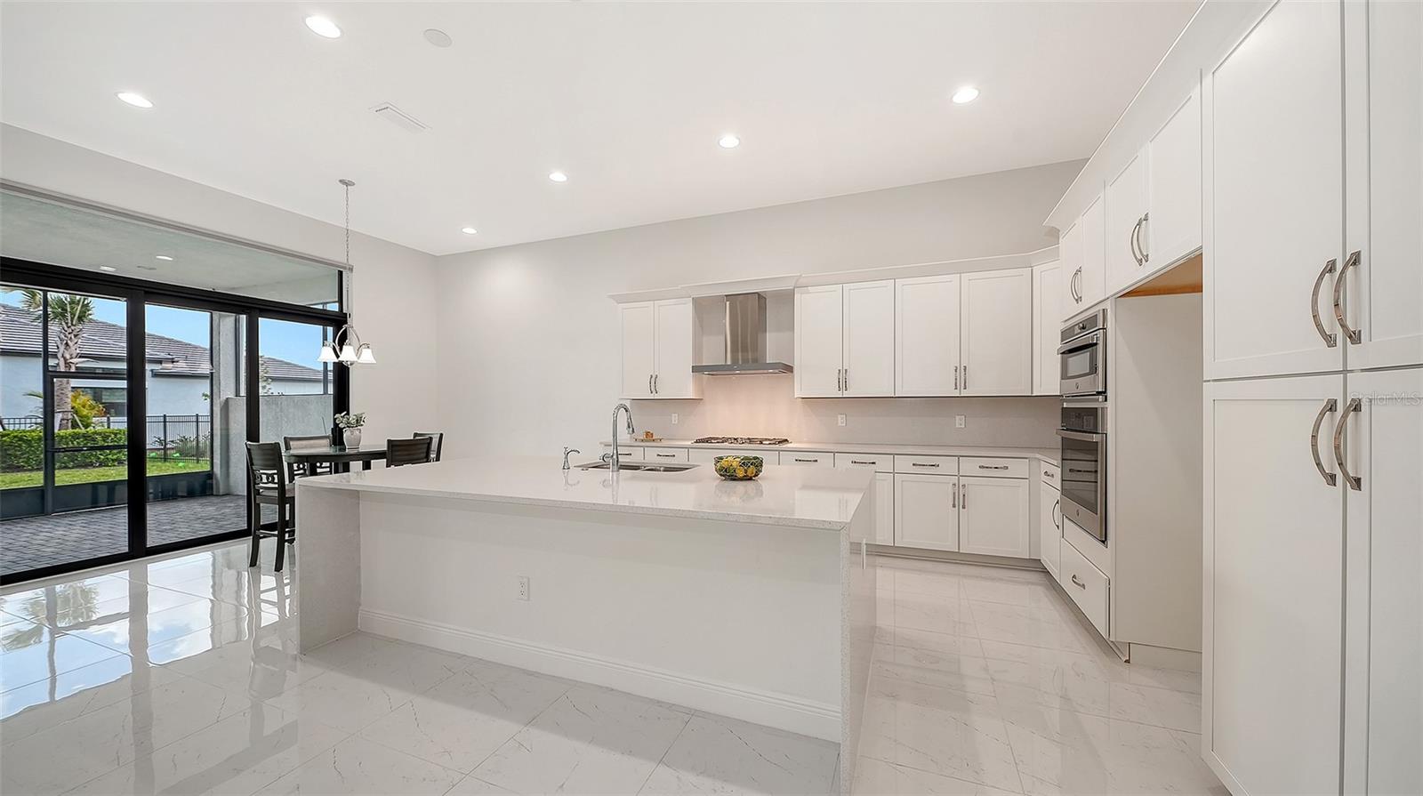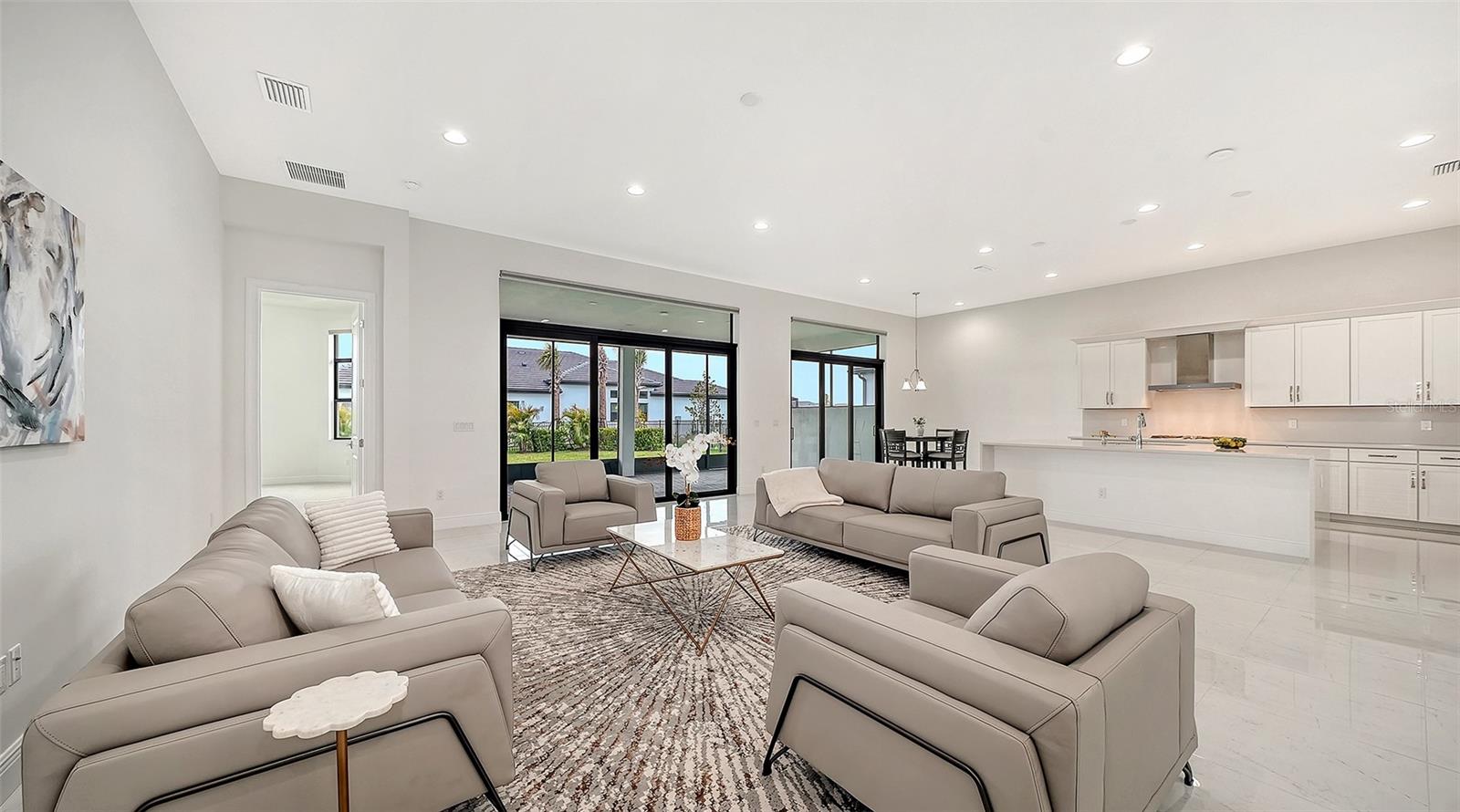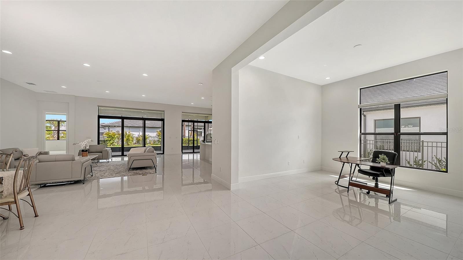 Welcome to this exceptional 2024-built Van Gogh model by Kolter Homes, a rare single-story residence set within the highly sought-after gated community of Artistry Sarasota. Offering 3,066 square feet of thoughtfully designed living space, this 3 bedroom plus office/den, 2.5 bath home embodies a seamless blend of architectural sophistication, modern comfort, and maintenance-free living. A gracious tile-floored foyer sets the tone, welcoming you into an interior defined by clean lines, volume ceilings, and refined finishes throughout. The open-concept layout unfolds into a formal gathering room adorned with custom tray ceilings, flowing effortlessly into a beautifully composed living and dining environment designed for both everyday living and elevated entertaining. Expansive hurricane-impact windows and doors bathe the home in natural light, enhancing the sense of openness while providing peace of mind. At the heart of the home is the gourmet kitchen--anchored by a striking waterfall-edge center island and complemented by abundant counter space, sleek cabinetry, and a substantial walk-in pantry. Outfitted with premium stainless-steel appliances, including a natural gas 30-inch cooktop with vented hood, built-in microwave, thermal wall oven, and dishwasher, this space is designed to inspire both casual meals and culinary pursuits. A breakfast nook offers a relaxed setting for morning coffee, while the adjacent dining area provides an inviting backdrop for more formal gatherings. The private office or den offers a quiet, dedicated workspace ideal for remote work or creative pursuits. The primary suite serves as a serene retreat, featuring coffering ceiling, a sunlit bay window, and a spacious walk-in closet. The spa-inspired bath is thoughtfully appointed with dual vanities and a frameless glass-enclosed oversized shower, creating a calming, refined atmosphere. Two additional guest bedrooms are generously sized and well-positioned, offering comfort and privacy for family or visitors. A well-designed laundry room enhances daily functionality with upgraded cabinetry and a utility sink. Throughout the home, custom motorized window treatments add both convenience and a polished aesthetic, while energy-efficient systems--including open-cell spray foam insulation, high-efficiency HVAC, and a tankless water heater--underscore the home's modern performance and sustainability. Outdoor living is equally compelling. A custom screened lanai, pre-plumbed for a future summer kitchen, invites effortless indoor-outdoor entertaining. The beautifully newly landscaped, fenced corner lot provides both privacy and space to unwind in a tranquil setting with plenty of room for a pool! Residents of Artistry enjoy access to an array of resort-style amenities, including a state-of-the-art fitness center, lap and resort-style pools, outdoor cabanas, a spa, basketball court, playground, and scenic walking trails set among lush landscaping and serene lakes. Ideally located just minutes from premier shopping, dining, top-rated schools, and Sarasota's renowned beaches, this residence offers an unparalleled lifestyle opportunity. Move-in ready and meticulously upgraded, this is a rare offering that combines timeless design, modern innovation, and an exceptional Sarasota location.