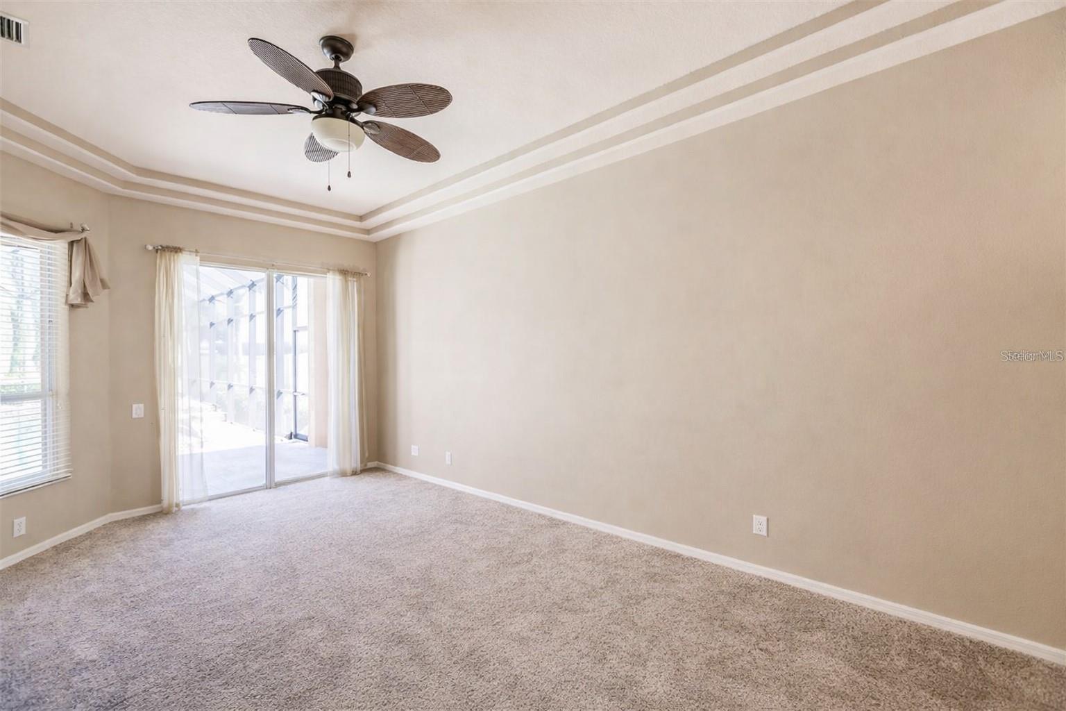 Welcome to your Florida dream home in the highly desirable community of Bobcat Trail, offering serene water views of the Aqua Range Lake and a spacious, thoughtfully designed layout. This 4-bedroom, 3-bath residence features a split floor plan, high ceilings, and an abundance of natural light throughout.The heart of the home is the expansive kitchen, complete with rich cherry wood cabinetry, solid surface countertops, stainless steel appliances, pantry, built-in desk, and a convenient butler's pantry--perfect for both everyday living and entertaining. The open layout flows seamlessly into the main living areas and out to the screened-in lanai.Step outside to your private pool oasis, featuring a recently updated heater and pump, ideal for year-round enjoyment. The oversized lot provides added privacy and peaceful lake views, creating a true retreat.The spacious primary suite offers direct access to the pool, tray ceilings, plush carpeting, and dual walk-in closets. The en-suite bath includes dual vanities, a walk-in tiled shower, and a relaxing garden tub.Additional highlights include a flexible layout with two bedrooms and a full bath on one wing, plus a separate fourth bedroom with pool bath--ideal for guests or a home office. Major updates provide peace of mind, including a 2020 tile roof, 2021 AC system, 2021 gas water heater. The home is also equipped with remote-controlled hurricane shutters, along with impact-rated front windows for enhanced storm protection.With clean lines, neutral finishes, and move-in ready condition, this home offers the perfect blend of comfort, functionality, and Florida lifestyle living.