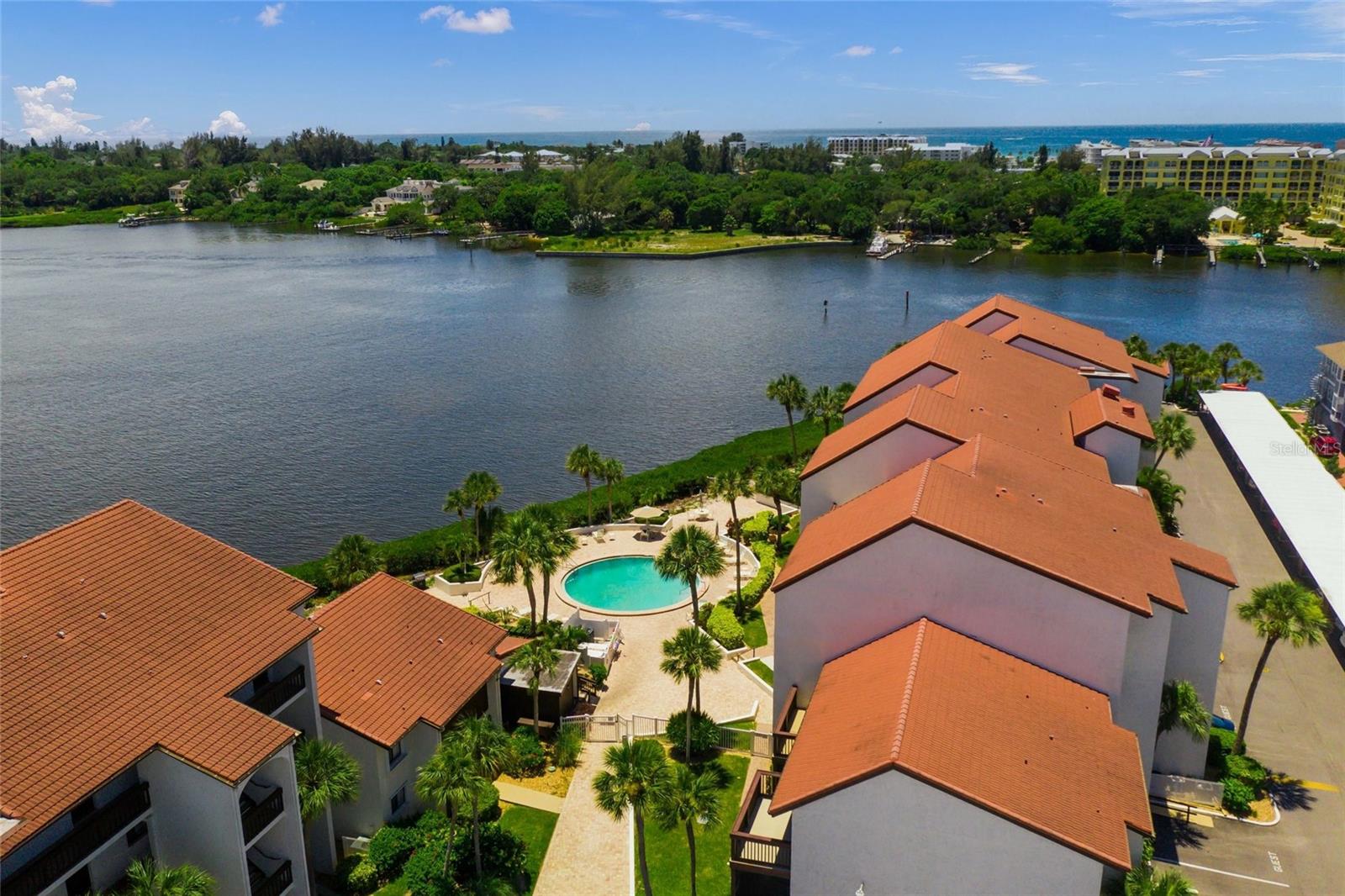 Fantastic opportunity to own a beautifully updated 1BR/1BA first-floor unit in highly desirable Castel Del Mare! This light and bright residence features a tiled entry and kitchen, with attractive laminate flooring throughout the remaining living areas. The spacious kitchen is equipped with white cabinetry, granite countertops, and stainless steel appliances--perfect for both everyday living and entertaining. The generously sized primary suite offers a private, updated en-suite bath complete with granite counters and a walk-in shower. What truly sets this unit apart is the in-unit washer and dryer--a rare convenience--along with an expansive double, oversized lanai just steps from the pool, creating the perfect space to relax and enjoy the Florida lifestyle. Castel Del Mare is a sought-after waterfront community ideally located just steps from the South Bridge to Siesta Key--offering the best of both worlds with easy access to the beach while enjoying the convenience of mainland living.