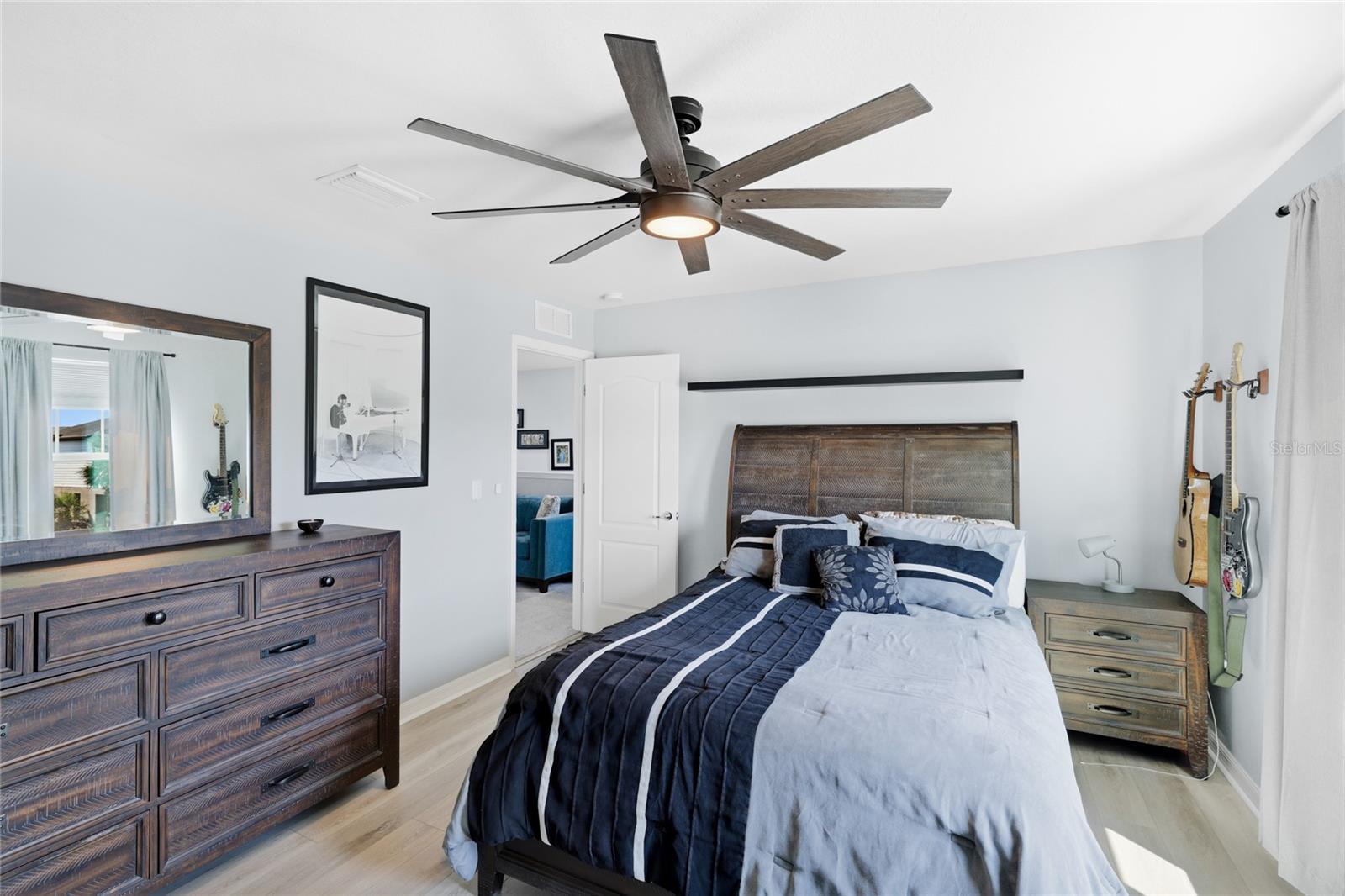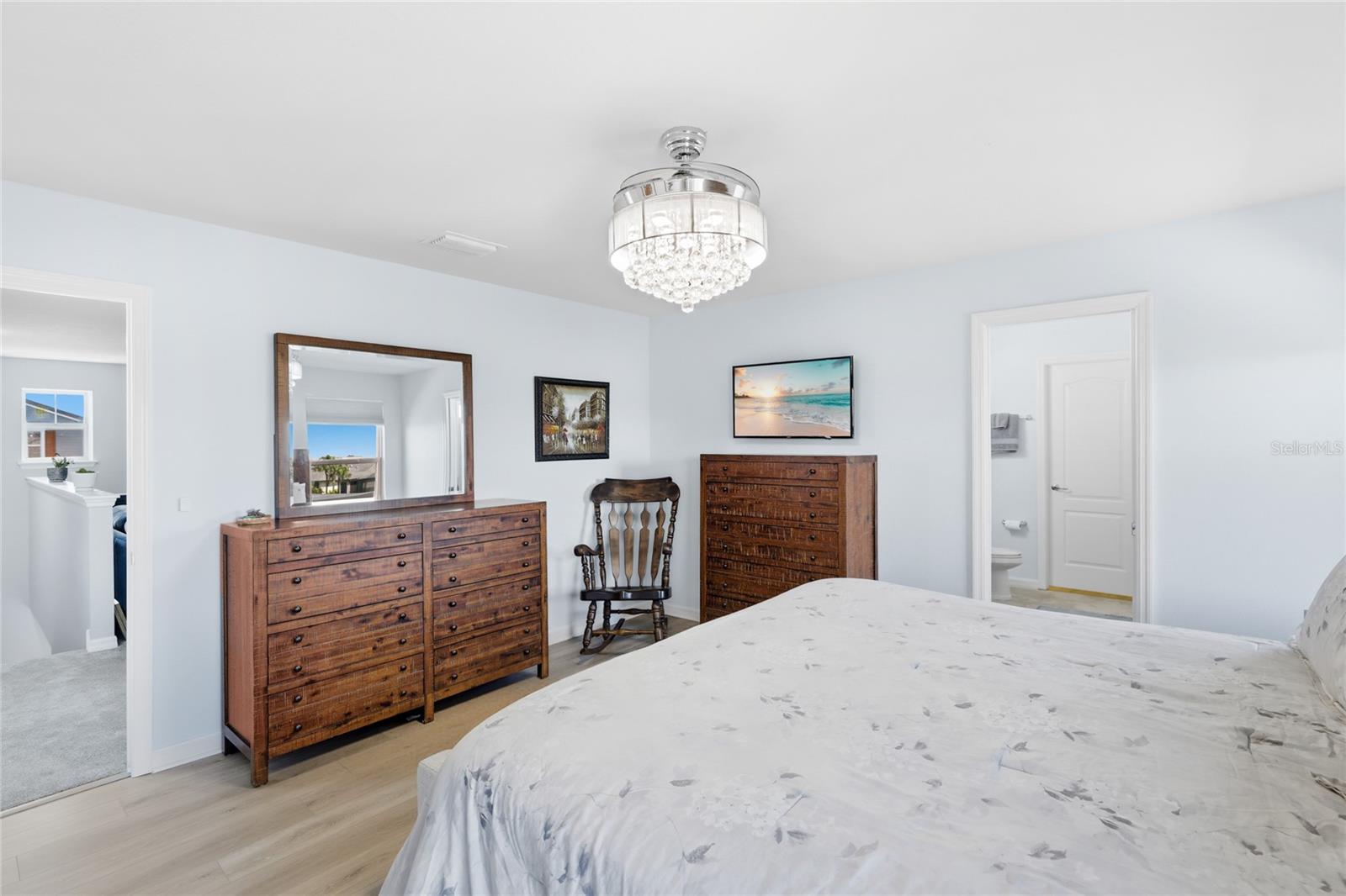 Set against peaceful water views with a heated saltwater pool and spa, this beautifully maintained 4 bedroom, 3 bathroom home offers a seamless blend of indoor comfort and outdoor living. The panoramic screen enclosure frames the water beyond, creating a stunning backdrop, while the custom pool features a self-cleaning system with in-floor jets designed to circulate debris toward the filter for easy maintenance. Inside, a bright and open layout is enhanced by high ceilings, abundant natural light, and clean, modern finishes. A decorative stair railing adds a stylish touch at the entry, while the main living and dining areas connect effortlessly, creating a comfortable and functional space for everyday living. The kitchen is thoughtfully positioned at the rear of the home, overlooking the backyard through sliding glass doors and offering direct access to the lanai, making it easy to stay connected to the outdoor space. Designed with both function and style in mind, the kitchen features granite countertops, stainless steel appliances, ample cabinetry, and a peninsula with bar seating, ideal for casual meals or gathering with guests. A full bedroom and bathroom on the first floor provide added flexibility for guests or multi-generational living. Upstairs, a spacious loft offers a second living area that can easily adapt to your needs, whether used as a media room, playroom, or additional lounge space. The primary suite serves as a peaceful retreat with water views, a well-appointed en suite bathroom, and generous closet space. Two additional bedrooms, a full bathroom, and a conveniently located laundry room complete the upper level. Additional upgrades include new, upgraded carpeting with premium padding, luxury vinyl plank flooring in select areas, a HEPA filtration system with UV light integrated into the HVAC for enhanced air quality, a security system with Google cameras, and added storage solutions such as garage racks and built-in shelving. The outdoor space is designed to be enjoyed year-round, with a screened lanai, heated saltwater pool and spa, and wide water views creating a relaxing and private setting. Located in the sought-after Trevesta community, residents enjoy access to resort-style amenities including a clubhouse, lagoon-style pool, fitness center, playground, and walking paths. HOA benefits include cable, internet, and irrigation, and the home is conveniently located near shopping, dining, and I-75. **THIS PROPERTY QUALIFIES FOR A 1% LENDER INCENTIVE IF USING PREFERRED LENDER. INQUIRE FOR MORE DETAILS.**