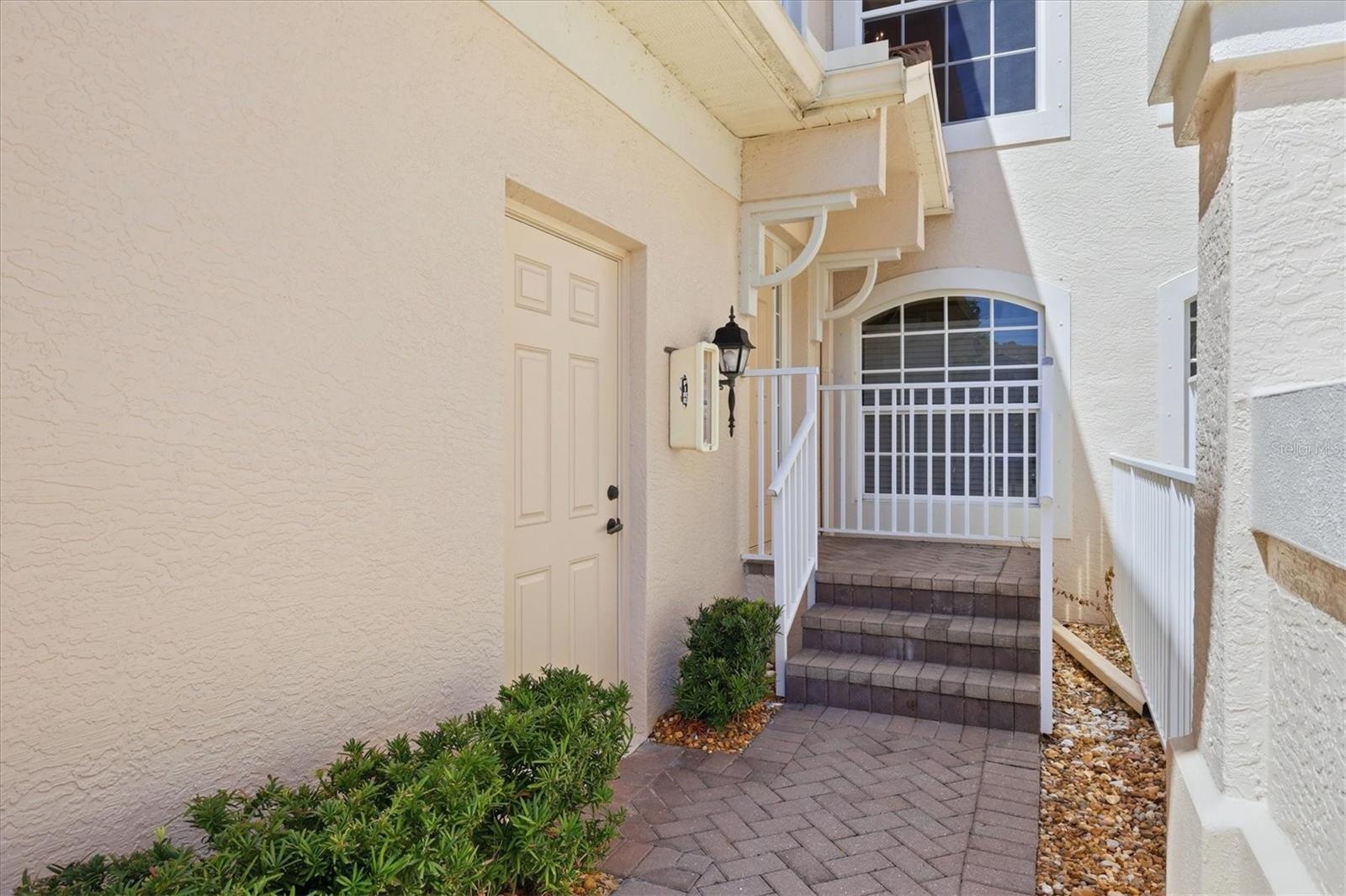 Exterior: Hurricane Shutters, Rain Gutters, Sidewalk, Sliding Doors