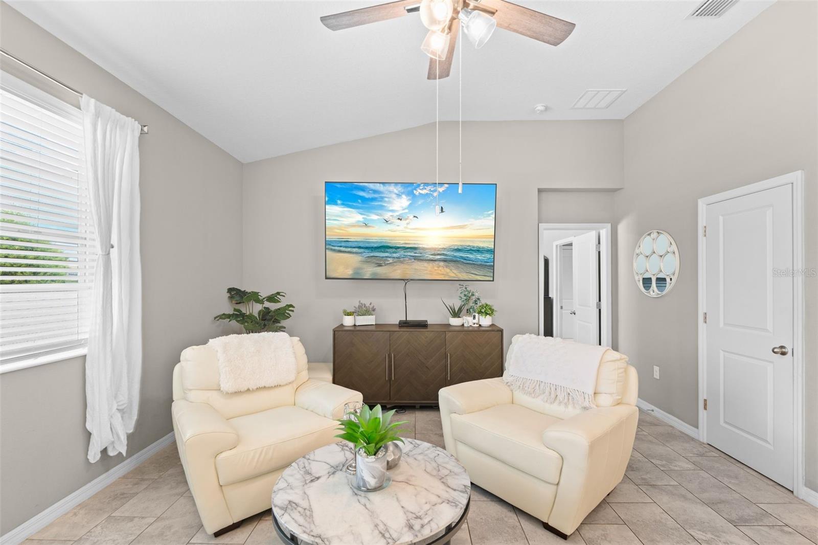 Exterior: Hurricane Shutters, Sidewalk, Sliding Doors