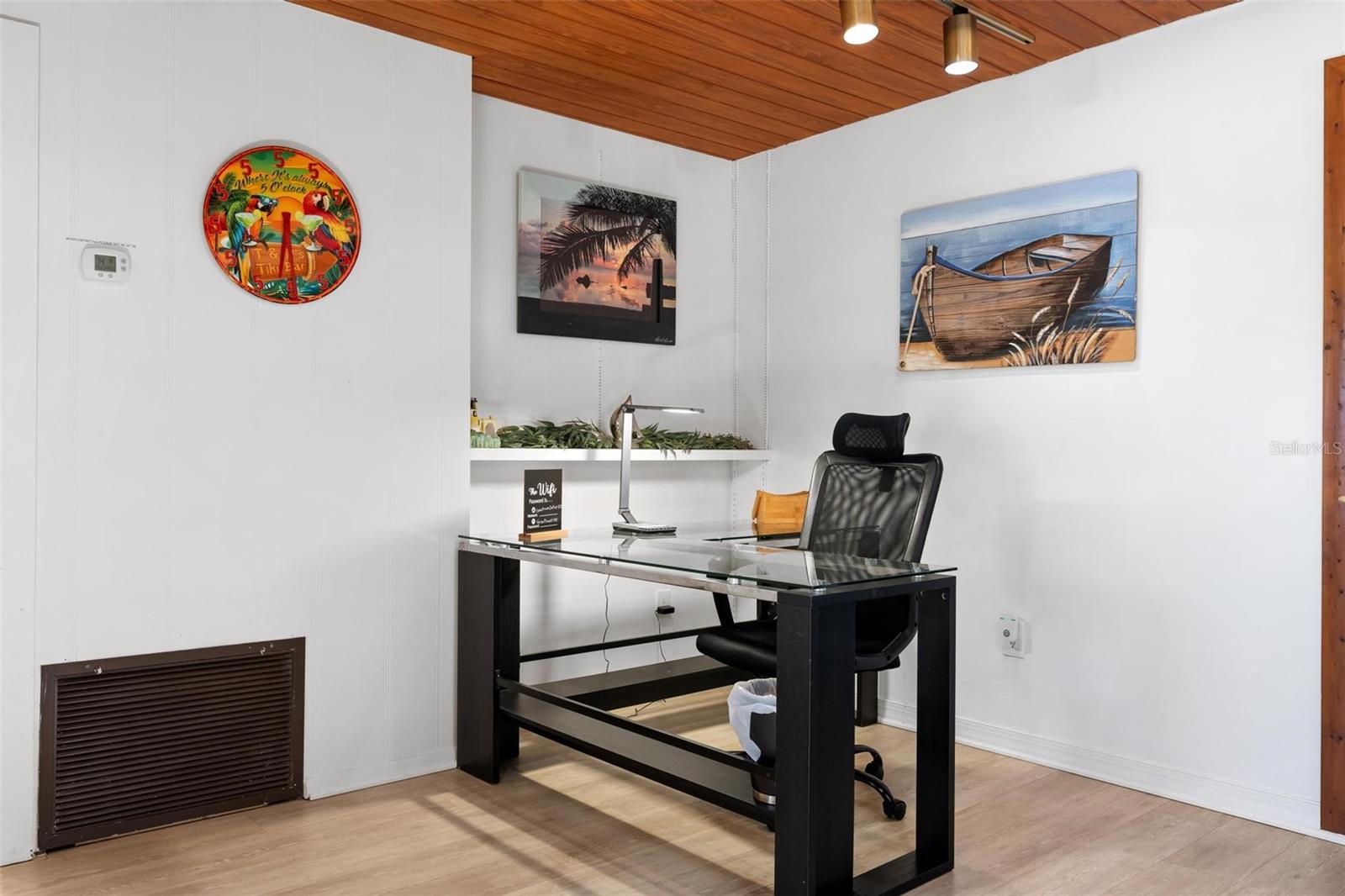 A rare find! Unique mid-century property situated on a spacious corner lot just under an acre with a private Pickle Ball court in the backyard!" This versatile home offers a flexible multi-generational layout featuring 4-bedrooms and 3 baths, including a private suite with kitchenette and separate exterior access to the pool- ideal for extended family, guests, or income-producing potential.Inside, the home showcases and open-concept layout enhanced by beautiful wood ceilings and abundant natural light. the gourmet updated kitchen features modern appliances, ample cabinetry, and generous counter space, seamlessly flowing into the main living and dining areas-perfect for both everyday living and entertaining. Step outside to your own backyard oasis featuring a private pickleball court, resort-style swimming pool, tiki bar, and covered back porch-designed for true Florida living. There is an additional private screened in patio off the rear bedrooms give you even more space to relax and unwind. The primary suite overlooks the lush outdoor setting, and the ensuite bath invites you to relax in a soaking jacuzzi tub with a serene window view.Additional highlights include no HOA, and ample space for boats, RVs, or recreational toys. A rare opportunity to own a unique property with space, character, and endless possibilities.