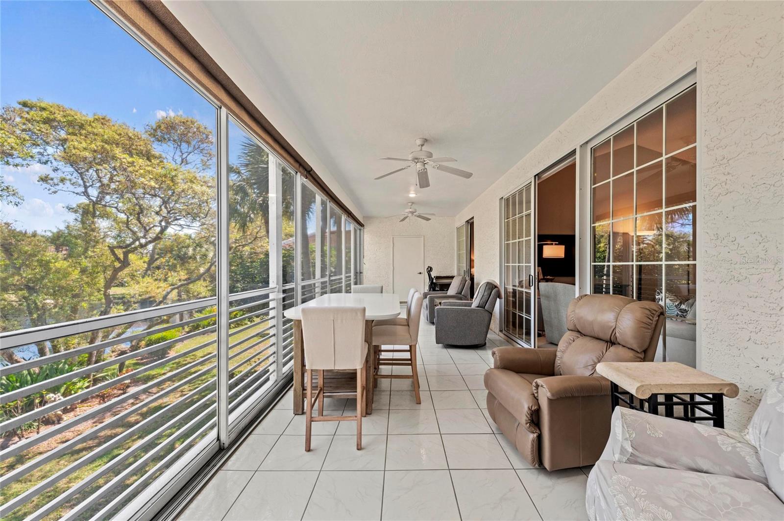 Opportunities to own the largest floor plan in Vizcaya are exceptionally rare, as this 3-bedroom "Azalea" model marks the first time a residence of this scale has reached the market in several years. While smaller units appear periodically, this specific 3-bedroom, 3-bathroom configuration is the most elusive footprint in the community, offering a level of utility and privacy that hasn't been available to buyers in years. Situated on the second floor, this pristine condo features high ceilings and a light-filled, open layout highlighted by a screened front entrance with double doors and a large, glass-enclosed Florida room providing quiet garden and water views. The interior is designed for comfort and functionality, offering a double master suite and dual walk-in closets, while every bedroom in the floor plan enjoys its own private balcony access. Notable improvements include beautifully updated kitchen and bathrooms. This home also provides dual views--overlooking the IMG Golf Course from the front and tranquil fountains from the rear--along with a versatile third bedroom perfect for an office, a full-sized laundry room with extra storage, and a private carport. Located in the gated, Mediterranean-style enclave of Vizcaya, residents enjoy luxury amenities including an Olympic-sized heated pool, spa, and fitness center, all just minutes from IMG Academy and the gulf beaches of Anna Maria Island. Given that a 3-bedroom unit of this caliber has not been available for years, this is a fleeting opportunity in the El Conquistador area.