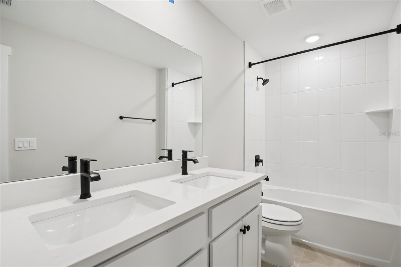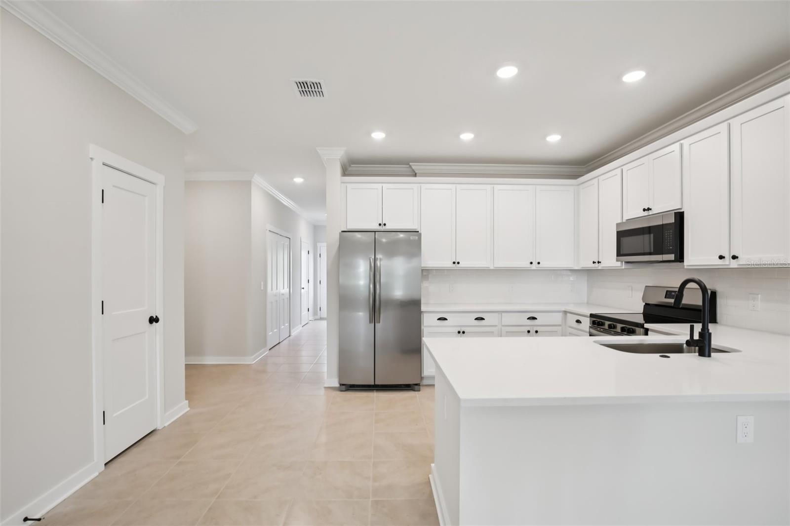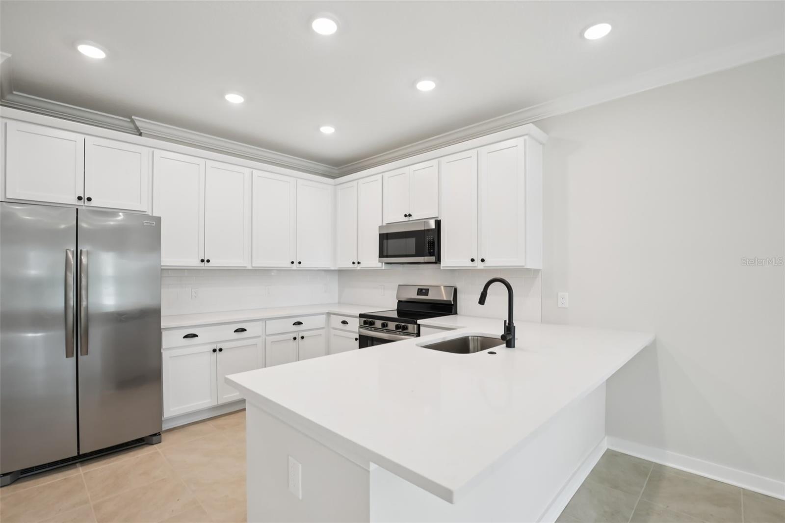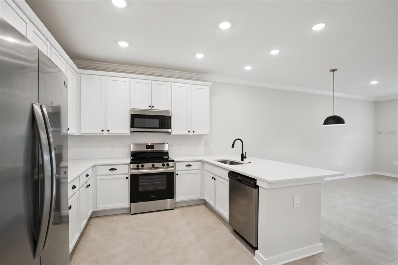 **When using builders preferred lender builder will contribute up to $24,000 towards buyers closing cost or rate buy down** Welcome Home, to your Sanctuary. Beautifully appointed townhome featuring 42" white cabinets with crown molding, black hardware, quartz countertops, subway tile backsplash, stainless steel appliances, and a farmhouse-style single basin sink. Designer lighting and 12x12 cream tile flow throughout the main living areas, with a hardwood staircase and open railing adding a modern touch. Both bathrooms include floor-to-ceiling tiled showers and dual vanities. Impact glass windows and doors provide added efficiency and peace of mind. Enjoy a tranquil water view in this thoughtfully designed, low-maintenance home blending modern finishes with coastal inspired living.
