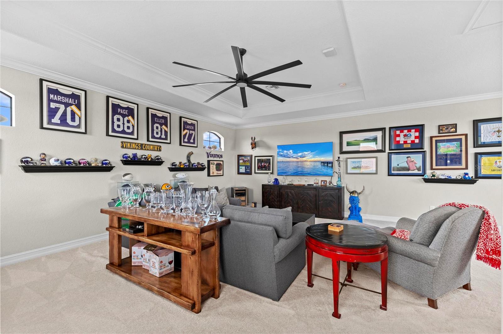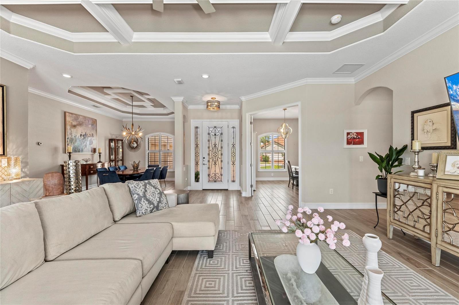 Welcome to one of the most desirable homes in Sarasota National's estate section--where refined design, breathtaking golf course views, and effortless indoor-outdoor living come together in perfect harmony.Ideally positioned mid-street on a quiet cul-de-sac, this Napoli Grande residence with pool and spa captures sweeping long fairway views of the 2nd hole, paired with coveted southwestern exposure. The result is a home filled with warm, natural light by day and unforgettable sunset evenings that unfold over your private pool and spa--an ever-changing backdrop of color and calm.Inside, every detail has been thoughtfully elevated. Custom trim work and coffered ceilings bring architectural richness and warmth to the main living spaces, while the open-concept design creates a natural flow that feels both inviting and expansive. The kitchen and great room transition seamlessly to the lanai, blurring the lines between indoors and out--perfect for entertaining or simply enjoying the rhythm of everyday living.Designed to truly embrace Florida's indoor-outdoor lifestyle, disappearing sliding glass doors--along with additional access from the breakfast nook and primary suite--open to a spectacular screened lanai. Here, a sparkling pool and spa are surrounded by a serene tropical setting, all enhanced by those sought-after southwestern sunset views that elevate every moment.The outdoor space has been beautifully reimagined with a light, modern stone pool deck, offering a clean, sophisticated aesthetic that complements the natural surroundings. A covered lanai with wood ceiling detail creates the ideal setting for morning coffee, relaxed afternoons, or evenings spent gathering with friends as the sun dips below the fairway.Upstairs, a spacious bonus suite with a full bath, bar area, sink, and wine refrigerator offers incredible flexibility--whether as a private guest retreat, media room, or an elevated entertaining space.Additional features include hurricane-rated windows and doors, Storm Smart protection for the lanai, and a 3-car garage--blending peace of mind with everyday convenience. This home also includes a coveted golf membership, offering immediate access to Sarasota National's championship course--an exceptional value and lifestyle advantage.As a resident, you'll enjoy resort-style amenities including golf, dining, fitness, and a vibrant, connected social atmosphere. The golf course is currently undergoing a renovation to bring you a new and improved golfing experience. Perfectly located near multiple golf courses and just minutes from Wellen Park, with easy access to Englewood Beach, Venice Beach, Siesta Key, and the natural beauty of Myakka River State Park.This is more than a home--it's a lifestyle defined by comfort, elegance, optional activities and connection.Come see, come sigh... and make this extraordinary residence your own.