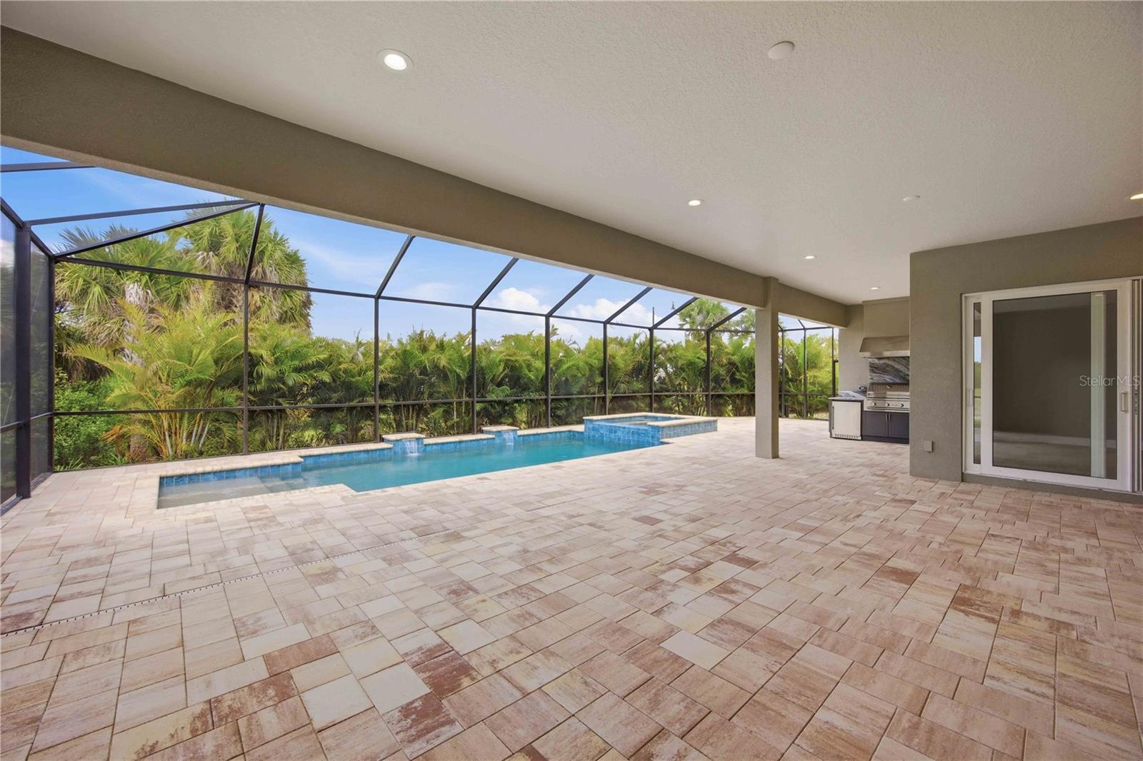 RARE OPPORTUNITY TO OWN THE VERY LAST BRAND NEW HOME IN GRAN PLACE!! Welcome to Gran Place at Wellen Park - an exclusive Sam Rodgers Homes private enclave of just 42 custom homes. Introducing the Destin Modern Farmhouse-Completed Quick Move-In Home. This 2,932 sq. ft. home offers 3 bedrooms, 3 baths, a bonus room, den/office, with PGT impact glass windows and doors and oversized 2-car garage + separate 1 car garage. Outdoor living shines with a private pool, spa, outdoor kitchen, spacious paver lanai, and peaceful preserve and palm views. Inside, the open great room design is anchored by a gourmet kitchen featuring an oversized center island, quartz countertops, built-in stainless steel appliances, soft-close wood cabinetry, and a natural gas cooktop-perfect for hosting family and friends. The private primary suite boasts dual walk-in closets and a spa-like bath with dual vanities and a soaking tub. Gran Place is a natural gas community designed with chefs and entertainers in mind. Sam Rodgers Homes is known for unmatched quality and craftsmanship that speaks for itself. As a resident, you'll also enjoy exclusive membership opportunities with Plantation Golf & Country Club. Through this special partnership, Gran Place homeowners can access private membership incentives available only to our community, with amenities including: Two championship 18-hole golf courses, Expansive practice facilities, Jr. Olympic-sized pool, 24-hour fitness center, 12 Har-Tru tennis courts, 6 pickleball courts, Bocce courts, Multiple dining venues and year-round social events. Beyond Gran Place, the Downtown Wellen District offers waterfront dining, boutique shopping, entertainment, and year-round events across 175 acres. Residents enjoy a 3-mile health and wellness trail, food truck arena, splash pad, playground, activity lake with paddle boards and kayaks, plus over 20 miles of scenic nature and fitness trails. With easy access to major highways, world-class beaches, Downtown Venice, and Downtown Sarasota are all within reach. Families will also appreciate proximity to top-rated Sarasota County schools. The Destin Farmhouse delivers everything you want-and more-in one of Venice's most desirable new communities.