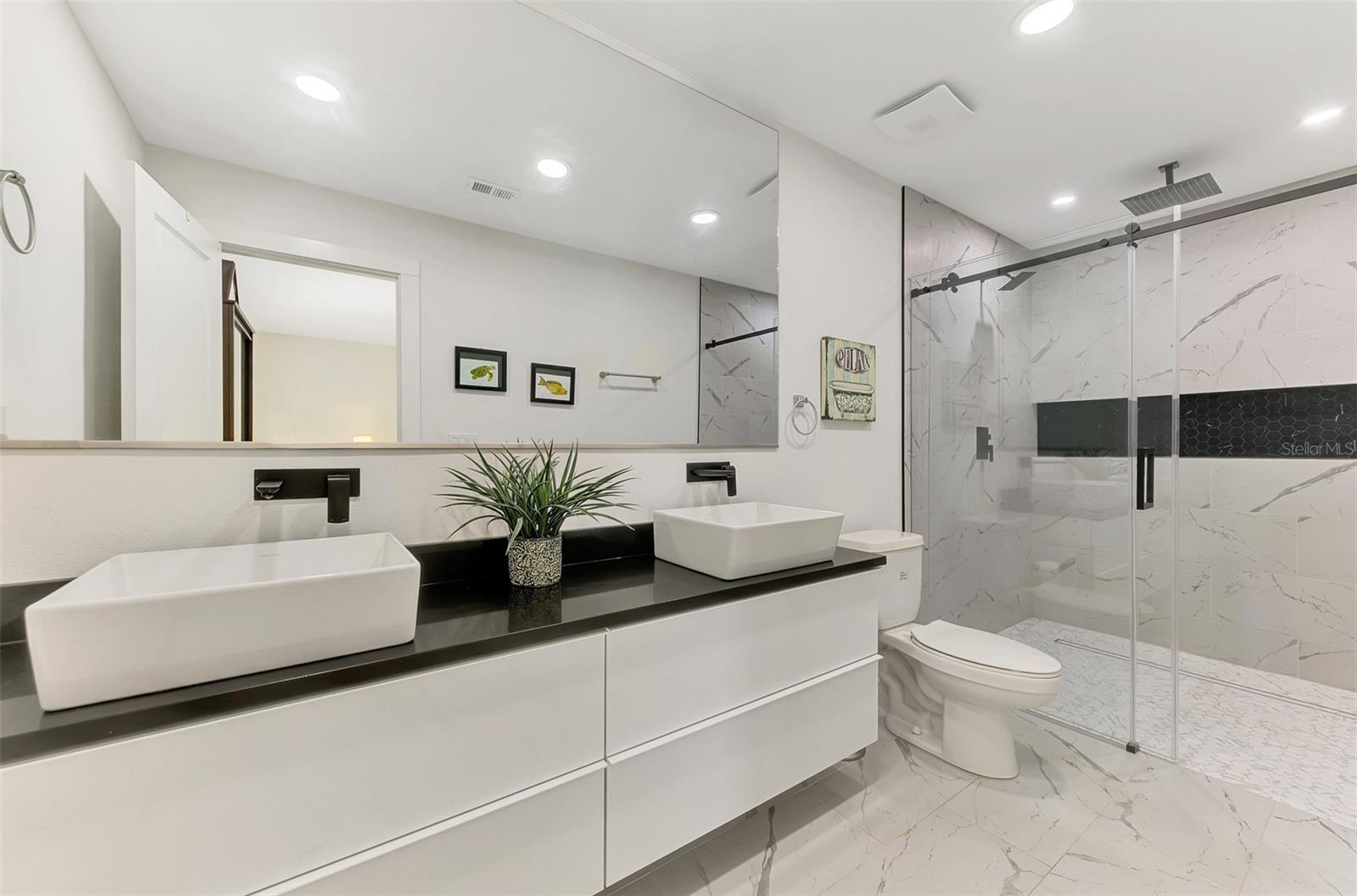 Welcome to your private slice of paradise in highly sought after MISSION VALLEY ESTATES in Nokomis, Florida! With all your big ticket items taken care of, this is a MUST SEE! This beautifully updated 3-bedroom, 2-bath concrete block home sits on OVER AN ACRE in this desirable non-HOA, no CDD neighborhood, offering space, flexibility, and modern upgrades throughout.A circular driveway provides a welcoming entrance and ample parking. Inside, the home features ceramic tile flooring throughout, newer cabinetry, quartz countertops, stainless steel appliances, and modern recessed lighting for a clean, contemporary feel. The inviting family room overlooks the pool through a sliding glass door and showcases a stunning stone wood-burning fireplace--perfect for relaxing evenings. The primary suite offers a luxurious retreat with a beautifully updated bathroom featuring marble tile, double vessel sinks and a walk-in shower with floor-to-ceiling tiled walls. Bedrooms two and three are on the other side of the home and are connected by a convenient Jack-and-Jill bathroom, ideal for family or guests. Plantation shutters enhance most windows, while HURRICANE IMPACT WINDOWS throughout provide added protection and peace of mind.Step outside to enjoy the expansive property and screened lanai, recently rescreened and painted. A standout feature is the detached pool house with an impact glass slider and mini-split air conditioner--perfect for a man cave, home office, yoga studio, or guest space with endless possibilities. There is also a 10 X 20 storage shed for all your yard tools!Ideally located near the Legacy Walking Trail and I-75, you'll enjoy convenient access to beaches, dining, shopping, and more.Major Updates Include: 2022: New Roof, New septic tank, Hot water heater, Lanai rescreened and painted. 2023: New AC and ductwork, New garage door, House rewired, Hurricane Slider installed on Pool House. 2024: Connected to county water.With over an acre of land, no HOA restrictions, and extensive updates already completed, this property is a rare opportunity to enjoy Florida living with room to grow.