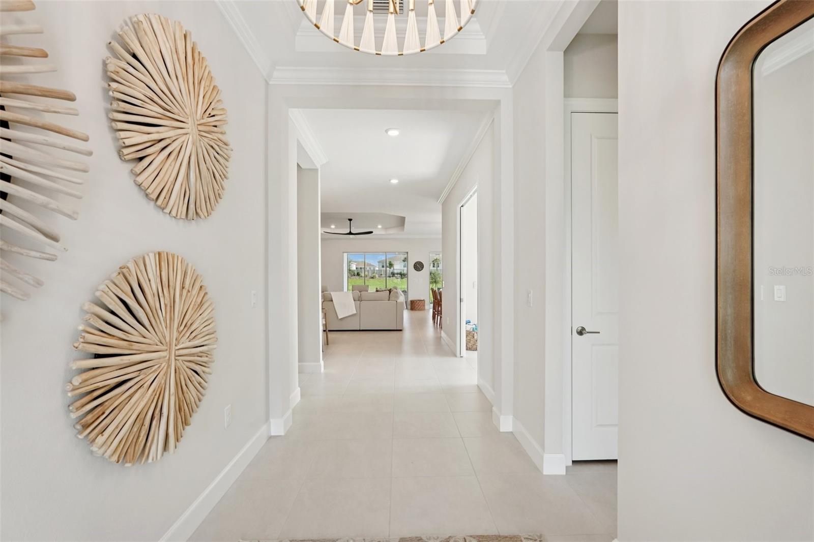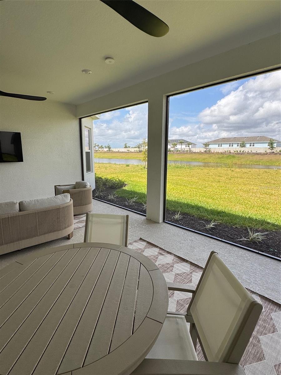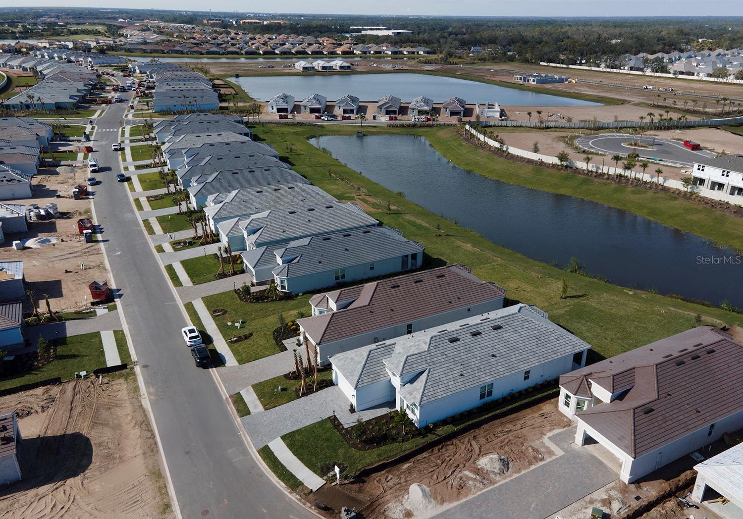 Welcome to this stunning, upgraded water-view -- a 3-bedroom, 3-bathroom single-family home with a den, nestled on a premium cul-de-sac lake lot in the highly sought-after Esplanade at Azario at Lakewood Ranch. Enjoy breathtaking lake views and, all just steps from world-class resort amenities.This beautifully designed residence features a tandem 3-car garage and an impressive list of upgrades throughout. The gourmet kitchen is a chef's dream, complete with a range hood, gas cooktop, 56-bottle wine fridge, and 42" soft-close cabinets. Soaring 10' tray ceilings with double crown molding, 8' closet doors, and designer-upgraded lighting throughout create an atmosphere of refined elegance at every turn.The south-facing extended covered lanai is perfectly positioned to keep you cool and comfortable -- no harsh direct sun beating in -- while the backyard basks in gorgeous natural sunlight, making it ideal for outdoor entertaining. The lanai is pre-plumbed and pre-wired for outdoor entertaining and a future pool, giving you the opportunity to customize your own backyard oasis. Additional enhancements include epoxy-coated garage floors, full landscape lighting with pathway, flower bed, and palm tree uplighting, and prewiring for front and rear security cameras. Lawn maintenance is included in the HOA for true lock-and-leave convenience.While golf is not deeded to the property, independent golf memberships are available through the community pro shop.Location & Community FeaturesSituated within the exclusive gated community of Esplanade at Azario, this home offers unparalleled privacy alongside resort-style living. Community highlights include an 18-hole championship golf course, pro shop and bunker bar, aqua driving range, resort-style pool with poolside Bahama Bar, spa and wellness center, culinary center with teaching kitchen, state-of-the-art fitness center, clubhouse, 16 pickleball courts, 6 Har-Tru tennis courts, bocce ball, walking trails, dog park, a full-time activities director, and flexible space for gaming and meetings.This exceptional home and vibrant community deliver the perfect blend of luxury, comfort, and active Florida living!