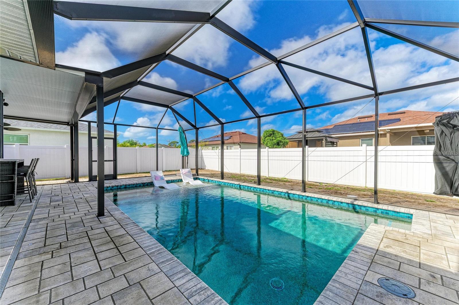 Looking for a home with a pool, major upgrades already taken care of, and energy-efficient living built in?Major improvements completed in 2024 include a new roof, beautifully remodeled bathrooms, and a newly completed outdoor space with a salt water pool, pavered lanai, and screened enclosure -- creating a true setting for both relaxing and entertaining. When you step inside, it truly feels like home, with the peace of mind that everything important has already been taken care of.The open floor plan makes everyday living easy, whether you're hosting guests or just enjoying time at home. The split-bedroom layout offers added privacy, making it ideal for guests or creating separation between living spaces. A built-in fold-down table adds flexible extra counter space when needed, while keeping a clean, streamlined look when not in use.Paid solar panels power the entire home, helping significantly reduce monthly expenses. Additional energy-efficient features include newer windows with privacy and UV tint, attic spray foam insulation, and a hybrid heat pump water heater, all designed to keep utility costs down while maintaining comfort.The home is equipped for modern living with a full smart home setup, including multiple Ring cameras, Alexa integration, and a built-in Alexa speaker on the lanai. It also features a whole-home fragrance system integrated into the HVAC, allowing for a consistently fresh, inviting atmosphere throughout. Additional updates include a Kinetico water softener, upgraded sprinkler system, permanent exterior lighting, and new French doors.Out back, the newly completed pool, pavers and lanai create the perfect space to relax or entertain, while the fully fenced yard allows little ones -- with or without fur -- to play safely. The remaining space is ready for you to create your own outdoor oasis, whether that's lush grass, tropical trees, or a fully customized setting.With major systems updated, energy-efficient features in place, and a newly completed outdoor living area, this home offers a rare combination of comfort, efficiency and peace of mind.