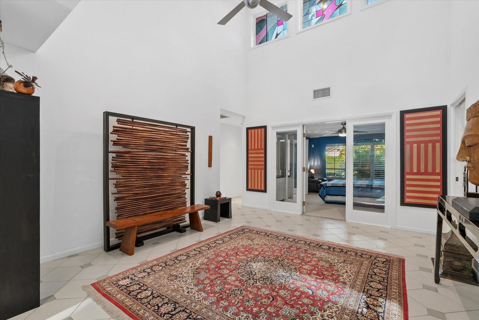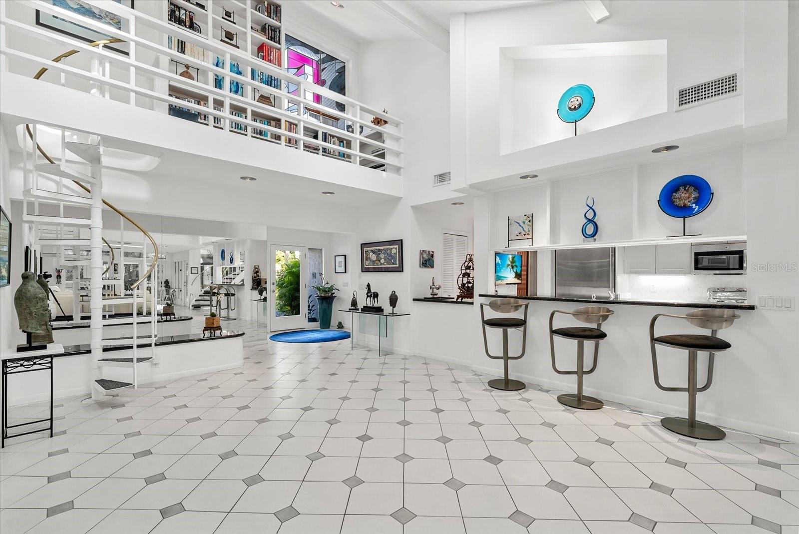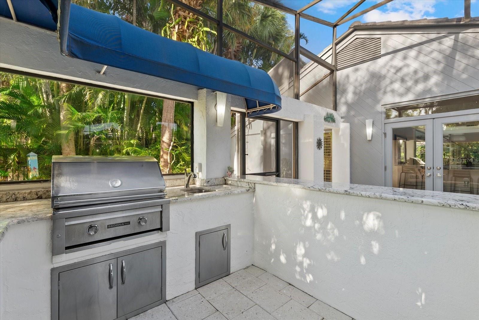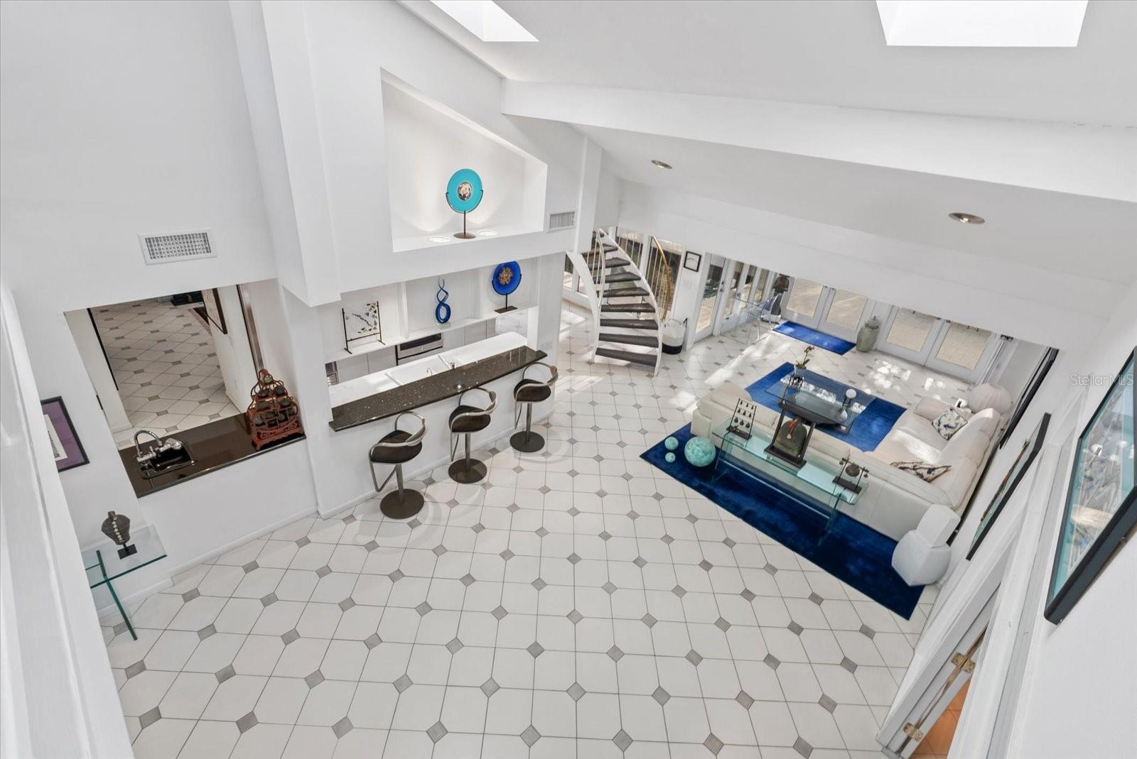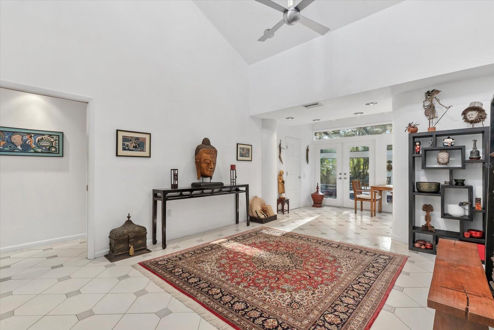 Tucked within the winding, tree-lined streets of one of Sarasota's most coveted west of trail communities, this architectural gem offers a rare opportunity to own a signature custom home in The Landings. With over 3,800 square feet of living space, four bedrooms, four full baths, and a powder room, this 1983 residence is the epitome of elevated design - where bold architectural character meets serene, sanctuary-style living.Soaring vaulted ceilings and dramatic spiral stairwells set the tone from the moment you enter. An elevated library nook invites quiet retreat, while custom stained glass windows cast beautifully filtered light throughout the day. A dedicated meditation space adds a dimension of wellness rarely found in residential design - your own private escape to find balance and calm. The outdoor living experience has been thoughtfully reimagined. A resurfaced private pool anchors the expansive lanai, now complemented by a generous outdoor kitchen ideal for entertaining or simply savoring the Florida lifestyle in style. Life at The Landings extends well beyond your front door. Winding roads shaded by mature canopy trees, neighborhood lakes, parks, and nature trails create an idyllic backdrop for morning walks, cycling, and quiet reflection. Residents enjoy direct access to Roberts Bay, and the community's optional Racquet Club offers swimming, tennis, and lessons just a short bike ride away -- a lifestyle as active or as tranquil as you choose.This is more than a home. It is a retreat, a statement, and a community.