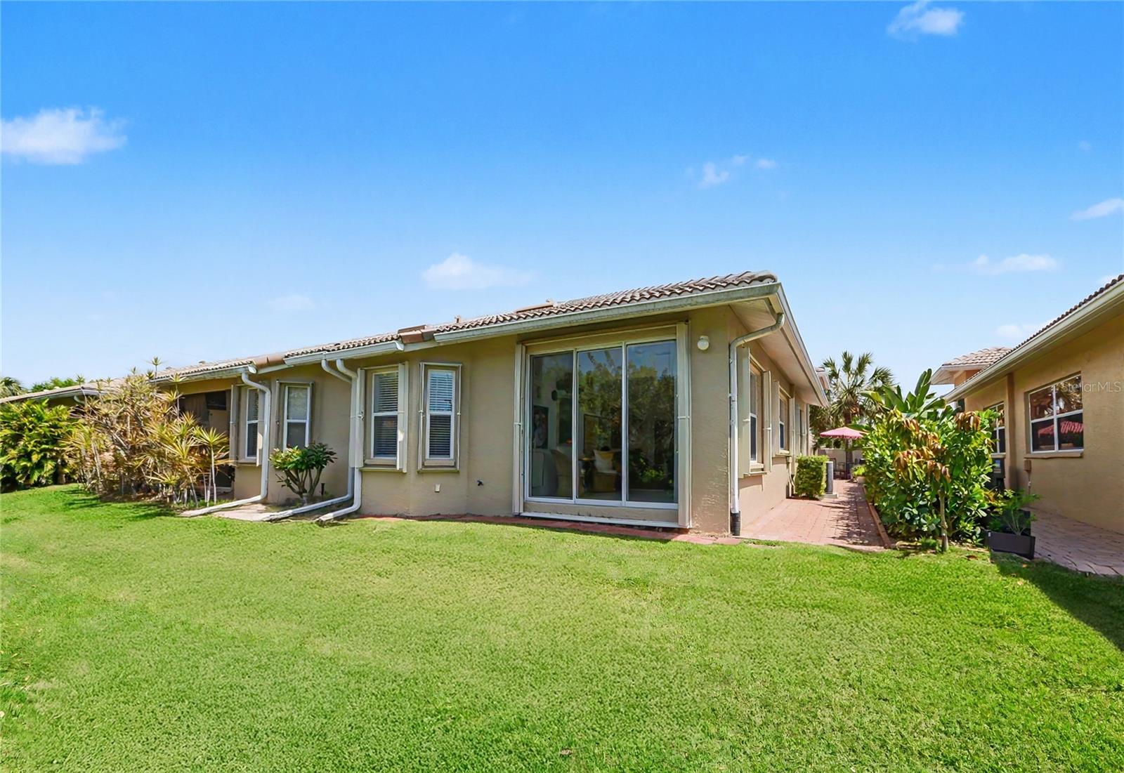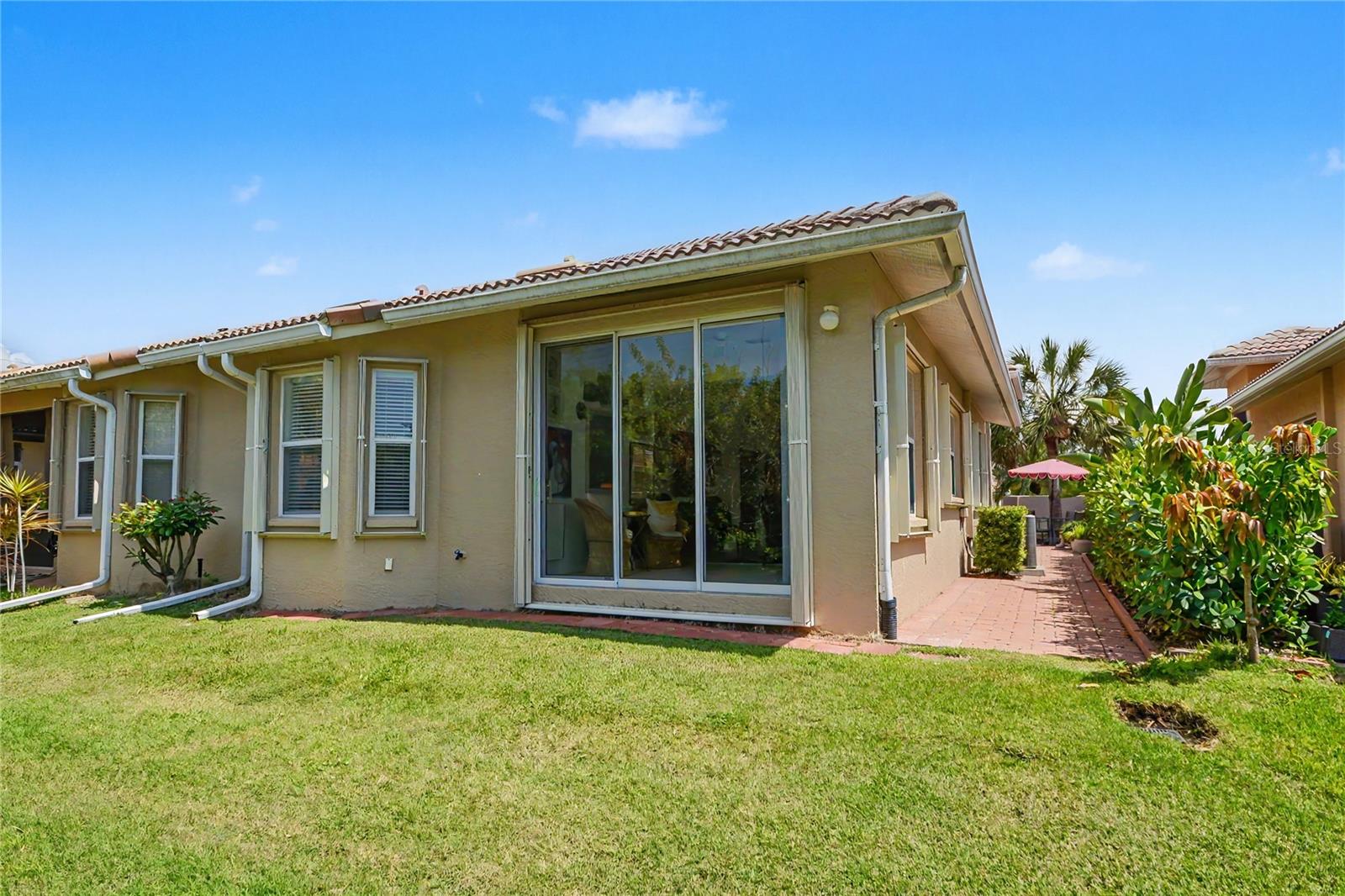 Exterior: Courtyard, Gray Water System, Hurricane Shutters, Lighting, Rain Gutters, Sidewalk, Sliding Doors