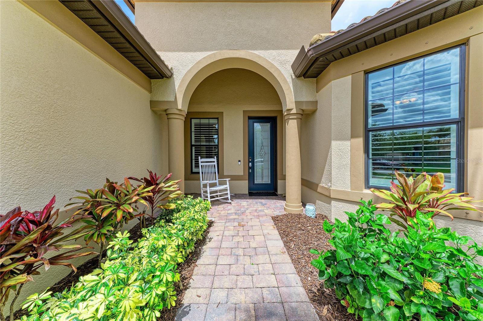 Exterior: Rain Gutters, Sidewalk, Sliding Doors