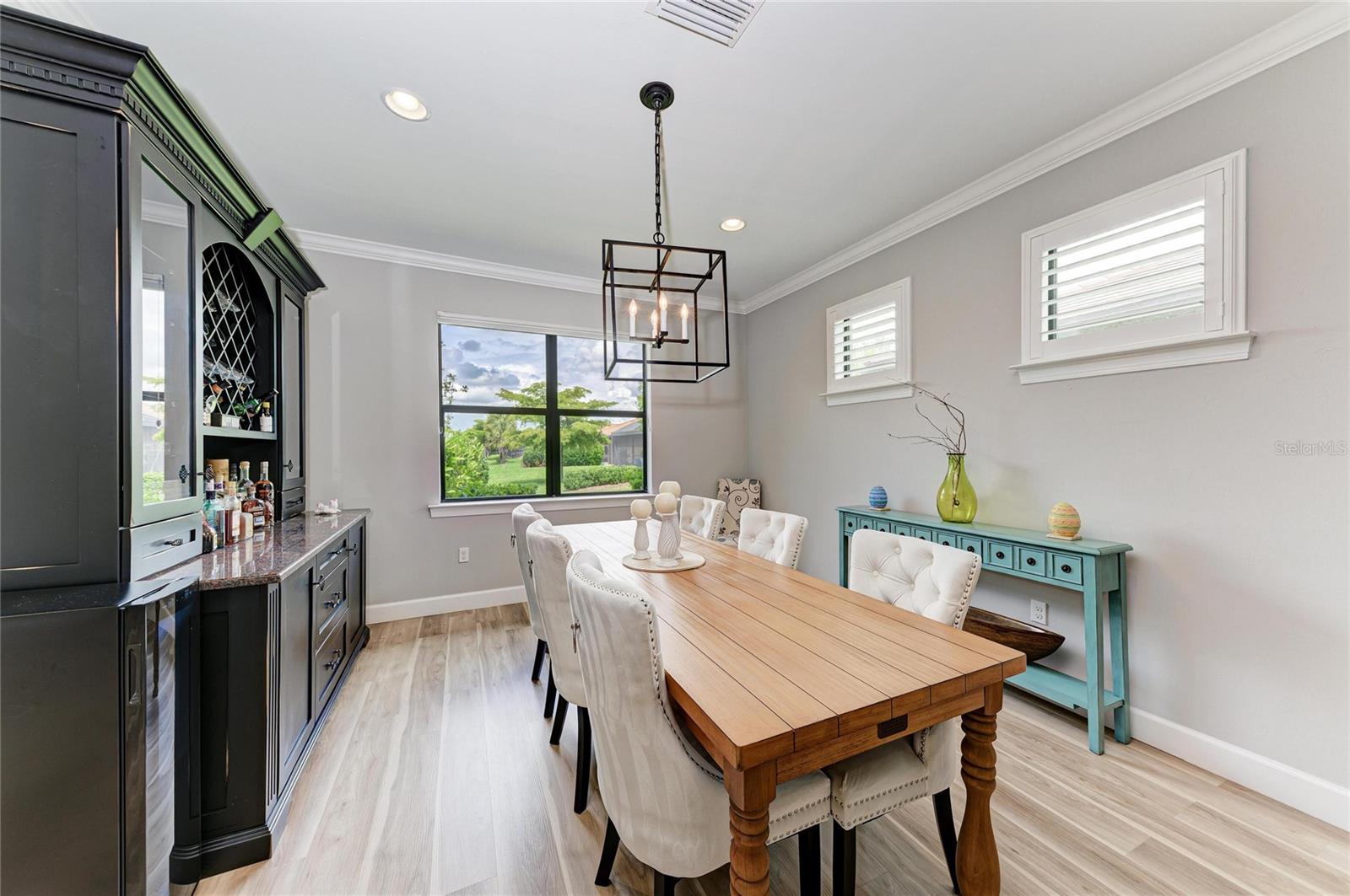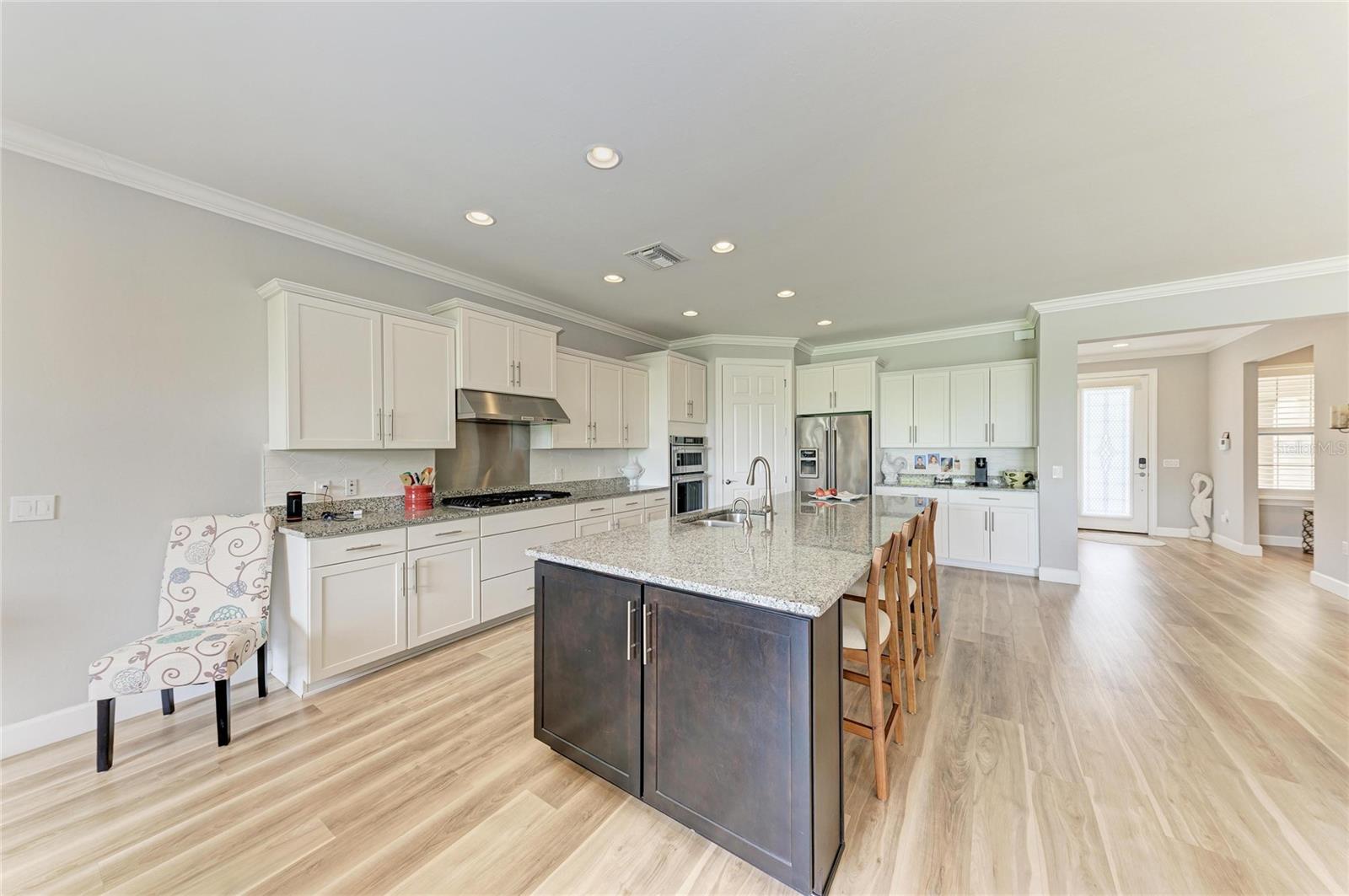 This Exceptional Pinnacle residence presents a masterful blend of sophistication, Premier location, and effortless lifestyle in this 55+ Del Webb community. Perfectly situated on a tranquil and very private cul-de-sac with north/south exposure, this home enjoys a prized waterfront setting. Spanning 2,488 square feet, this impeccably appointed Smart home with a WHOLE HOUSE GENERATOR showcases an open-concept design curated for both refined living and elegant entertaining. From the moment of arrival, its striking curb appeal introduces the elevated finishes and thoughtful details found throughout. A desirable split floor plan offers 3 spacious bedrooms, 3 beautifully appointed bathrooms, and a versatile den--ideal for a private office, library, or additional guest space. Luxury vinyl plank flooring flows seamlessly throughout, complemented by crown molding and substantial five-inch baseboards, creating a timeless and cohesive aesthetics. At the heart of the home, the chef's kitchen is both stunning and functional, featuring an expansive center island, granite countertops, and premium KitchenAid stainless steel appliances, including a five-burner gas cooktop, built-in oven, and microwave. The kitchen opens effortlessly to the grand living and dining areas, forming an inviting space designed for gathering and entertaining. Pocketing sliding glass doors dissolve the boundary between indoors and out, revealing an extended lanai that captures serene water views--an idyllic setting for morning coffee or sunset evenings. The owner's suite is a true sanctuary, distinguished by a tray ceiling, designer accent wall, and a spa-inspired ensuite. Indulge in dual vanities, an oversized walk-in shower, an expansive walk-in closet, and refined finishes that evoke a sense of everyday luxury. Two additional guest suites with large guest closets --one with its own private ensuite--offer comfort and privacy for visitors. The well-appointed laundry room enhances functionality with custom wood cabinetry, a utility sink, and generous workspace. Extended 3-car garage with a four-foot extension, epoxy-coated floors. Seamlessly blending elegance, comfort, and modern convenience, this remarkable residence offers an unparalleled opportunity to experience the very best of the Del Webb lifestyle in Lakewood Ranch. Enjoy Pickleball, resort style pool, Gym, classes, Restaurant, a Full time director for activities all day everyday !! Minutes to Waterside, UTC mall, and many shopping and Restaurant opportunities. Just a short drive to the worlds most beautiful beaches.