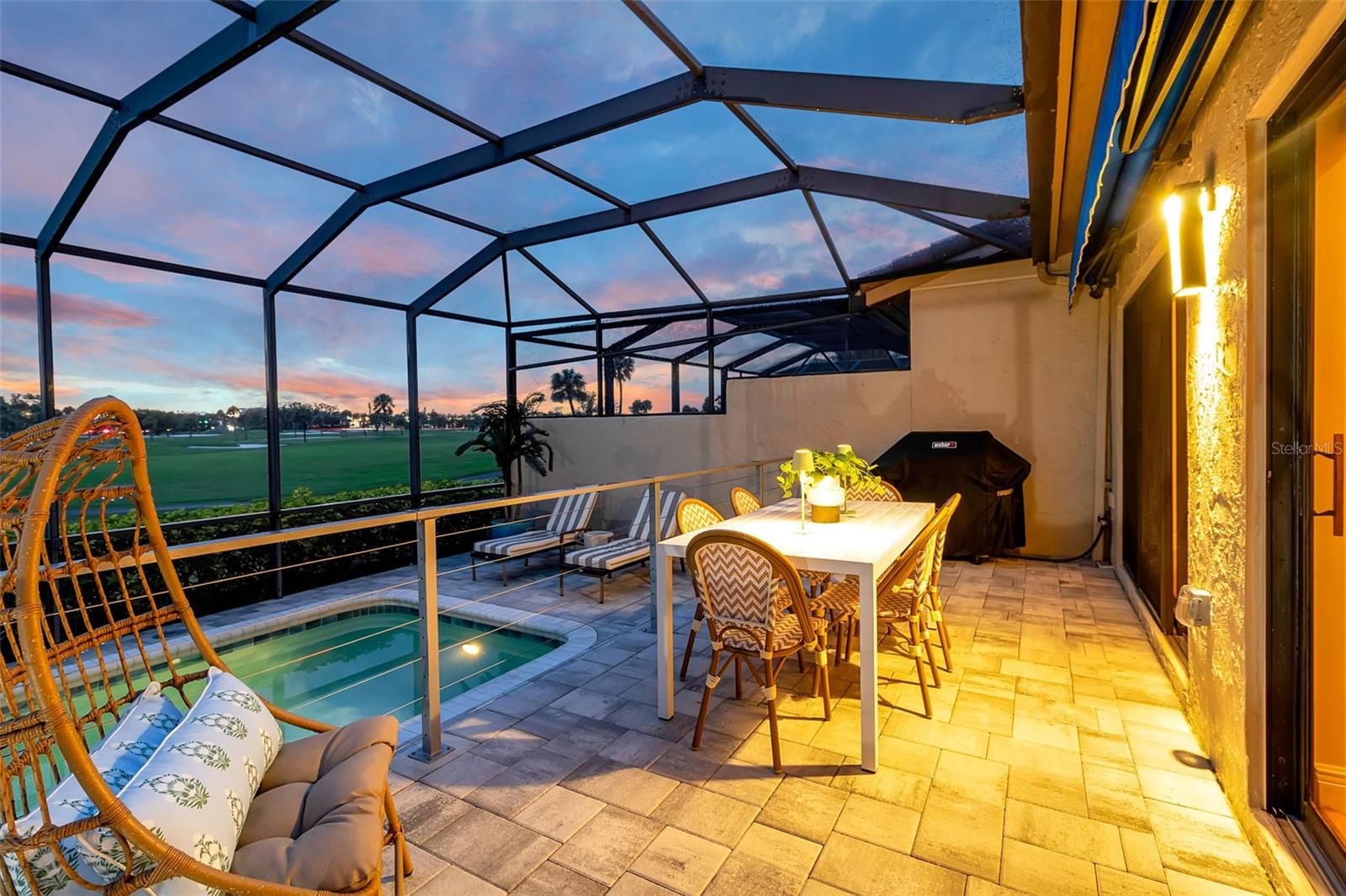 Welcome to your elevated and relaxed Longboat Key lifestyle--where everything has already been beautifully updated - all that's left to do is move in and enjoy. Tucked behind the gates of Bay Isles in the charming Harbour Oaks enclave, this bright and open end-unit villa offers gorgeous golf course views, peaceful water features and those unforgettable sunset skies that make every evening feel like a getaway.Inside, the home has a Serena & Lilly feel - its fresh, comfortable and thoughtfully designed. With 2,282 square feet, three en-suite bedrooms and a light-filled open layout - it's ideal for both relaxed everyday living and hosting friends and family. New luxury vinyl plank flooring runs throughout, while vaulted ceilings, skylights and a garden atrium brings in beautiful natural light. The kitchen has been fully updated with quartz countertops, a marble backsplash, stainless appliances and a casual breakfast bar--perfect for morning coffee before heading to the beach. There's also a separate dining space for more intimate dinners. Outdoor living is where this home really shines. Sliding doors open to a spacious, two-level screened lanai with a newly pavered deck, electric awning for shade and a newly resurfaced and retiled PebbleTec saltwater pool. It's your own private retreat--perfect for lounging, entertaining or simply soaking in the peaceful golf course views. The bathrooms have been beautifully reimagined with marble showers, Kohler fixtures and clean, modern finishes. Additional updates include a new roof (2025), newer AC and water heater (2021) and a two-car garage for convenience. Upgrades are plentiful - including Hunter Douglas window treatments and plantation shutters - which add a polished but easygoing feel. Living in Bay Isles means enjoying a true resort lifestyle, with access to a private beach club, marina and scenic walking paths--all in a gated, maintenance-free community. You're just minutes from the Longboat Key Club and Tennis Center, Publix, everyday conveniences - and a short drive to the shops and restaurants of St. Armands Circle and downtown Sarasota.