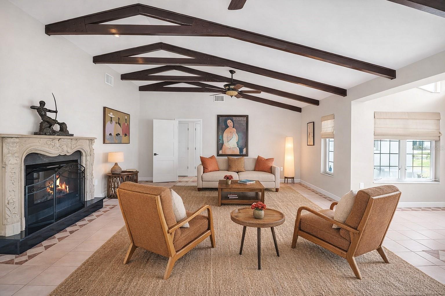 The Gardenia House | Golden BeachArchitecturally distinctive Golden Beach residence just steps from private deeded beach access. Inspired by Prairie-style design principles, this 4 bedroom home offers 3,364 sq ft of thoughtfully updated living space with a strong emphasis on horizontal lines, overhanging eaves, and natural light.Originally expanded with a three-story addition in 1999 and extensively renovated over time, the home reflects an effective build year of 2005, with updates to electrical, HVAC, plumbing, kitchen, and baths.Lush tropical landscaping surrounds the property, creating a private setting with multiple outdoor living areas, including a screened lanai with pool and a rooftop deck with Gulf views.Interior features include wide-plank hardwood floors, custom millwork, vaulted ceilings with stained beams, and a light-filled living room with fireplace and walls of glass. The expanded kitchen offers custom cabinetry, stone countertops, premium 2025 appliances, and views of the gardens and pool.Two primary suites provide private balconies, fireplaces, sitting areas, walk-in closets, and well-appointed baths. Additional highlights include impact-rated windows and doors, storm protection, a flexible bonus space (office/library), and two laundry rooms.Located on quiet Gardenia Drive, just blocks to downtown Venice dining, shopping, and cultural amenities. Deeded beach access includes a pavilion, golf cart parking, and a private stretch of Gulf shoreline.A rare offering combining architectural character, privacy, and proximity to the Gulf.
