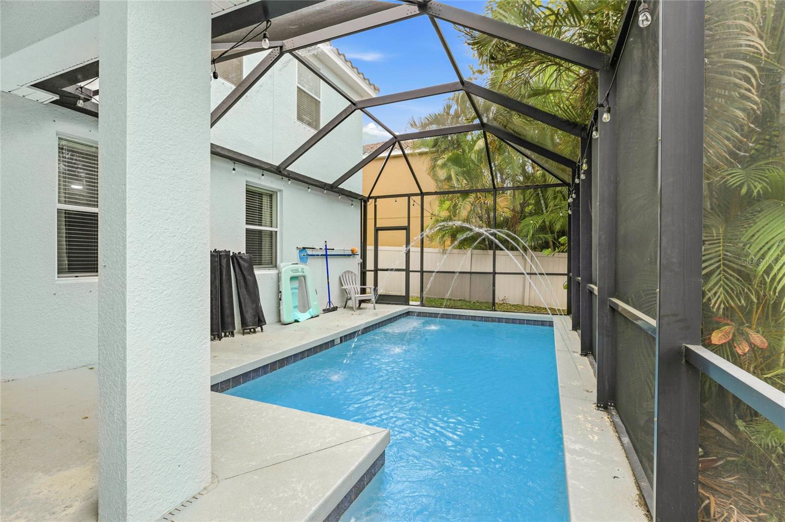 **THIS PROPERTY QUALIFIES FOR A 1% LENDER INCENTIVE IF USING PREFERRED LENDER. INQUIRE FOR MORE DETAILS.** Welcome to this beautifully maintained 4-bedroom, 2.5-bathroom pool home tucked away on a quiet cul-de-sac in the Oak Vistas community. Offering over 2,900 sq. ft. of living space, this two-story home features a functional layout designed for both everyday living and entertaining. Inside, the home opens to a welcoming dining area complete with a custom dry bar and wine cooler, creating a great space to host. The layout flows naturally into the kitchen and main living areas. The kitchen is equipped with 42-inch wood cabinetry, granite countertops, stainless steel appliances, and a large center island with ample prep and seating space. The main living area connects seamlessly to the outdoor space, enhancing the home's open feel. The primary suite is located on the main level and offers a spacious layout with a massive walk-in closet. The upgraded primary bathroom features dual sinks, modern finishes, and dual shower heads. Upstairs, you will find three additional bedrooms along with a large bonus loft space, ideal for a media room, home office, or flexible living area. Step outside to a private, screened-in pool area with a fenced backyard, perfect for relaxing or entertaining. The cul-de-sac setting adds to the home's quiet and private feel. Conveniently located near UTC, I-75, shopping, dining, and Gulf beaches, this home offers a prime location with low HOA fees and no CDD.