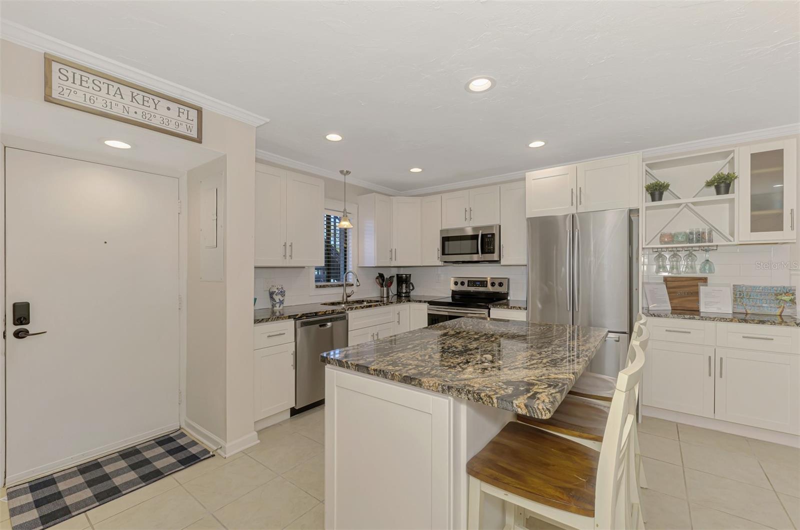 AMAZING OPPOTUNITY TO OWN THIS COMPLETED REMODELED 1 BEDROOM/1 BATH CONDO IN CASTEL DEL MARE WHICH HAS BEEN NICKNAMED THE "HIDDEN JEWEL ON THE BAY" BECAUSE OF ITS DESIRABLE LOCATION WHICH SERVES AS THE GATEWAY TO SIESTA KEY. LOCATED JUSTH SOUTH OF THE DRAWBRIDGE TO SIESTA KEY, YOU CAN WALK, BIKE OR DRIVE RIGHT OVER THE BRIGE AND BE AT THE AMAZING BEACHES, RESTAURANTS, AND SHOPPING VENUES. THIS STUNNING CONDO HAS BEEN COMPLETELY UPDATED. THE KITCHEN BOASTS AN OPEN-CONCEPT WITH GRANITE COUNTERTOPS, PENDANT AND OVER CABINET LIGHTING. A LARGE ISLAND OPENS INTO A SPACIOUS LIVING AREA WHICH FEATURES CROWN MOLDING AND WAINSCOTING. THE LANAI HAS BEEN FINISHED TO CREATE EXTRA LIVING SPACE WITH A HUGE WAL-IN CLOSET. THE MASTER BEDROOM HAS A BUILT-IN CLOSET AND A FULL WALK-IN CLOSET WITH BUILT-IN CABINET AND COUNTERTOP ALLOWING PLENTY OF EXTRA STORAGE. THE BATHROOM HAS BEEN COMPLETELY REMODELED WITH BEAUTIFUL TILED WALK-IN SHOWER. THE UNIT HAS A TANKLESS WATER HEATER (2023) AND A NEW AIR CONDITIONING SYSTEM (2021).THIS CONDO IS TURN-KEY FURNISHED SO IT A GREAT PLACE TO CALL IT A VACATION GET-A-WAY OR HOME! (LIVING ROOM FAN TO BE REPLACED)