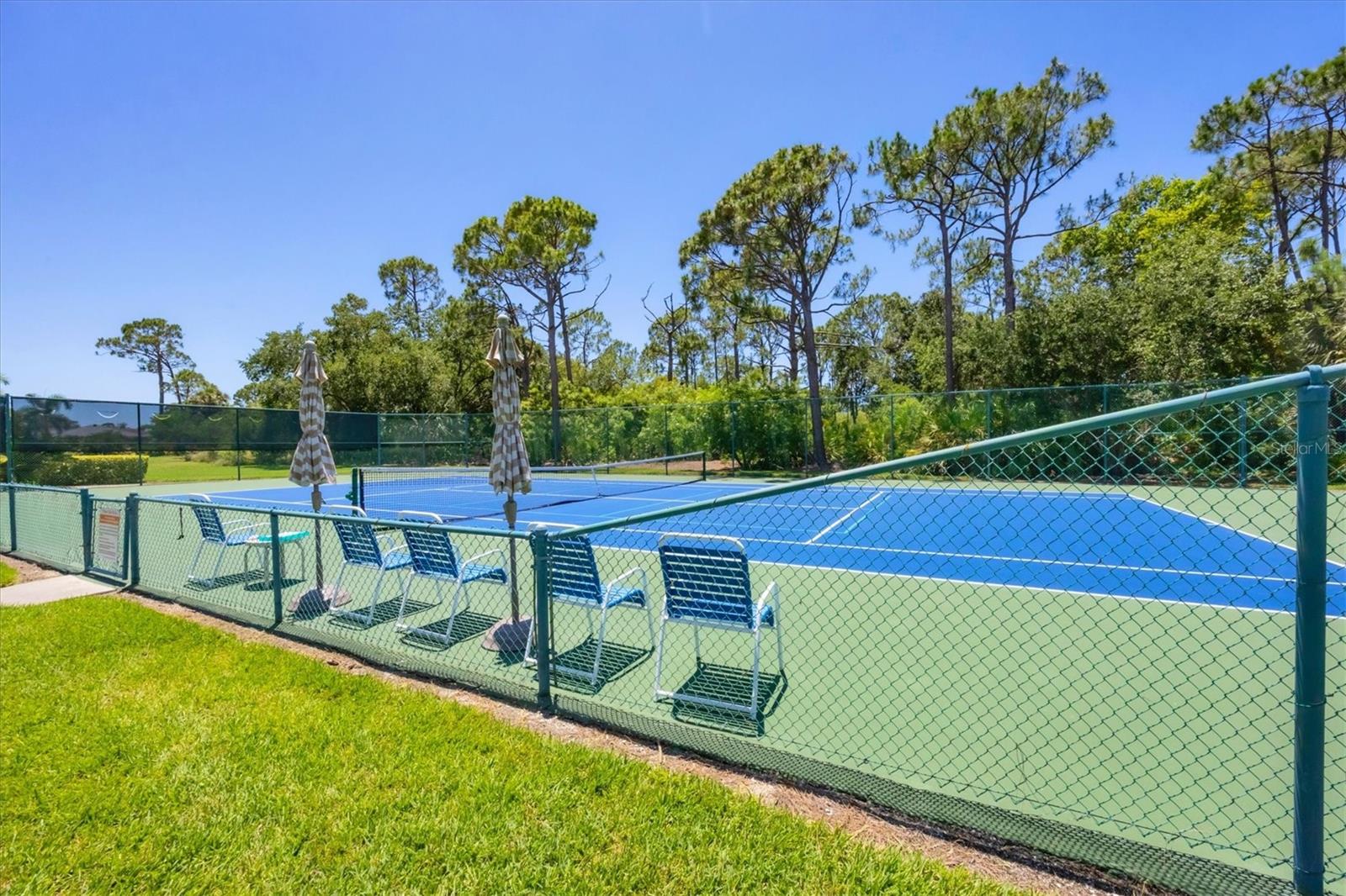 If you love breathtaking sunset views and an active lifestyle, including pickle ball, this beautifully updated condo is a must-see!Enjoy panoramic sunsets and serene golf course vistas from this light-filled 2-bedroom, 2-bath residence located in the highly desirable Terraces at Stoneybrook Golf & Country Club. With expansive views of the 9th tee box and fairway, a tranquil pond, swaying palm trees, and mature live oaks, this home offers the perfect blend of natural beauty and resort-style living.The thoughtfully updated kitchen and bathrooms feature sleek quartz countertops and stainless steel appliances. Neutral rectangular tile flooring runs throughout the main living areas, complemented by soft, neutral carpeting in the bedrooms. Fresh interior paint and modern finishes create a bright, move-in-ready space.The kitchen includes a charming dinette area and an open breakfast bar overlooking the dining room--ideal for casual meals or entertaining guests. The living and dining areas flow seamlessly to sliding glass doors that open to a screened and glass-enclosed lanai, providing the perfect setting for morning coffee or cocktails and evening sunsets with stunning golf course views.The spacious primary suite offers both a walk-in closet and a built-in closet, private lanai access via sliding glass doors, and beautiful golf course views, along with an en-suite bath. The split floor plan ensures privacy, with the guest bedroom located at the front of the unit, featuring a convenient Murphy bed and access to a nearby full bath.Residents of the Terraces enjoy a private pool as well as tennis and pickleball courts--perfect for staying active and social. But the lifestyle doesn't stop at The Terraces. Stoneybrook Golf & Country Club offers an unparalleled array of amenities. Tee off on the newly modernized golf course, hit the Har-Tru tennis courts, workout in the fitness center or take it easy with walking trails and bocce courts. Cool off in the pool, unwind in the spa, or indulge in a gourmet meal at the on-site restaurant, where you can dine indoors or al fresco while taking in stunning views.Located near the Legacy Trail and the pristine beaches of Nokomis and Siesta Key, as well as an array of shopping and dining options, Stoneybrook Golf & Country Club combines convenience with resort-style living. Don't just buy a condo--buy a lifestyle at Stoneybrook.