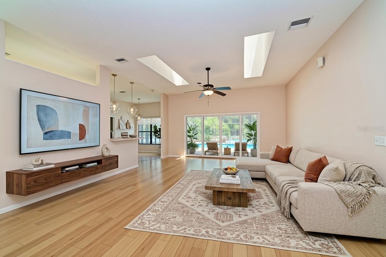 One or more photo(s) has been virtually staged. Palmetto pool home with impact sliders, hurricane shutters, preserve and water views, screened cage, refinished pool deck, and no rear neighbors--just minutes from Parrish. No flood insurance required (Zone X). This 3-bedroom, 2-bath home in Heather Glen offers an open floor plan with bright, connected living spaces designed for everyday comfort and easy entertaining. The outdoor setting stands out with a newly refinished pool deck overlooking preserve and water, creating a more private and peaceful backyard than many nearby homes. Inside, the layout flows naturally to the outdoor space, maximizing indoor-outdoor living. The large garage includes a dedicated workshop area, adding flexibility for storage, hobbies, or projects. Located in Flood Zone X (low-risk area). Low HOA fees help keep ownership more affordable. Ideally positioned near Parrish, one of Manatee County's fastest-growing areas, you're close to new restaurants, shopping, schools, and everyday conveniences while still enjoying a quieter residential setting.