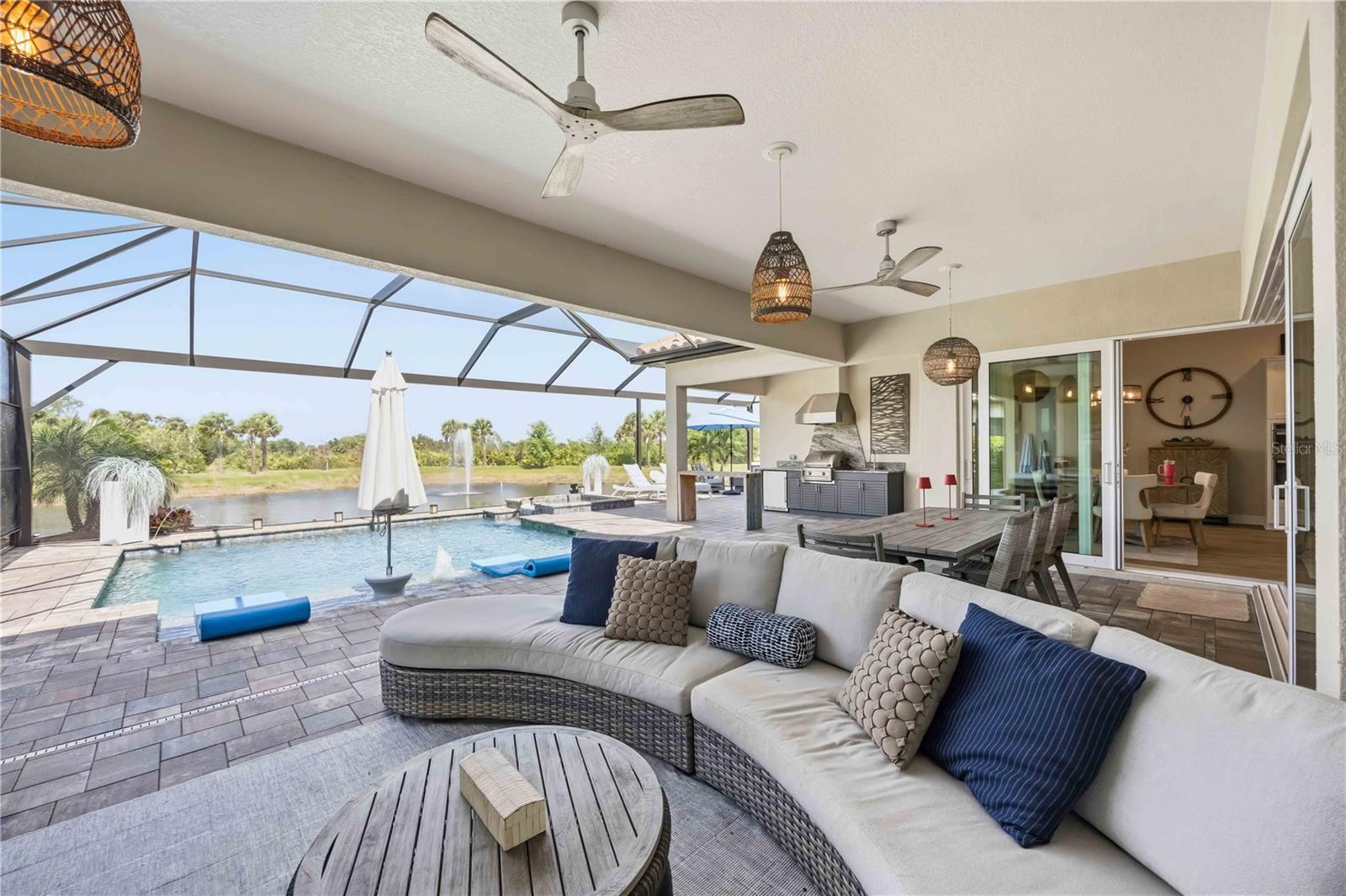 Exterior: Lighting, Outdoor Grill, Outdoor Kitchen, Sliding Doors