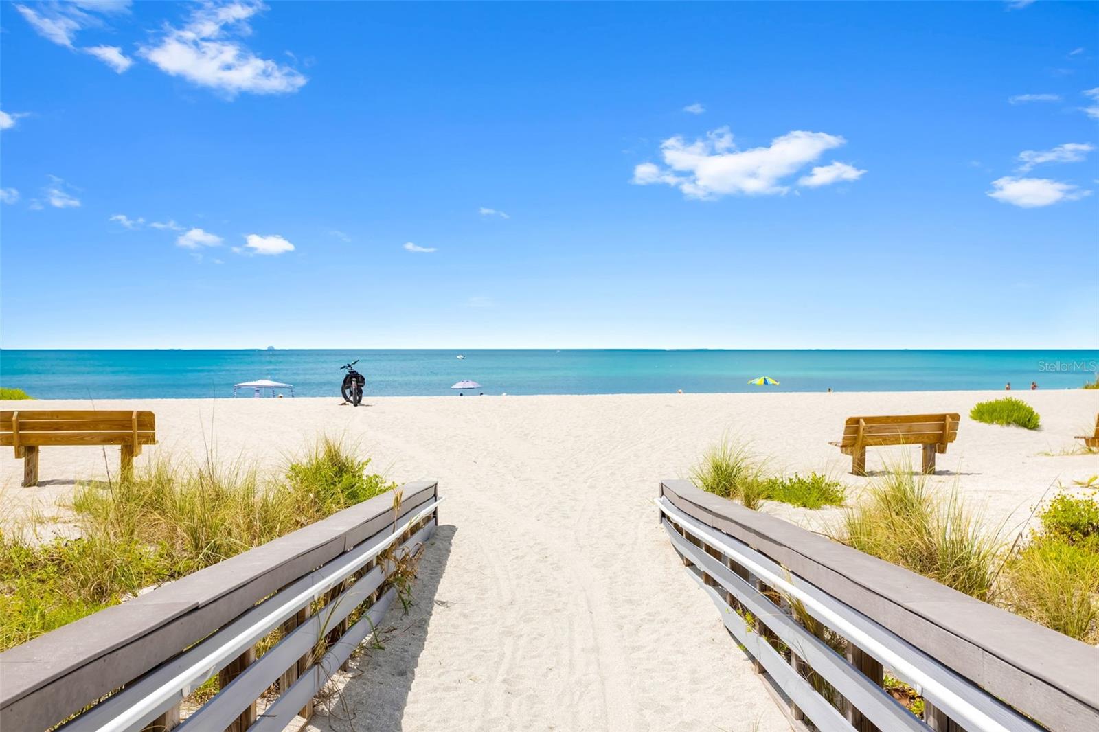Welcome to Gulf Point, a charming condo community just steps from Venice Beach, where coastal living meets everyday convenience and breathtaking sunsets are part of your daily routine. Perfectly positioned across from the beach yet not located in a flood zone, this move-in ready 2 bedroom, 2 bathroom third-floor corner unit offers the best of both worlds. With elevator access and Gulf views, this is your slice of Florida paradise.Completely renovated in 2024, no detail was overlooked. Stepping inside, you're welcomed by a light and bright open layout created by thoughtfully removing walls to enhance flow and functionality. The kitchen is sure to impress with all-new cabinetry, quartz countertops with barstool seating, stainless steel appliances, and a clean, modern design that ties it all together seamlessly.The split-bedroom floorplan offers both privacy and comfort. The owner's suite features a spacious walk-in closet and a beautifully updated ensuite bathroom tucked behind a stylish sliding barn door, complete with a glass-enclosed shower and modern vanity. The second bedroom is ideally located near the updated guest bathroom, making it perfect for visitors or flexible use.Impact windows provide peace of mind, while the private balcony creates the perfect indoor/outdoor living space to relax and enjoy the coastal breeze.Gulf Point residents enjoy a variety of amenities, including a heated pool, clubhouse with full kitchen, shuffleboard courts, BBQ area, assigned parking plus guest parking, and a newer roof completed in July 2023. Whether you're searching for a full-time residence, seasonal escape, or income-producing property, this condo checks all the boxes with a 2-month minimum rental policy.The monthly condo fee of $665 covers exterior maintenance, building insurance, water, sewer, trash, basic cable, and reserves, making for truly low-maintenance living.Located just moments from Historic Downtown Venice, you'll enjoy easy access to local restaurants, boutique shopping, art, theater, and live music at the gazebo. Nearby public tennis, pickleball, and basketball courts add even more to love about this vibrant coastal lifestyle.Whether you're walking to the beach, biking downtown, or simply unwinding poolside, this is Florida living at its finest. Schedule your showing today.