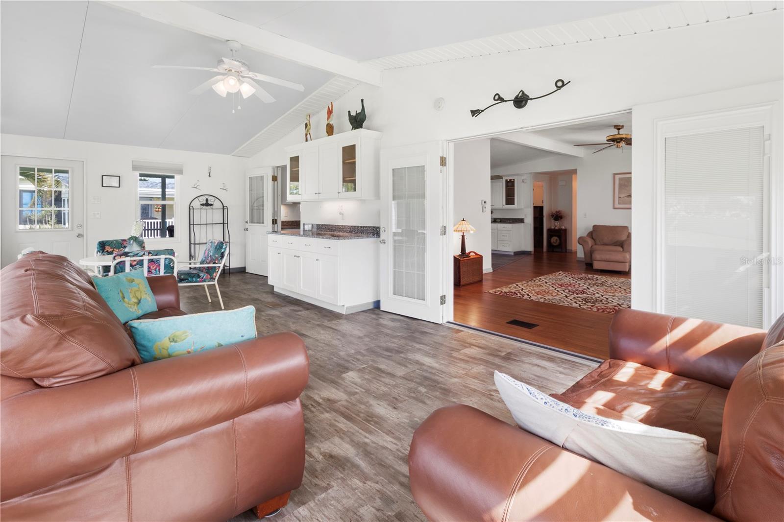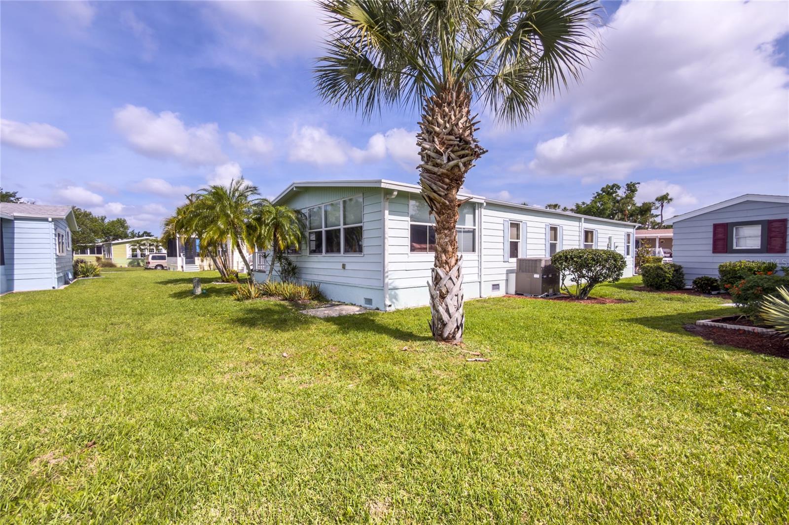 EXCEPTIONAL, LAND OWNED - Turn Key Furnished, beautifully remodeled, 2bd/2ba home located in the 55+ community of Ridgewood Meadows. This home is on a very large landscaped lot, on a quiet cul-de-sac, a widened driveway and a newly built garage in 2014. You will enjoy your morning coffee on the huge front porch, featuring Trex decking & deluxe railing that allows for multiple chairs and lounges for your family and friends. Under the home there are newly added tie down anchors in (2014), a ground vapor barrier (2017) and a new belly band vapor barrier was installed in 2023. A water heater was installed in 2015 with a new roof and AC unit in 2019. This home is a dream inside with a new kitchen featuring stainless appliances, new sink, garbage disposal, solid surface counter tops and plenty of kitchen cabinets. Gorgeous flooring throughout the home features bamboo, luxury vinyl and the bedrooms have new carpeting. The owners have remodeled the lanai to create year-round living space with new widows, AC/heat, drywall walls, luxury vinyl flooring, custom blinds and measures the full width of the home 26'x12'! Both bathrooms have been remodeled and feature new showers installed by Bath Fitter. This home also features a separate room for an office or craft room. This is a very rare home with too many features to list. Come and enjoy the Ridgewood community with gated 24-hour security, pool, clubhouse, tennis courts, pickleball courts, outdoor gym, great fishing and lots of activities. Golf cart and small pet friendly. Close to all shopping, Ellenton Outlet mall, restaurants, I-75 and the gulf beaches.