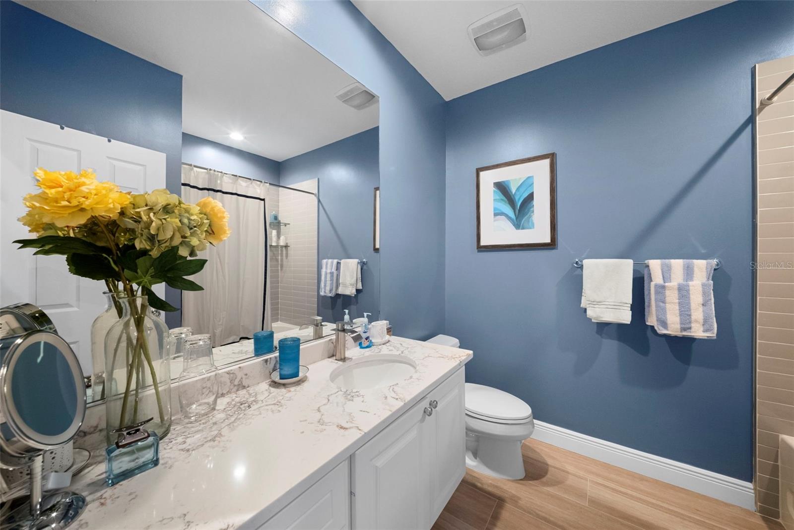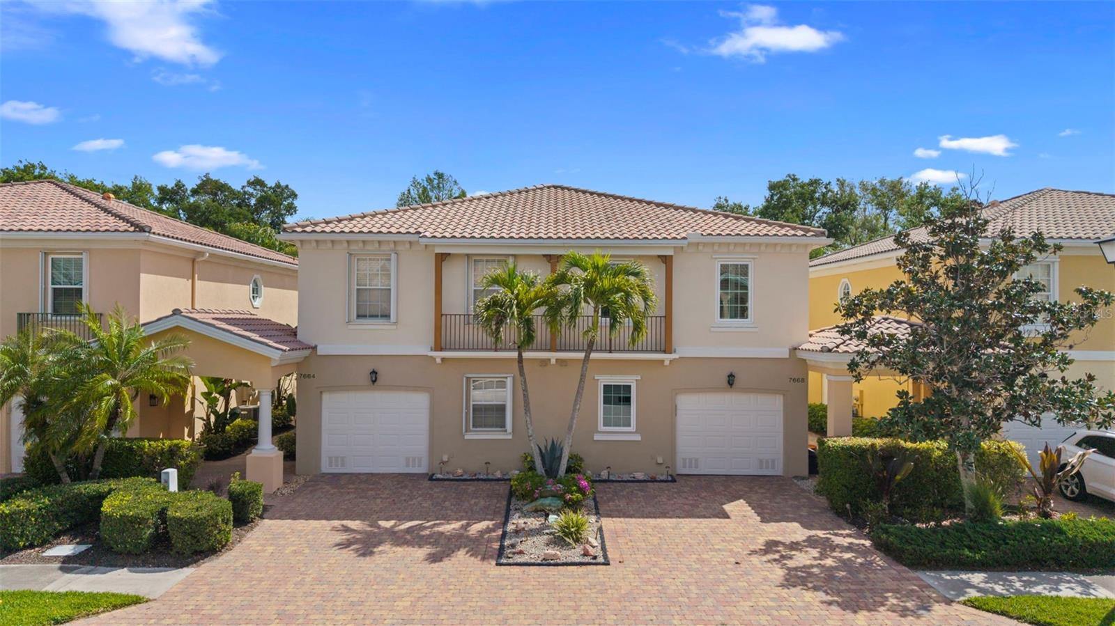 Beautifully updated 3-bedroom, 2.5-bath Catalina townhome in the highly desirable Villagewalk on Palmer Ranch, offering a dynamic, amenity-rich setting ideal for full-time living. The interior features a stylish kitchen with quartz countertops, stainless steel appliances, and a tile backsplash, along with updated bathrooms and two well-appointed guest bedrooms. Additional upgrades include IMPACT windows, accordion shutters on the great room sliders, a/c 2018, plantation shutters in bedrooms and remote-controlled blinds in the great room. Enjoy the serene views from the spacious screened lanai, surrounded by refreshed landscaping that enhances privacy and outdoor living. Residents enjoy an exceptional lineup of amenities including a restaurant and tiki bar, resort and lap pools (both geothermal heated), pickleball courts, and six lighted Har-Tru tennis courts. The community also features a fitness center, clubhouse, event space, boutique, hair salon, and on-site gas station. An HOA manager and activities coordinator provide a full calendar of events, creating an engaging and social atmosphere year-round. Miles of walking trails, scenic bridges, and lakes weave throughout the lushly landscaped grounds. A 24-hour manned gate adds security, while HOA fees include irrigation and landscaping for low-maintenance living. Conveniently located near Siesta Key Beach, the Legacy Trail, shopping, dining, medical facilities, and the arts. A perfect opportunity to enjoy an active, connected lifestyle in one of Sarasota's most sought-after communities.