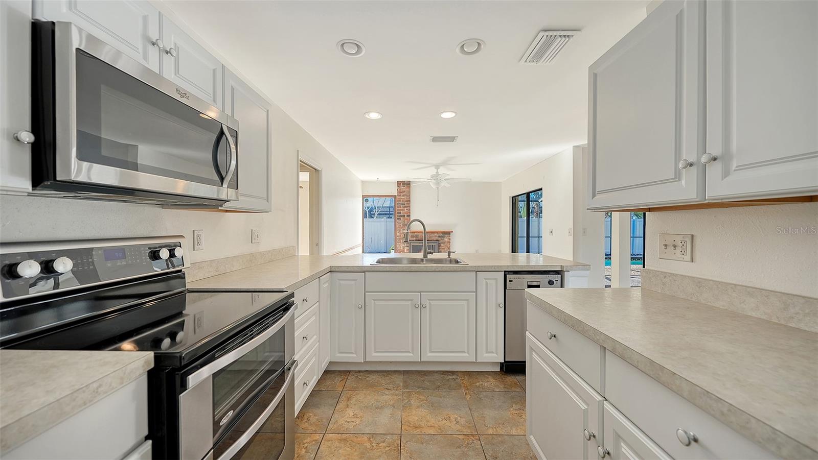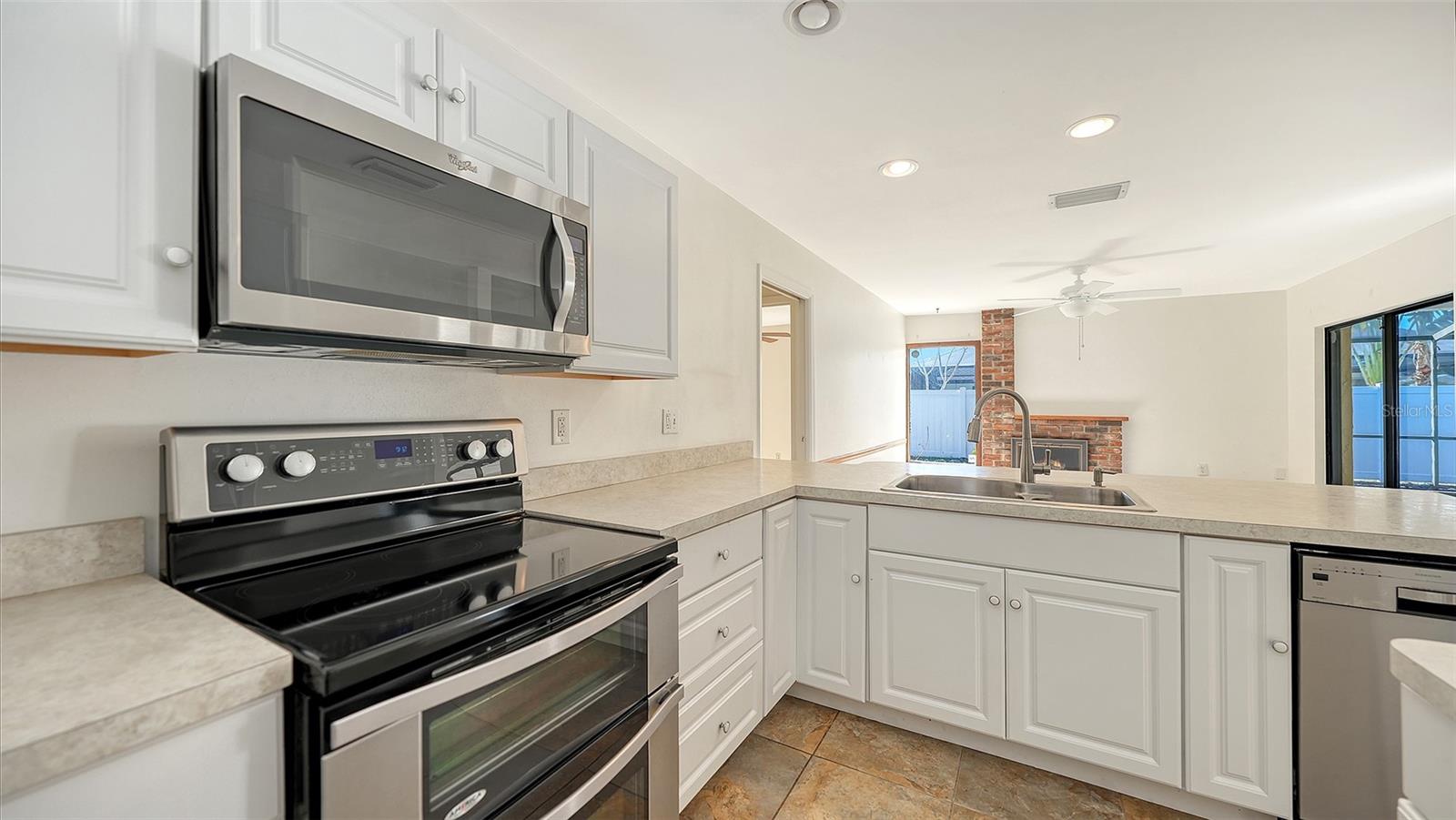 Welcome to this pool home in Tamaron! This lovingly maintained 4-bedroom, 2.5-bath home offers a flexible split plan, ideal for a growing household, guests or work-from-home living. The kitchen and family room serve as the heart of the home, featuring a wood-burning fireplace, breakfast bar, newer kitchen appliances, and convenient interior laundry with newer front-loading washer and dryer. Step outside to a freeform pool with a covered lanai and generous overhang, perfect for entertaining, all within a fenced yard with room for pets or gardening, while a private front courtyard offers a quiet spot for morning coffee. Thoughtful updates include a full interior re-pipe (2014), A/C replacement (2014), and a roof installed in July 2010 with a secondary water barrier and 30-year dimensional shingles with enhanced fastening, along with a resurfaced pool and newer pump. An oversized garage accommodates larger vehicles, and the location is hard to beat--approximately 5 minutes to Publix and shopping, 10 minutes to I-75, 15-20 minutes to downtown Sarasota, and 20-25 minutes to Siesta Key and area beaches--making this a well-cared-for home ready for its next owner's personal touches.
