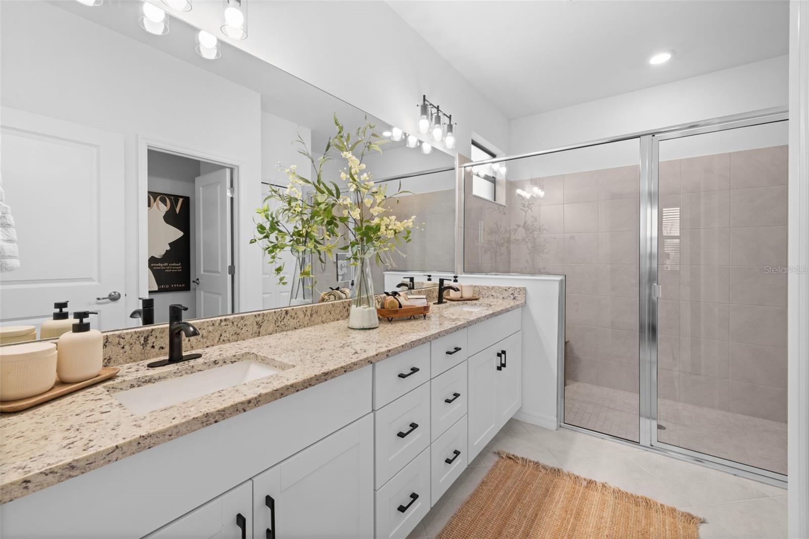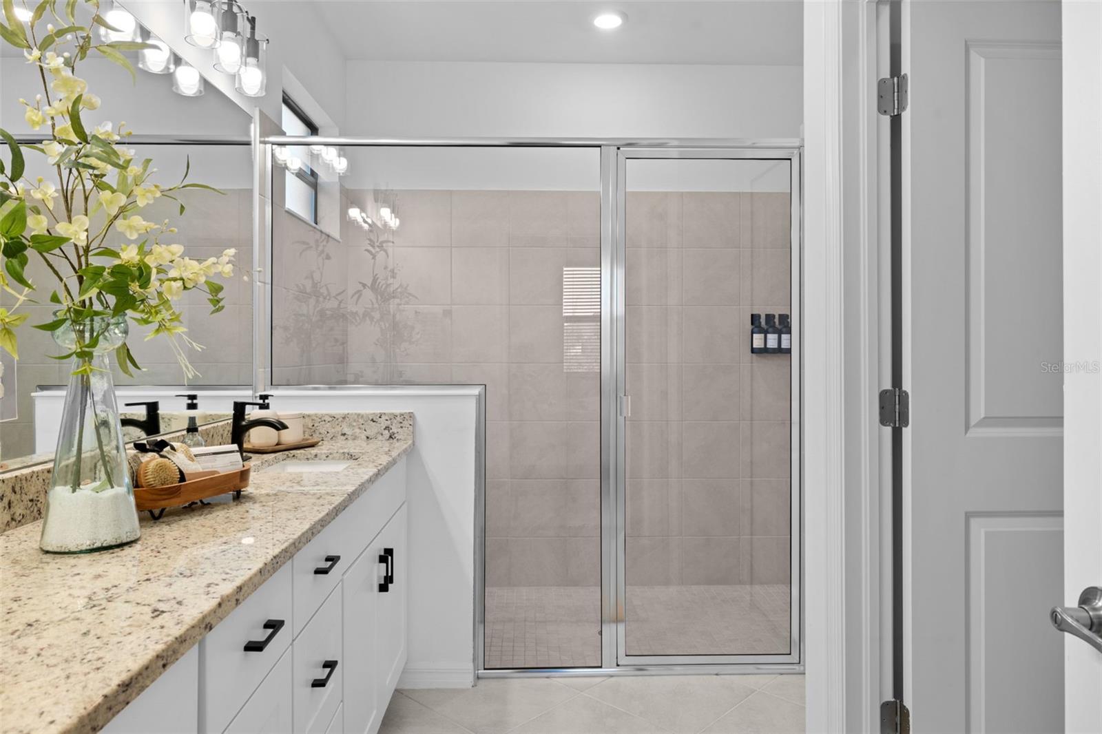 Welcome to a home that blends style, space, and smart upgrades--this 3-bedroom, 3-bathroom residence with 1,862 heated sq ft is nestled in a peaceful, well-maintained community with a private backyard retreat. Step into a thoughtfully designed interior featuring tile flooring throughout, complemented by custom lighting that adds a modern touch to every room. Discover a kitchen that stands out with quartz/granite countertops, upgraded faucets and hardware, a sleek kitchen sink, and a brand-new refrigerator and disposal (2025). The home offers glass shower doors, including in the spacious primary suite, and a triple glass slider that opens to the lanai, creating a seamless indoor-outdoor living experience. Additional features include hurricane shutters, a WiFi-enabled smart garage door, and blinds throughout for added convenience. Enjoy low-maintenance living with an HOA that covers irrigation management, landscaping, lawn trimming, and treatments. Private, polished, and thoughtfully upgraded, this home delivers comfort, style, and everyday ease. Don't miss your chance--schedule a showing today and make this dream home yours!