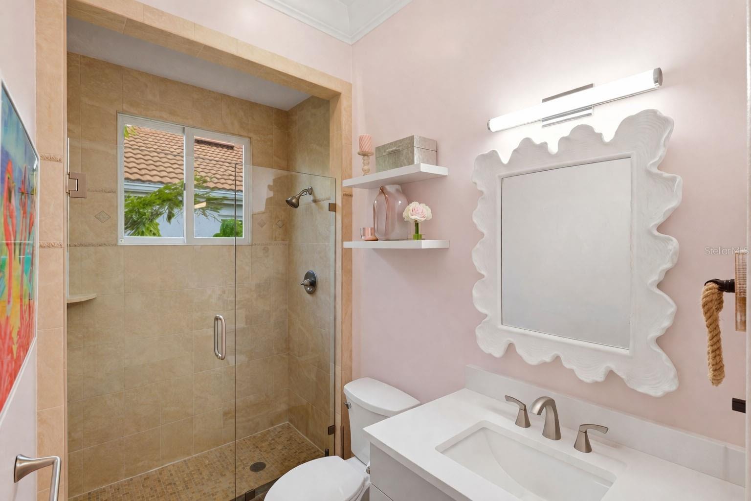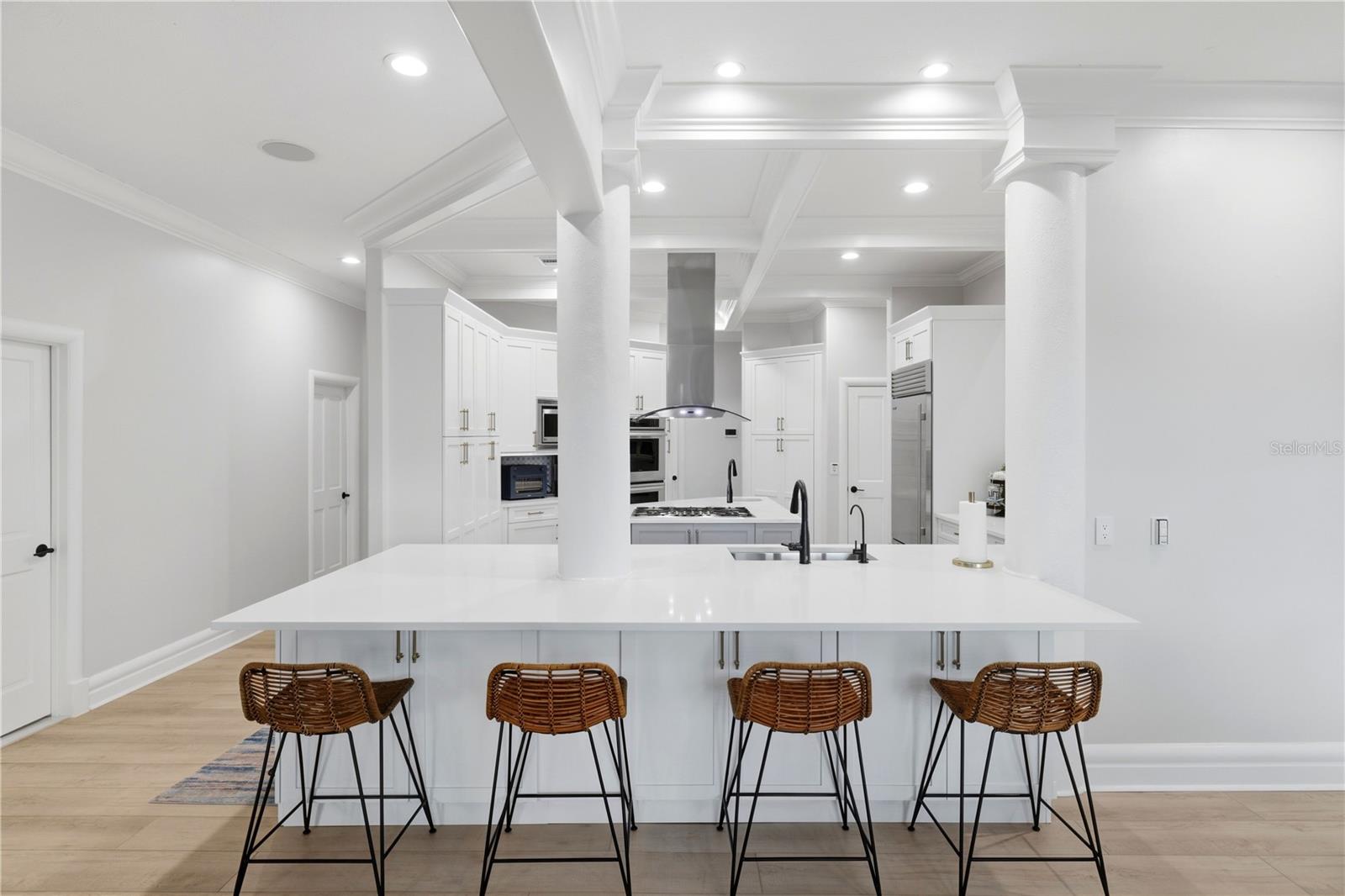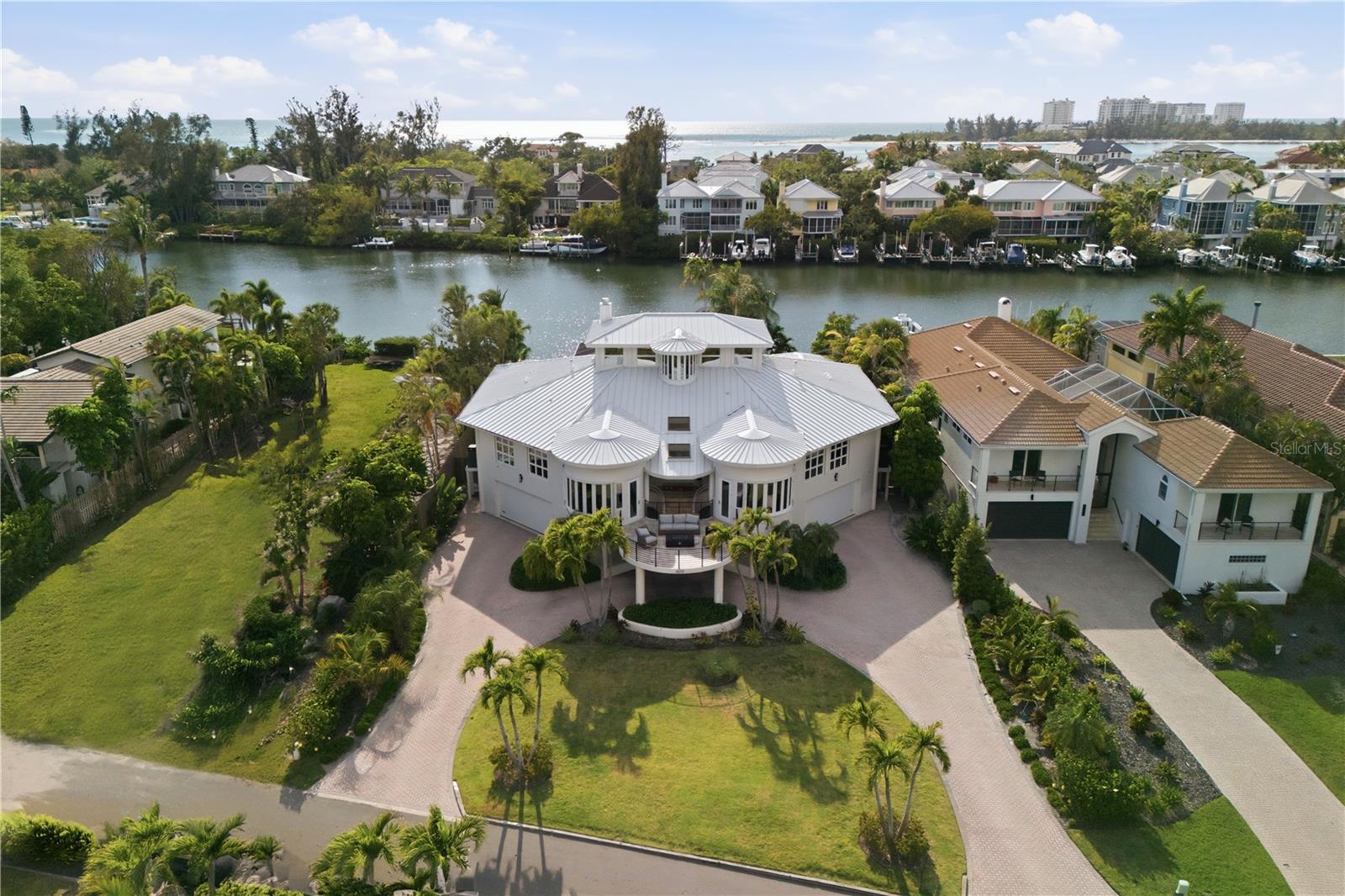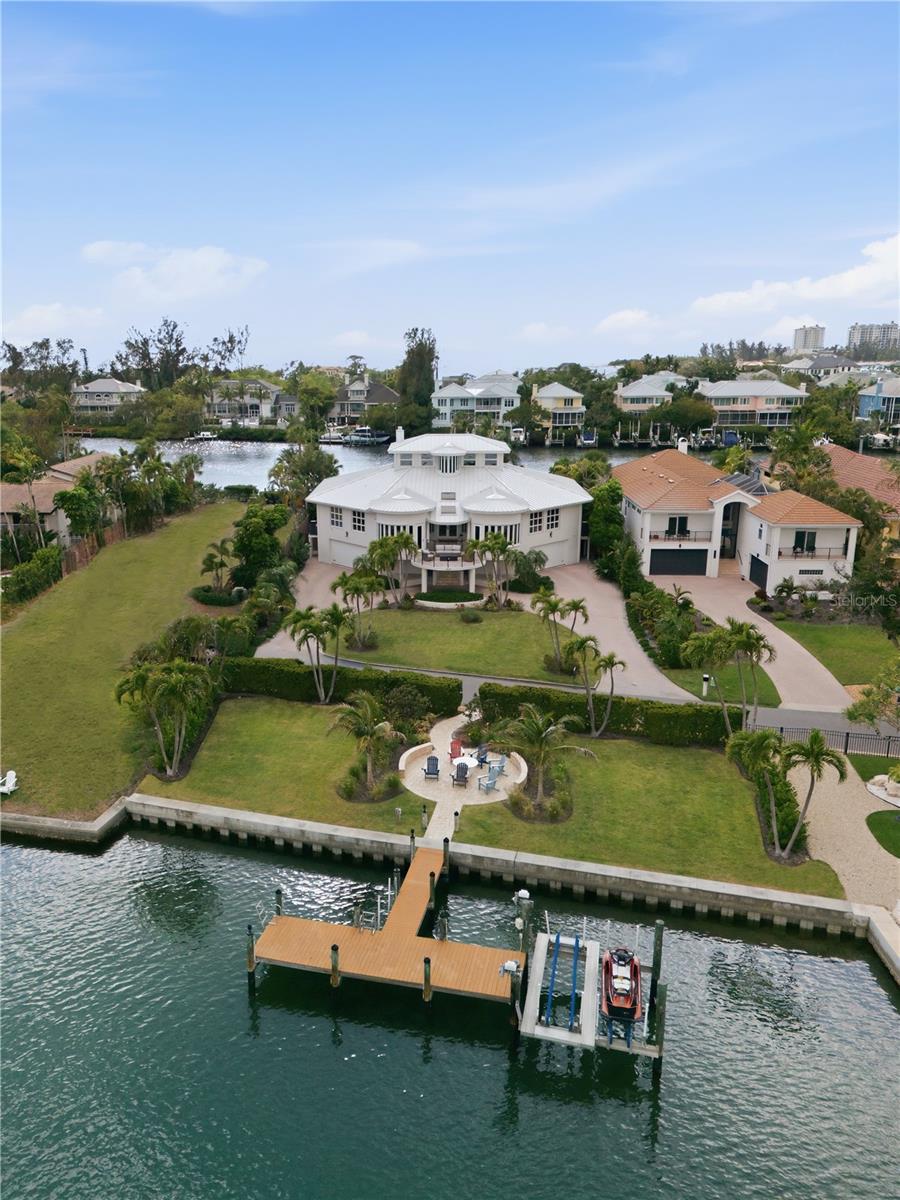 A rare offering on the exclusive enclave of Roberts Point Road, this fully remodeled in 2023 waterfront estate embodies refined coastal luxury, encompassing 5,458 square feet with five bedrooms, four full bathrooms, and one half bath. Showcasing water frontage on both the front and rear with direct, no-bridge access to Sarasota Bay, the home is set on a private 0.64-acre homesite. The property features a brand-new seawall and two exclusive dock settings, including a 16,000 lb boat lift and jet ski lift, along with a private waterfront seating area designed for effortless enjoyment of the serene surroundings. Underground utilities preserve uninterrupted water views, while soaring ceilings and a signature eagle's nest vantage point elevate the home's architectural presence and capture breathtaking vistas.Inside, the residence has been masterfully transformed with a refined open-concept design, anchored by a fully redesigned chef's kitchen featuring Sub-Zero refrigeration, a gas range, new appliances and countertops, and exceptional craftsmanship throughout. Custom millwork, designer lighting, shiplap detailing, and elegant new railings define the home's modern coastal aesthetic. The thoughtfully designed floor plan offers three distinct kitchen spaces--including a main kitchen, outdoor kitchen, and private guest suite kitchen--along with a private-entry guest residence and a versatile ground-floor loft with dual Murphy beds, providing exceptional flexibility for both everyday living and elevated entertaining. A private elevator services the home, while a new glass front entry door--currently being installed--further enhances its modern coastal presentation.Curated for both comfort and performance, the home is equipped with three new AC systems, a new well, enhanced irrigation and landscaping, a whole-home Generac generator, reverse osmosis and Kinetico water systems, and full smart home integration through Control4 automation, Sonos audio, and a high-end AV infrastructure. Outdoors, a resort-style pool and spa with both gas and electric heating and full app-based control ensure year-round enjoyment. Additional features include a six-car garage with epoxy floors, a bespoke outdoor bar and kitchen, screened enclosure, kayak storage, and a private sand area--culminating in a truly turnkey, design-forward waterfront estate in one of Sarasota's most coveted locations.