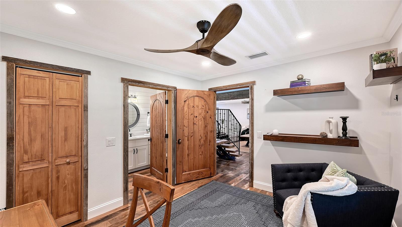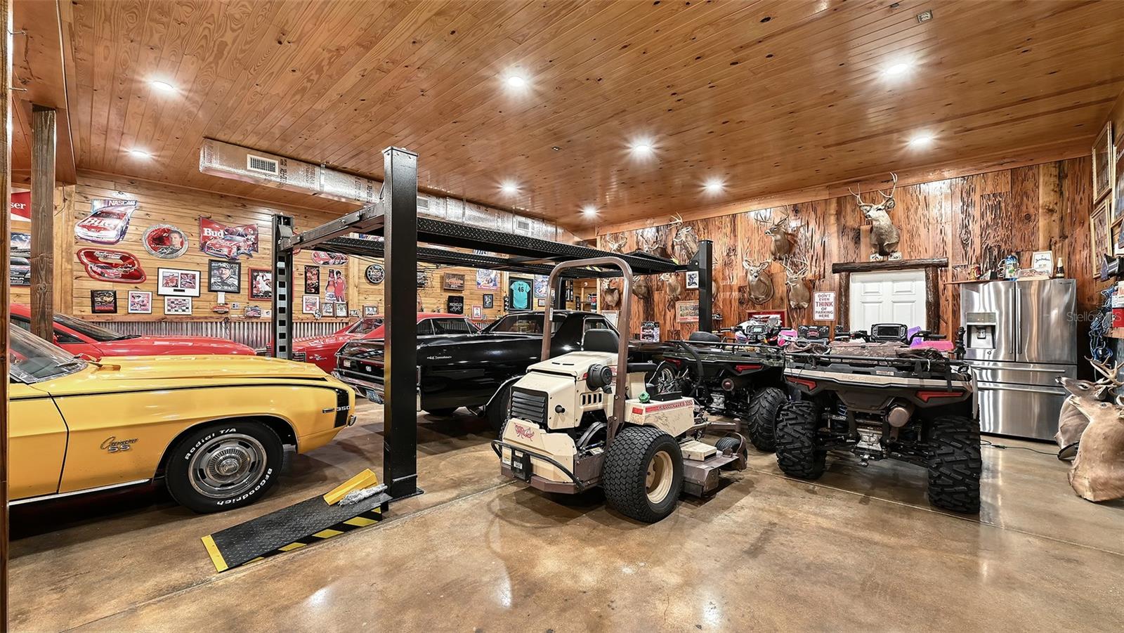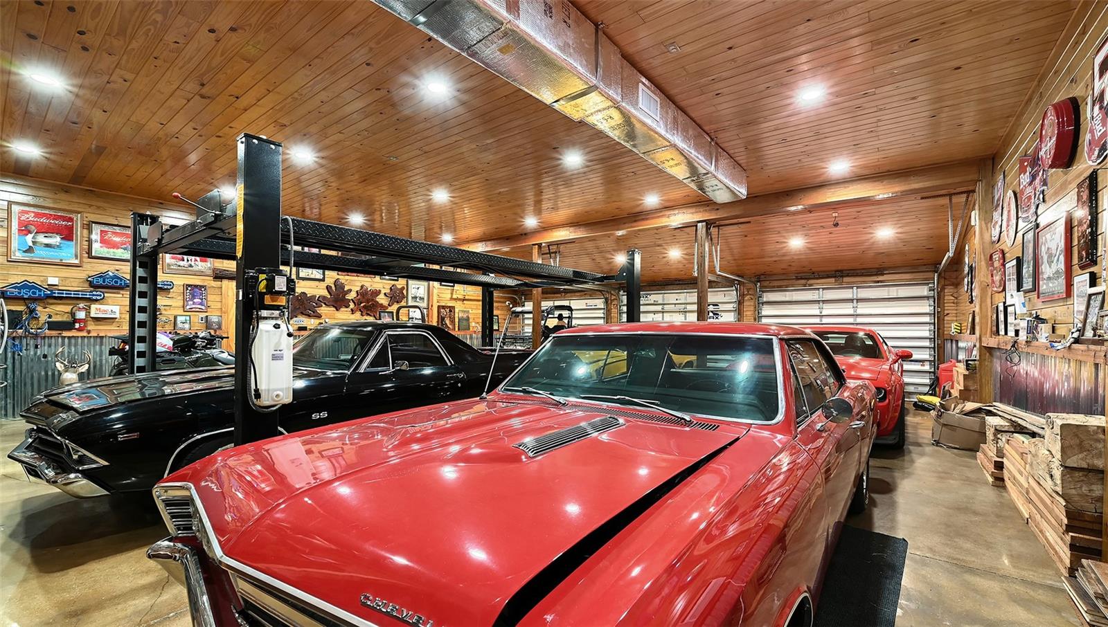Nestled at the very end of a private road on 10 +/- acres in Panther Ridge, this stunning gated estate offers rare seclusion and luxury on a beautifully wooded lot with a serene lake and fountain centerpiece. Completely reconstructed inside and out with virtually brand-new everything, metal roofs on both the main residence and the 12+ Car Collector's garage, Hardy Board siding, hurricane-rated doors and windows, all-new electrical (whole-house rewired), an impressive AC system with new duct work and 2 high-capacity units,and all-new plumbing. The entire property is fully fenced and cross-fenced, showcasing mature oak and pine trees. A custom wrought-iron staircase and stunning reclaimed oak and mahogany flooring pair beautifully with barn wood trim and accents throughout. Shiplap walls, knotty-pine accents, and plantation shutters complete the home's signature look of quiet luxury. The gourmet kitchen features stainless steel appliances, a 6-burner Wolf gas range, quartz countertops and exceptional storage. Quartz counters continue in all bathrooms. Downstairs offers 2 spacious bedrooms including one huge 20 x 20 room that easily functions as a second primary, plus a Jack & Jill bath. Upstairs you'll find the primary suite with a private screened L-shaped composite balcony, luxurious spa bath, and 21 x 14 walk-in closet, plus 2 additional guest bedrooms and guest bath. Outside, an expansive screened wrap-around porch on the first floor connects seamlessly to a resort-style heated saltwater 36 x 18 lap pool and 10-person spa, covered summer kitchen, and dramatic 2-story outdoor fireplace -- the ultimate year-round entertaining space. Additional features include a laundry/mud room, upgraded Safetouch security system with dedicated cameras and internet, and in the downstairs primary a sound system with KEF speakers. Not to be missed-the oversized concrete block 3-car garage (35 x 29) with RV hookup and future safe-room potential. Also on the property is a custom 15x20 combination of an a/c doghouse with runs and a brand-new, never-used state-of-the-art chicken coop. The true showpiece is the 4,464 sq ft. air-conditioned Car Collector's Dream Garage (72 x 62) with 12-ft vaulted knotty-pine ceilings, rare sinker cypress feature wall, blue-vein knotty pine faux porch, gunmetal accents, custom stained concrete floors, car lift, 3 garage and 4 roll up doors, and RV hookup. Imagine stepping into the Car Collector's Dream Garage and feeling like you've entered a private automotive resort. Climate-controlled year-round, the 4,464 sq ft space features soaring knotty-pine ceilings that make every vehicle look like a museum piece, a dramatic rare sinker cypress feature wall, a blue-vein knotty pine faux porch perfect for relaxing with fellow enthusiasts, sleek gunmetal accents, and showroom-perfect custom stained concrete floors that are easy to clean yet incredibly durable. A professional car lift, 7 doors for effortless loading of trucks, boats or trailers, abundant LED lighting, a dedicated tool room with extra studs for customization, a large storage area, and an outside RV hookup completes this dream setup. Whether you're restoring classics, detailing exotics, hosting car meets, or simply enjoying your collection in perfect comfort, this garage is built for serious enthusiasts who demand the very best. This is a true one-of-a-kind estate built for the discerning buyer who wants privacy, quality, and the ultimate car-collectors garage.