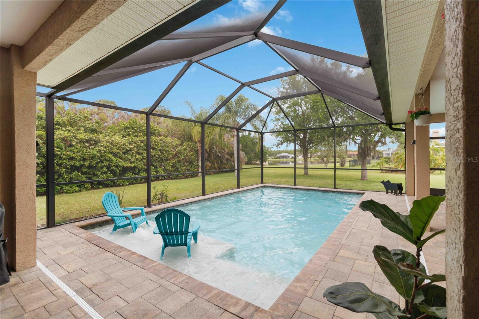 Welcome to Twin Rivers, where oversized homesites, custom homes, and a true sense of space make this community stand out from the rest. Situated on a 3/4-acre corner lot with pond views and mature landscaping, this beautifully maintained 3-bedroom, 3-bath home with a versatile bonus room offers style, comfort, and value in one of Parrish's most sought-after neighborhoods.The outdoor living is a true showstopper, featuring a heated pool with sun shelf and water features, beautiful pavers, and multiple covered seating areas designed for year-round enjoyment. Inside, you'll find a spacious layout with modern bedrooms, a formal dining room, an entertainer's kitchen open to the family room, and a flexible bonus room perfect for an office, gym, playroom, or guest space.This custom-built home is full of thoughtful design, including a luxurious primary suite with a drive-through shower, Hollywood soaking tub, and a massive custom closet. The oversized garage offers room for more than two cars plus extra storage. Major updates include a new roof in 2025 and HVAC in 2020.Twin Rivers is loved for its large lots, Manatee River access, and lively community feel with year-round events and multiple food trucks each week. This is a rare opportunity to own a home with character, space, and resort-style outdoor living at an unbeatable price.