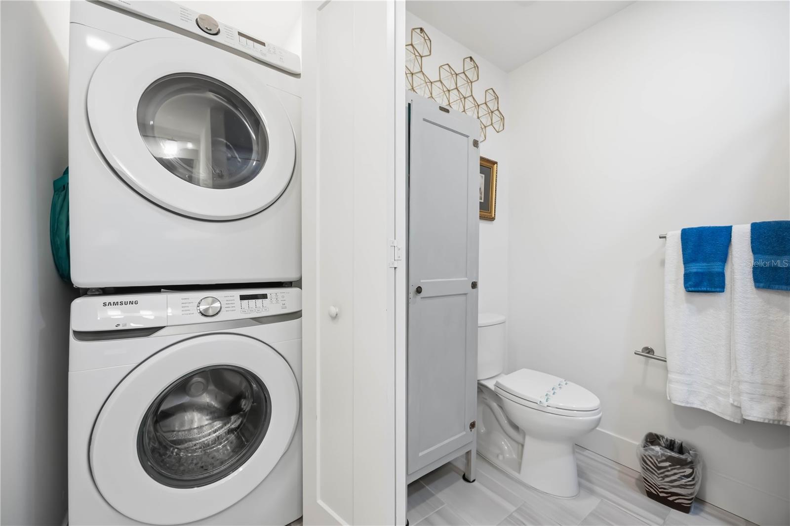 Location, location, location! The Strand of Sarasota on Whitaker Bayou. Built in 2022, 2 five story condo building, gated community, offering luxury waterfront living. Close to downtown, restaurants, theatres, shopping, beaches and much more. Amenities include heated pool, clubhouse, hot tub, fitness center, fire pit, dog park, and a kayak/paddleboard launch to access the bayou. Boat slips can be purchased when available.This 1 bedroom, 1.5 bath unit is on the 4th floor, bright, airy, partially furnished, over-sized lanai overlooking the pool and clubhouse. This unit is deed with an under-building parking space #125, a sail carport #250 in front of the building and a storage locker. Unit features luxury vinyl flooring, quartz counter tops in kitchen and baths, high gloss cabinetry in kitchen and bathrooms. Stainless steel Samsung appliances including stackable washer/dryer. Modern fixtures. Master bedroom is furnished with a king-sized bed, end tables and chest of drawers & plantation shutters on window. Wall mounted TVs convey. Unit is on the 4th floor. Generous rental policy, 1 week minimum, 52 times per year, making it a great investment property. Built in 2022 with latest hurricane codes. 11 units per floor, total 44 units. Bldg. 1709 has 108 units. Low maintenance fees. This unit does not have a dock slip. Come experience the best of city living