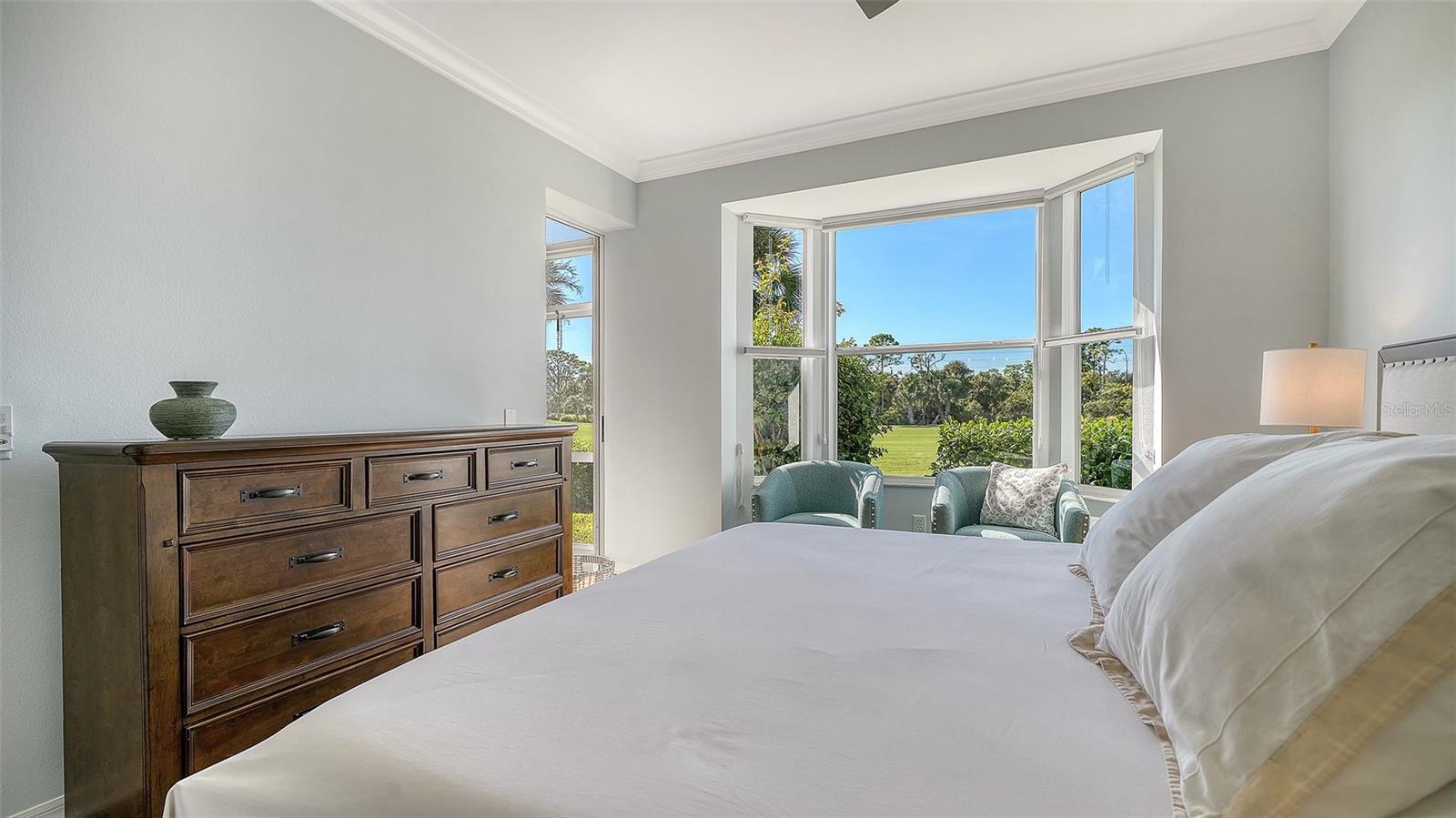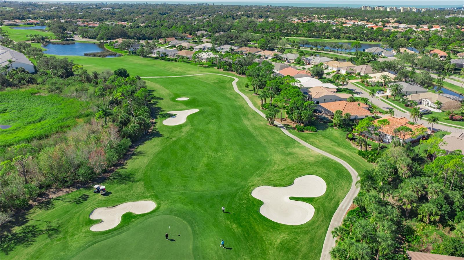 Discover this beautifully updated, fully turnkey furnished Villa at the sought-after Stoneybrook Golf & Country Club -- a perfect low-maintenance second or primary home in sunny Florida. Thoughtfully refreshed with a calm coastal palette of Benjamin Moore paints, this ground-floor Barrington Villa feels bright, serene, and move-in ready. All popcorn ceilings have been professionally removed. Quality furnishings and fixtures from Restoration Hardware, Hay, Design Within Reach, Steelcase, Baldwin, Kohler, and custom pieces create a refined yet comfortable atmosphere. The spacious glass-enclosed rear lanai offers peaceful views directly over the 4th fairway, from traps to green. With no buildings across from you, you'll enjoy endless open vistas and spectacular Florida sunsets right from your own private space. Inside, the updated kitchen features quartz countertops, stainless steel Whirlpool appliances, new solid cabinet doors, and thoughtful pantry storage. A sunny breakfast nook adds to the welcoming feel. Karastan wide-plank laminate flooring flows through the living areas, complemented by durable tile in the entry, kitchen, baths, and laundry. Crown molding and chair rails throughout give the home an elegant, finished look. Both bedrooms have been carefully upgraded: the primary bath includes a twin-sink vanity with new fixtures and filtered water, while the guest bedroom and bath offer a quiet, private retreat. Hunter Douglas blinds dress the windows, and every closet features custom California Closet-style built-ins and shelving for maximum organization. Additional highlights include a one-car garage and easy access to the community pool with its screened gathering area. As a member-owned club, Stoneybrook provides owners with an updated clubhouse and restaurant, Har-Tru tennis courts, a well-equipped fitness center, and an additional club pool and spa -- all just a short drive from the sugar-white sands of Siesta Key. Conveniently nestled between vibrant Downtown Sarasota and charming Downtown Venice, and bordering the Legacy Trail, this location offers the ideal mix of relaxation and accessibility. In 2024, the golf course underwent a complete redesign, with all associated fees already paid in full by the seller. This meticulously maintained and thoughtfully updated villa is ideal for those seeking a worry-free Florida getaway. Opportunities like this don't last long.