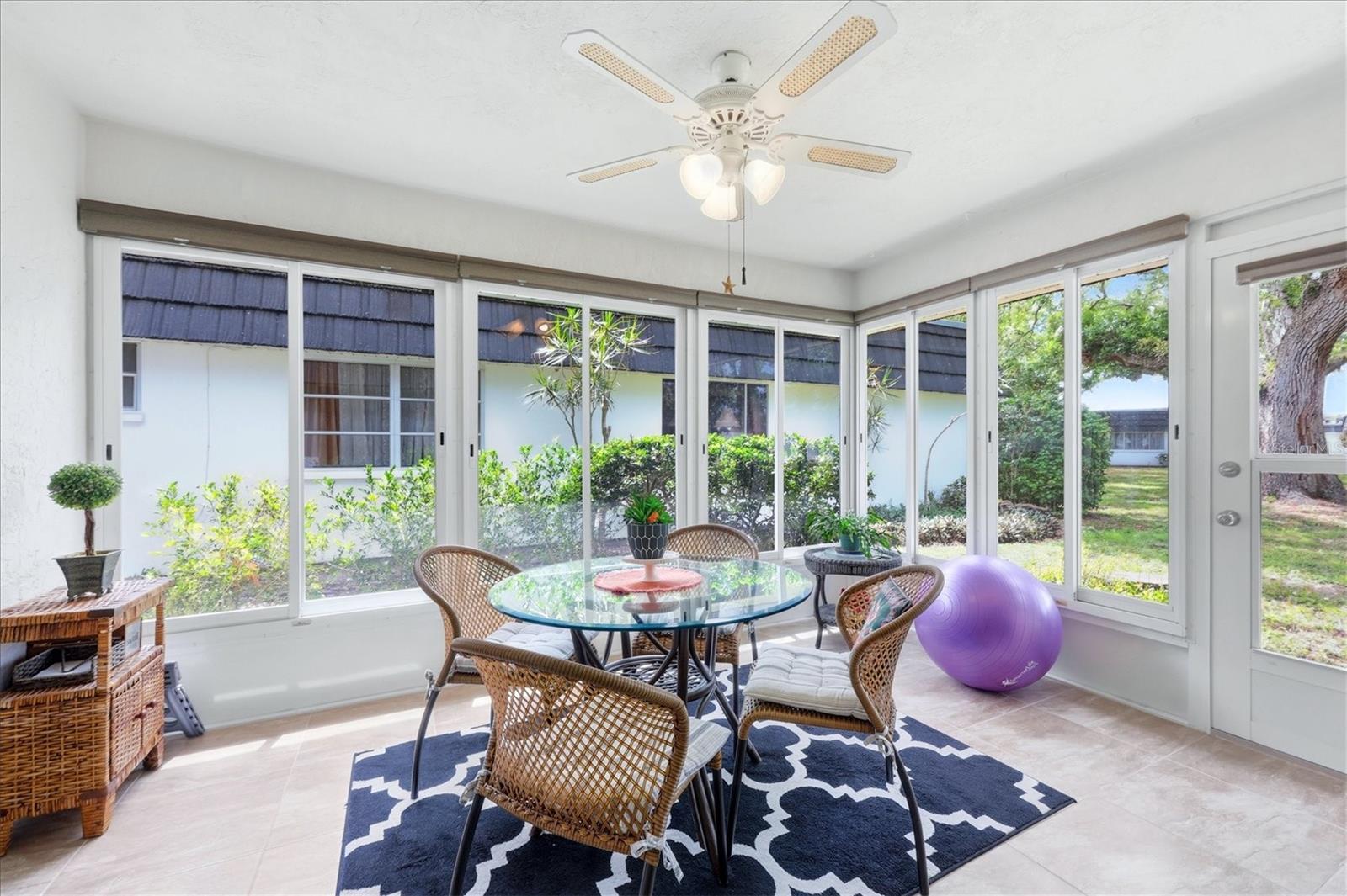 55+ GLEN OAKS RIDGE Active Community Close to Downtown Sarasota, Lido Beach/St. Armand's, UTC, I-75 and SRQ Airport! BEAUTIFULLY UPDATED AND END UNIT SINGLE STORY VILLA WITH PRIVATE DRIVEWAY AND CARPORT. Fall in love with the EASY LIFE in this 2 bedroom, 2 bath villa with updated kitchen, flooring, IMPACT hurricane rated replacement windows, updates to the bathrooms, large updated laundry room with wash tub and newer hot water tank. New Mission style impact front door, newly screened front porch, paver courtyard. Enjoy your park-like canopy tree vistas in the back yard. The Condo fee includes Water, Sewer, Trash, Cable TV, Building insurance, Building Maintenance, Ground Maintenance, Roof repair/replacement, Exterior painting/power washing, Rec Center, Pool/pool maintenance, on site management, etc. There are NO units above you, NO units below you and you are in an end unit for more privacy! This is a pet friendly community allowing up to two pets! Welcome to paradise where BOBBY JONES golf course is walking distance away! Room for up to 3 cars in your driveway AND Lots of guest parking only a few feet away! $192,500