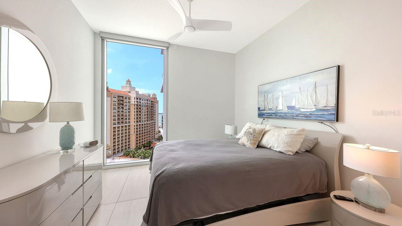This remarkable residence is among the most compelling opportunities in downtown Sarasota's luxury condo market. Positioned on a prized corner, the home is filled with natural light and features a desirable west-facing exposure--delivering tranquil bay views by day, vibrant Gulf sunsets in the evening, and a glittering city skyline at night.Located on the 12th floor, the property offers a true "sky residence" feel that is rarely found at this value. One premium parking space further enhances its appeal-- in the downtown core.Before this opportunity is claimed, I invite you to experience the lifestyle firsthand--either in person or through a live video tour.A Sought after Blend of Design, Comfort & Coastal LivingStep into elevated waterfront living in this beautifully upgraded 2-bedroom + 1 den / bedroom, 3-bath residence, ideally situated in Sarasota's vibrant Quay district. Encompassing 2,185 square feet, the open-concept design is highlighted by soaring 10-foot ceilings and expansive floor-to-ceiling glass that flood the interior with light while framing sweeping views of Sarasota Bay and the Gulf.Every element has been carefully curated for immediate enjoyment:Elegant porcelain tile flooring throughoutDesigner Italkraft kitchen featuring upgraded cabinetry, pull-out storage, pantry enhancements, JennAir appliances (including convection and built-in oven, and cooktop), and Grohe fixturesGenerous primary suite with dual walk-in closets and a spa-like bath complete with soaking tub, oversized shower, dual vanities, and linen storagePrivate guest suite with ensuite bath, plus a third full bathroomFlexible den with closet--ideal for a home office or additional bedroomHunter Douglas motorized window treatments along with custom lighting throughoutLightly used a few weeks here and there in like new condidtion.This is refined, low-maintenance luxury in a walkable waterfront setting--just steps from exceptional dining, shopping, cultural venues, and the marina.Opportunities offering this level of space, quality upgrades, panoramic views, and a premier Quay location are increasingly limited.