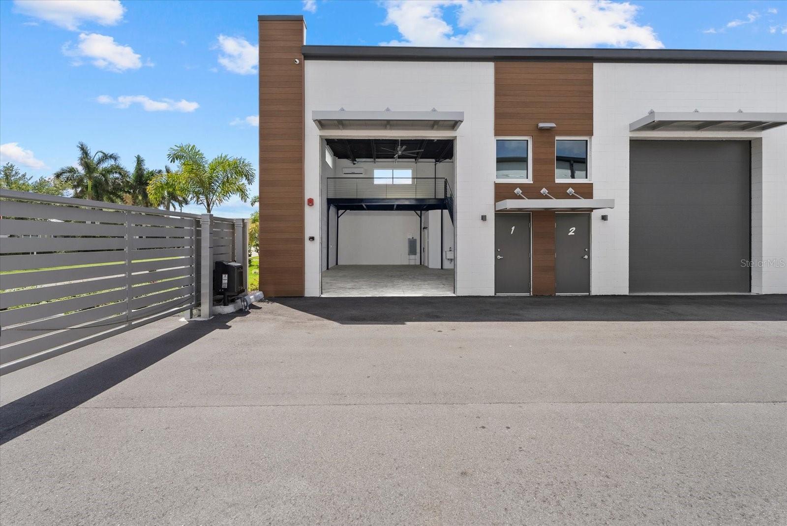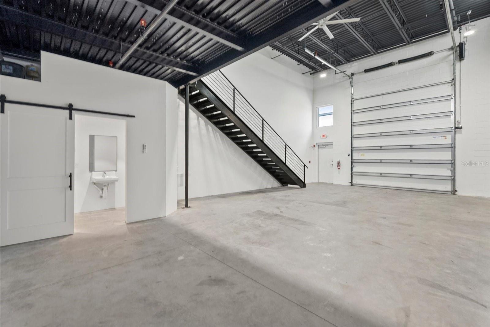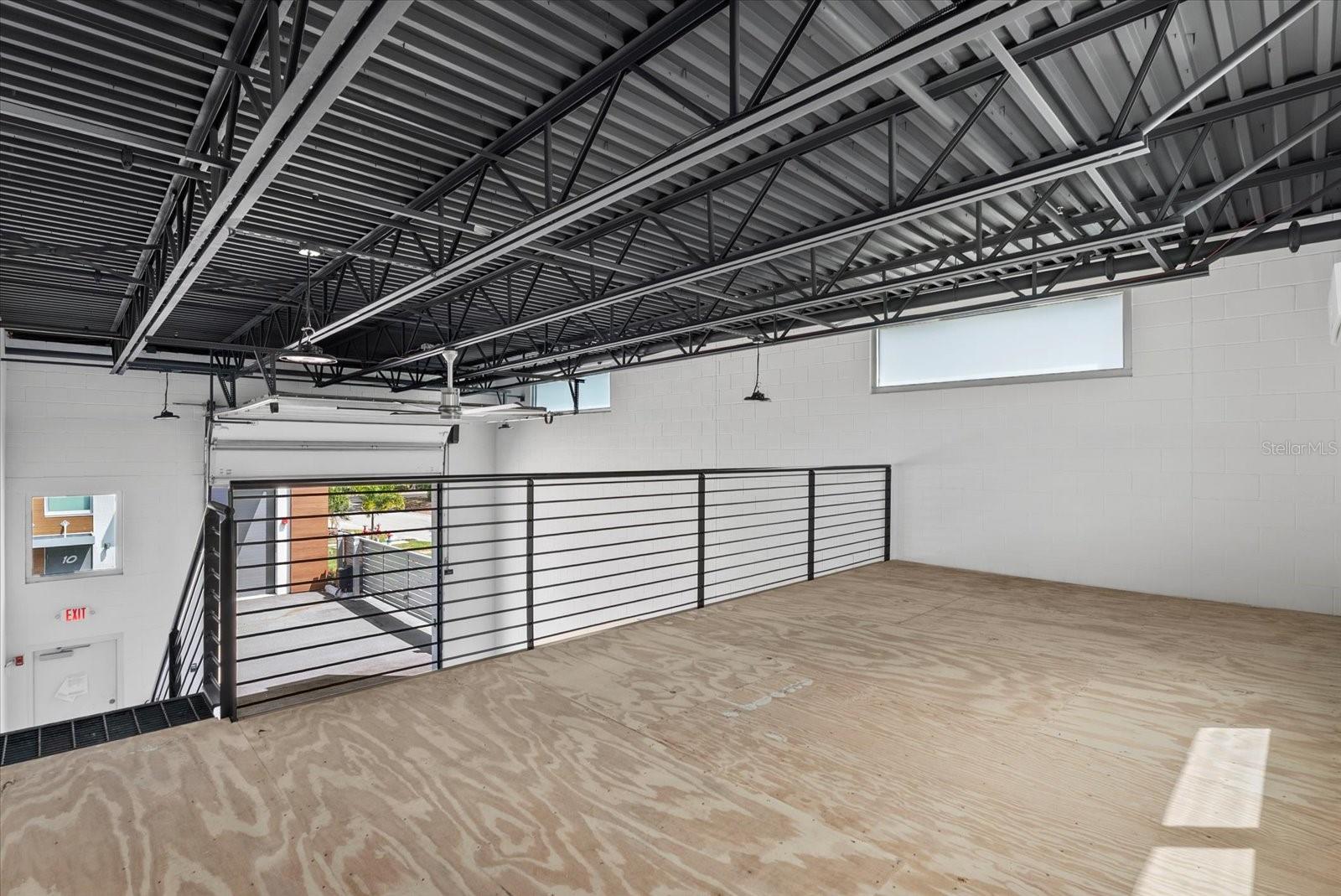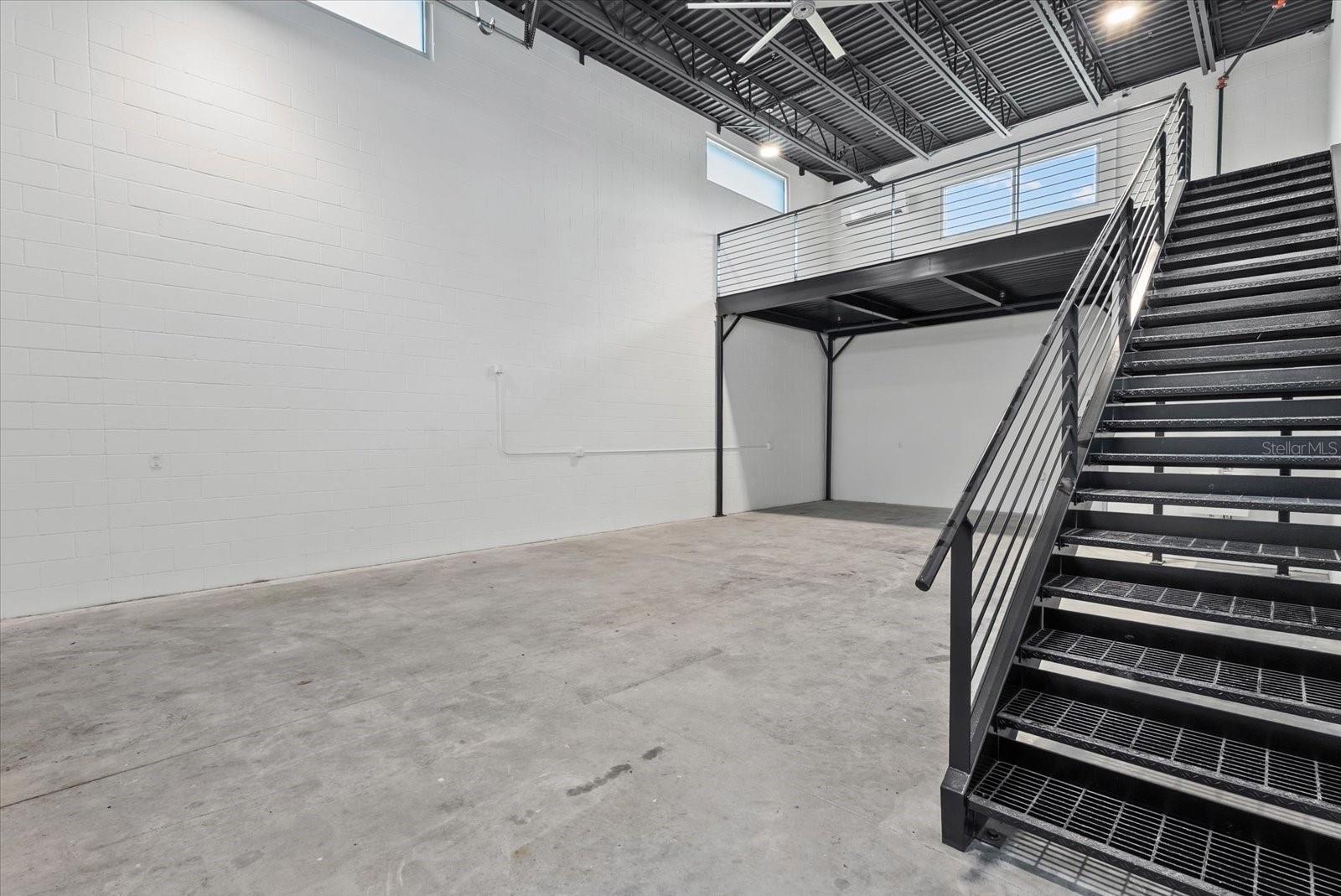 Price Reduced! An exceptional opportunity to own a garage condominium at Car Bank SRQ in Palmer Ranch, created for discerning car collectors, boating enthusiasts, RV owners, and those seeking a private, highly versatile space in a premier Sarasota location. Just moments from Legacy Trail, this unit offers the convenience of keeping bikes stored and ready for an effortless ride whenever the mood strikes. Inside, approximately 1,300 sq ft unfolds beneath soaring 20-foot ceilings, creating an impressive open space with endless potential--including the ability to easily accommodate a car lift. An impressive wide staircase leads to the mezzanine level, currently an open area ready to be transformed into a refined lounge, office, or additional storage. A half bath is positioned beneath the stairs and can easily be converted to a full bath with the existing shower rough-in, and a utility sink adds everyday convenience. The oversized 14'H x 12'W garage door allows for easy access. Owners also enjoy access to an on-site detail bay, a valuable private amenity for keeping vehicles clean and showroom-ready. Climate-controlled and located within an exclusive gated community of just 18 units, this is a rare chance to create a customized retreat designed to showcase your lifestyle, your passions, and your collection.